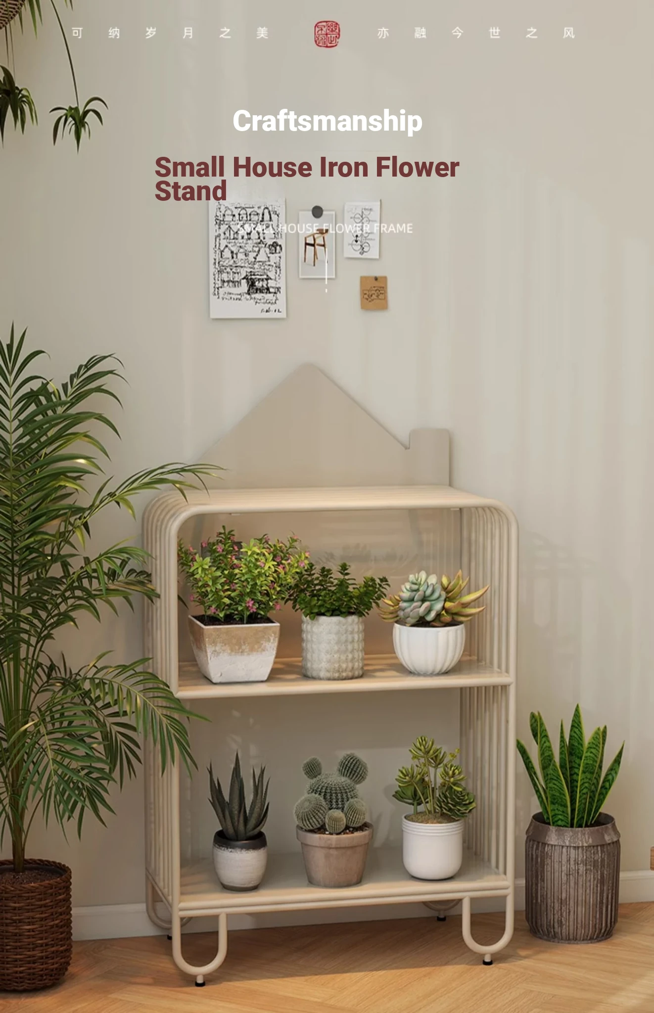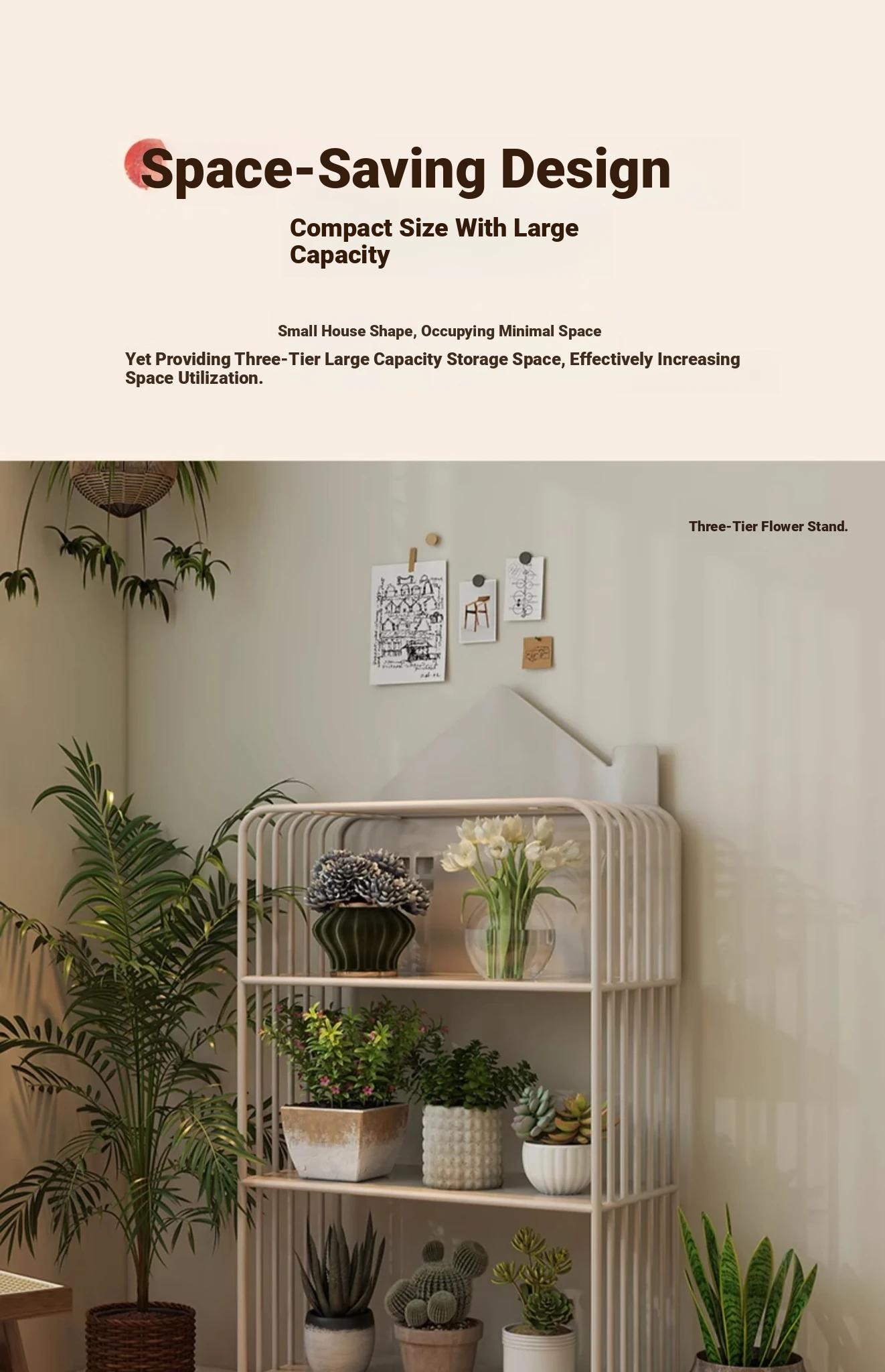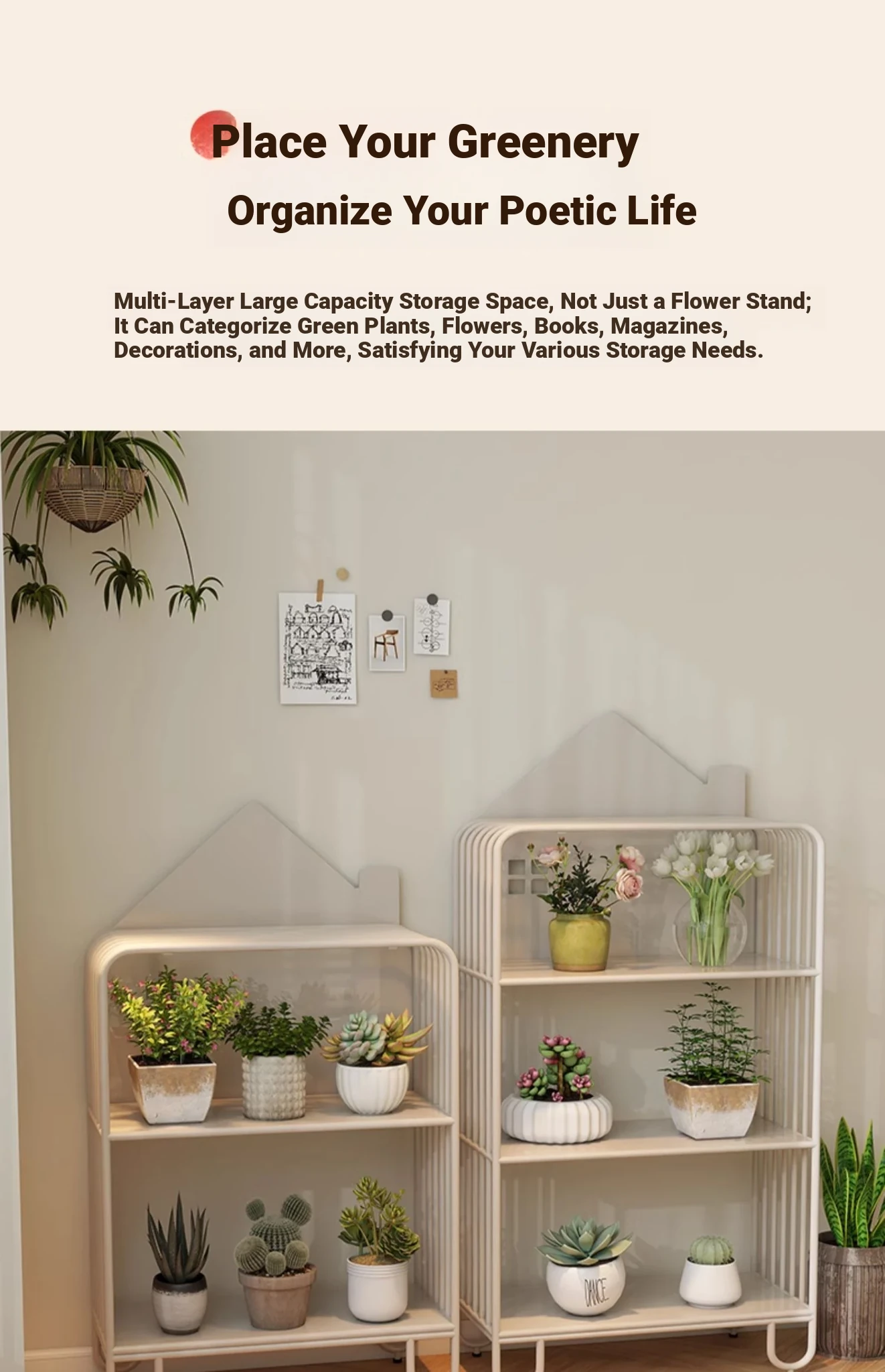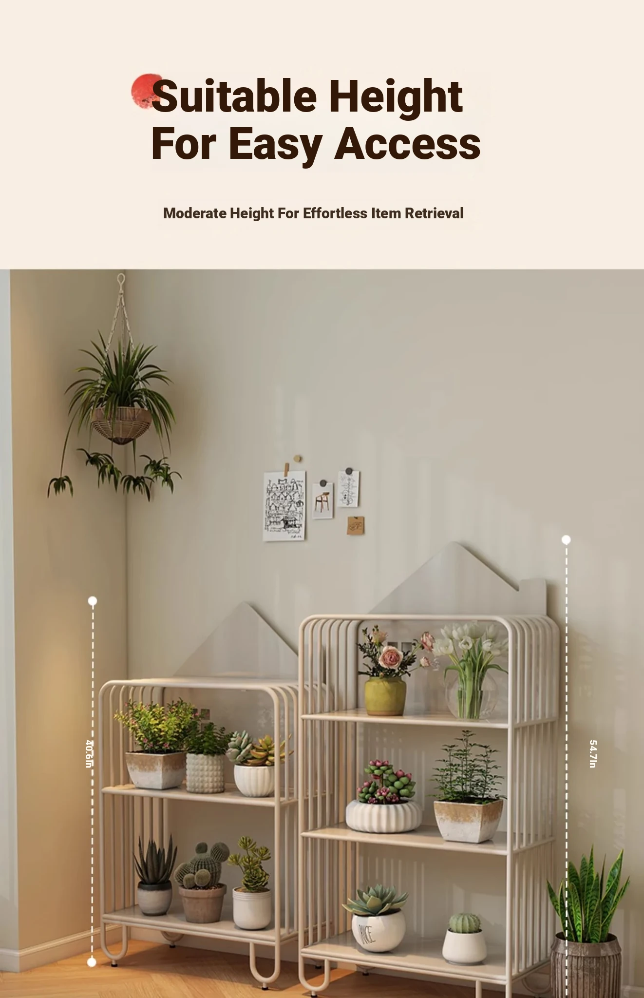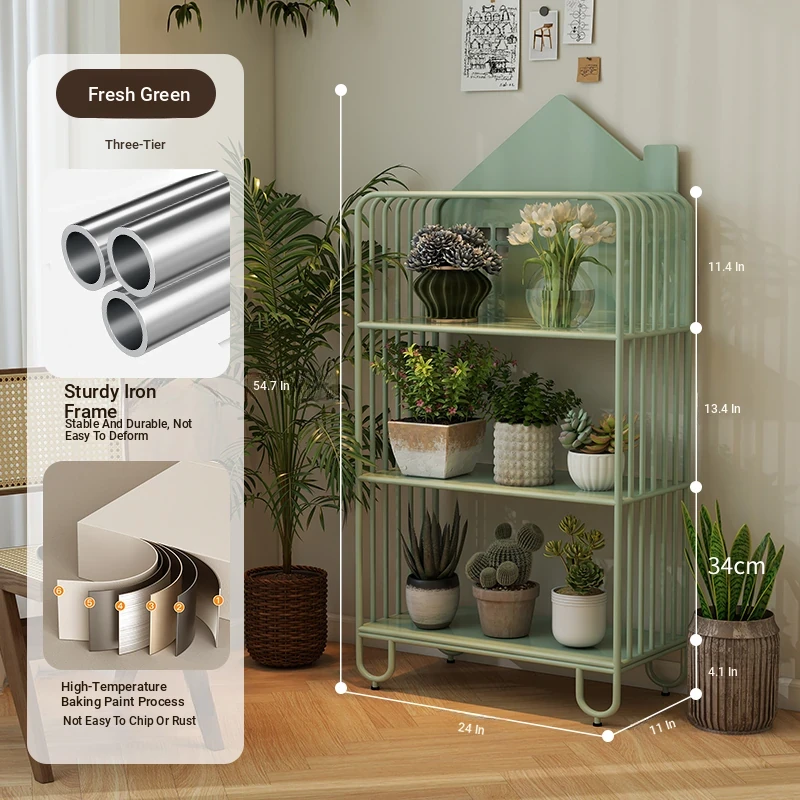 Multi-Tier Plant Stand - Creamy Minimalist Floor Iron Flower Rack for Balcony and Living Room, Spacious Storage Solution for Your Greenery