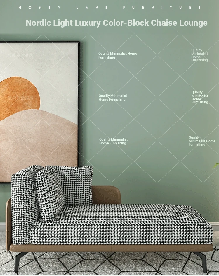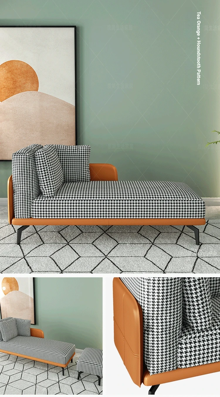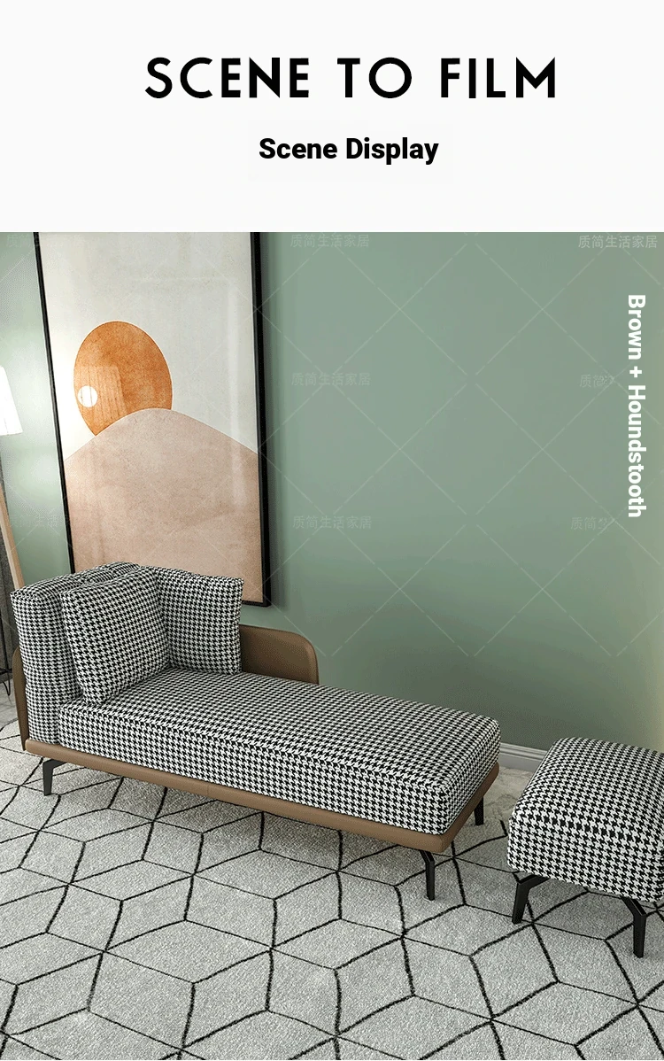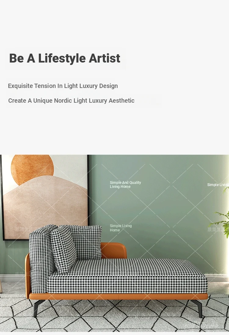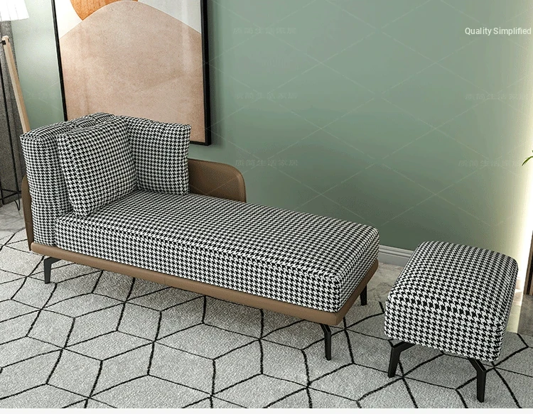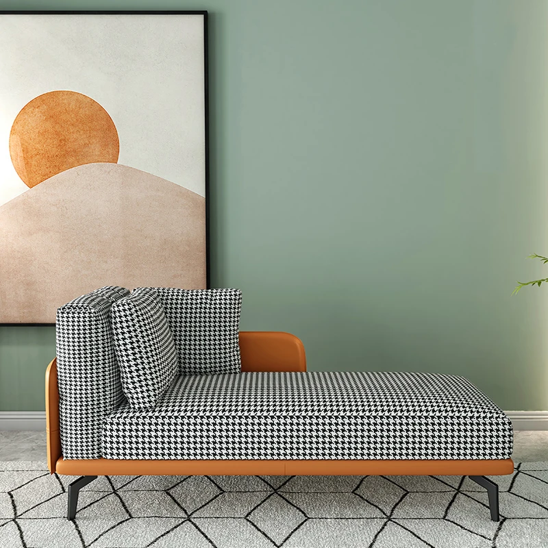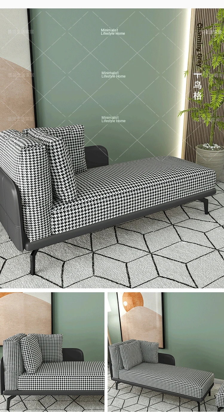 Nordic Designer Chaise Lounge with Houndstooth Pattern - Stylish Lazy Chair for Living Room and Bedroom, Trendy Single Sofa for Ultimate Comfort and Relaxation