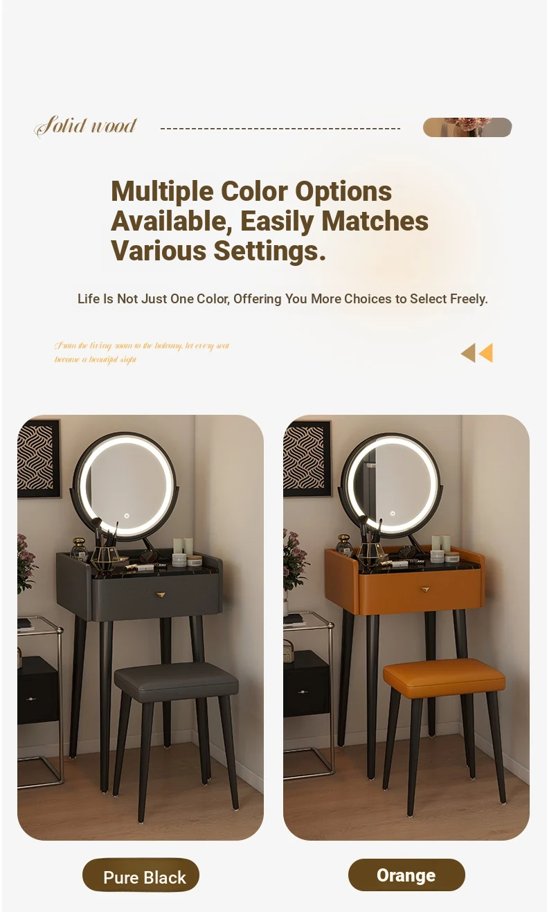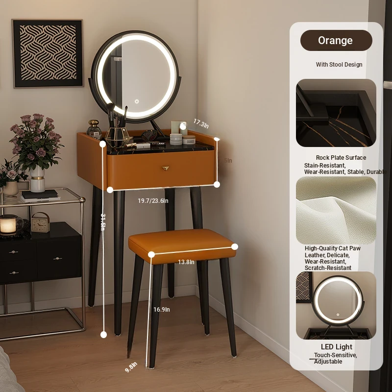 [with Stool] Orange + Smart Led Rotating Makeup Mirror