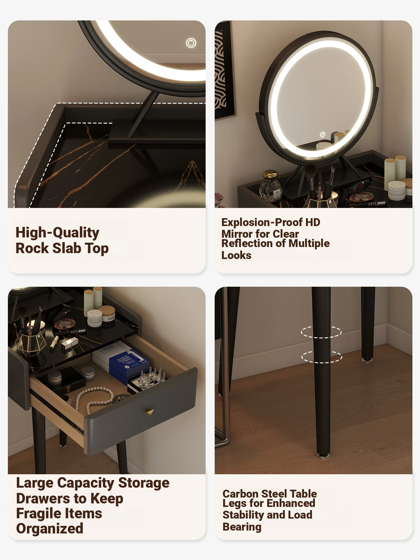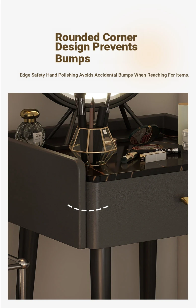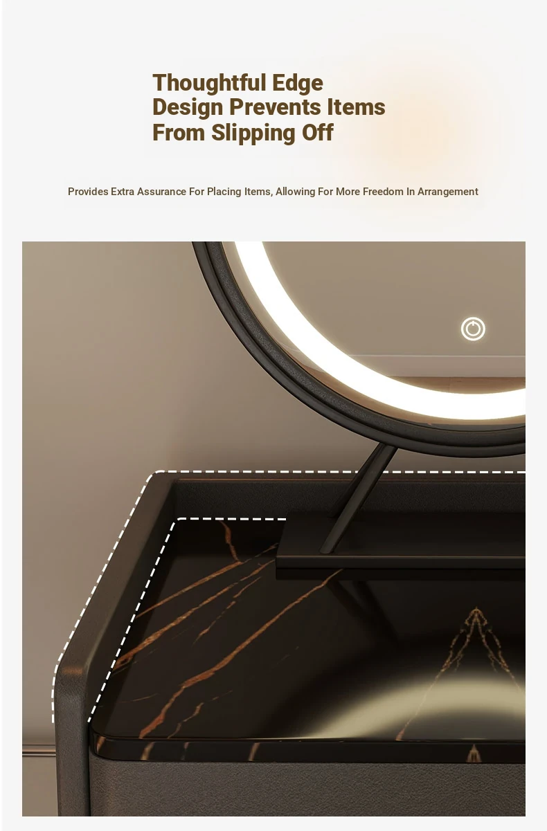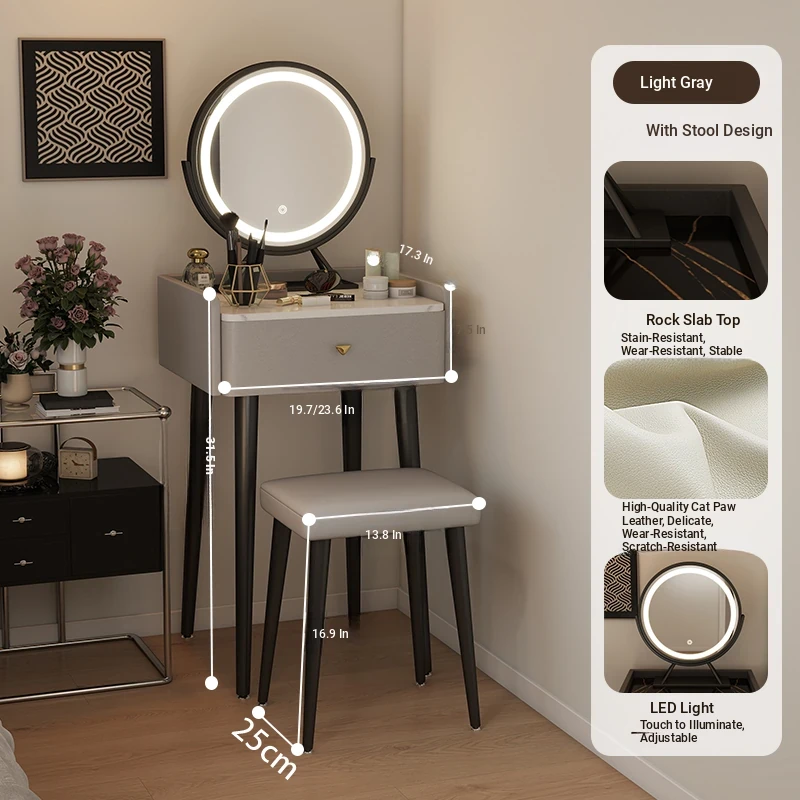 [with Stool] Light Gray + Smart Led Rotating Makeup Mirror