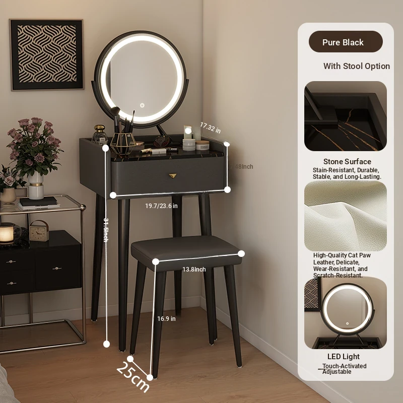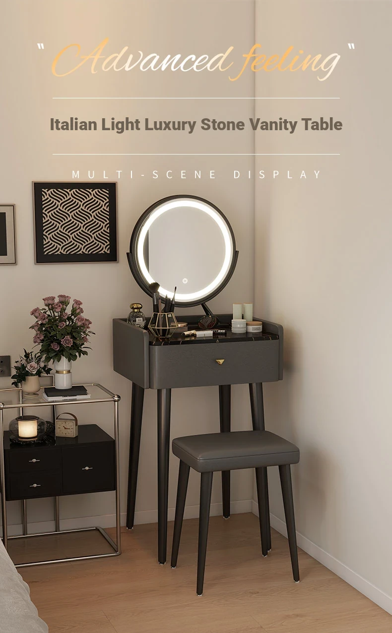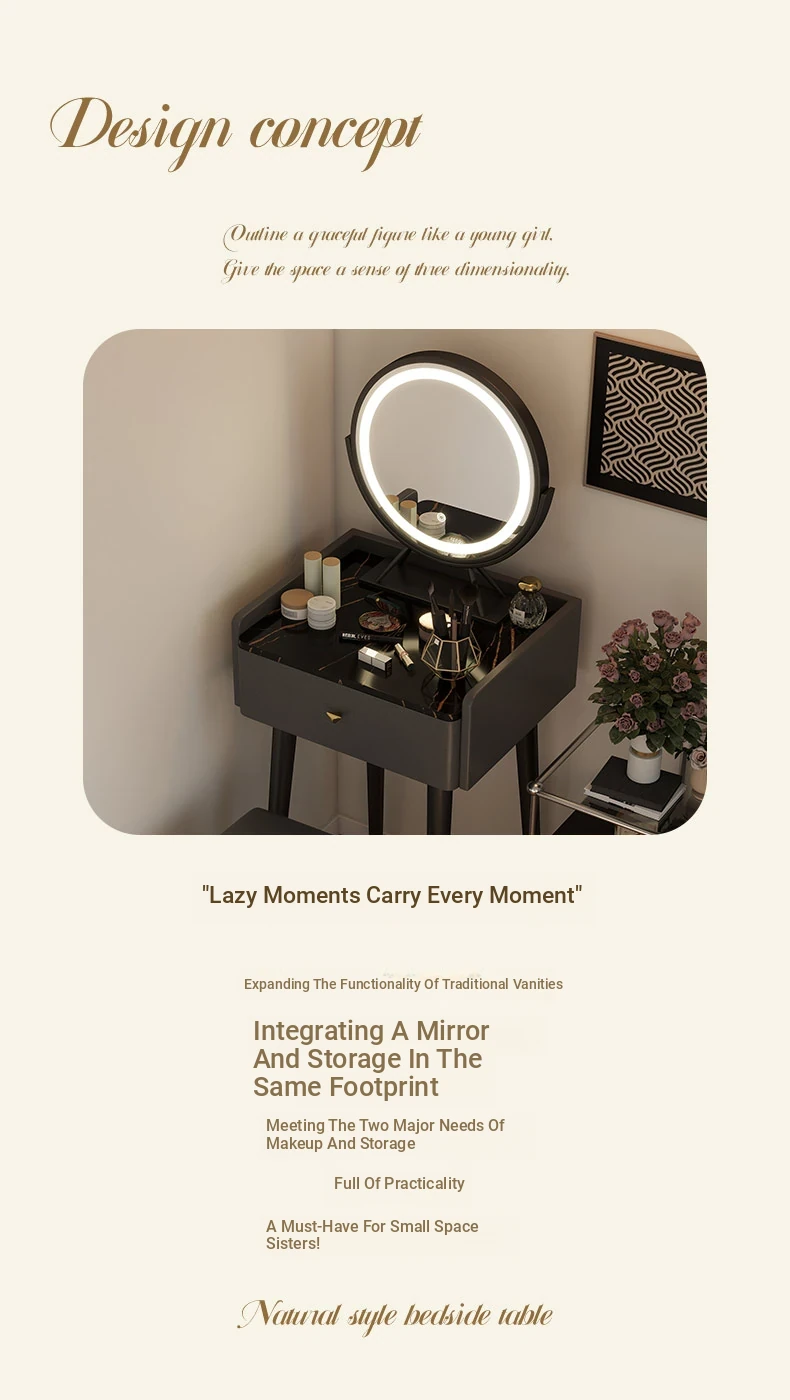 Nordic Style Vanity Table with Mirror - Modern Minimalist Makeup Desk for Small Bedrooms, Perfect for Compact Spaces and Elegant Touches