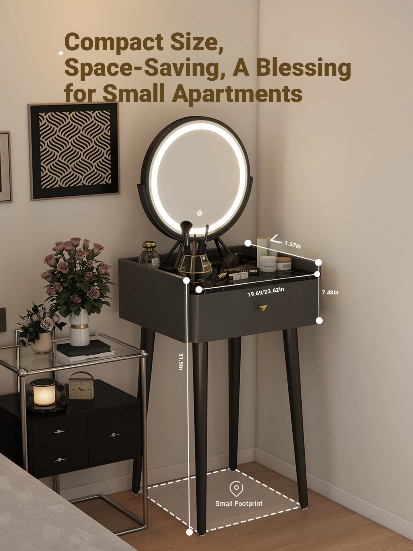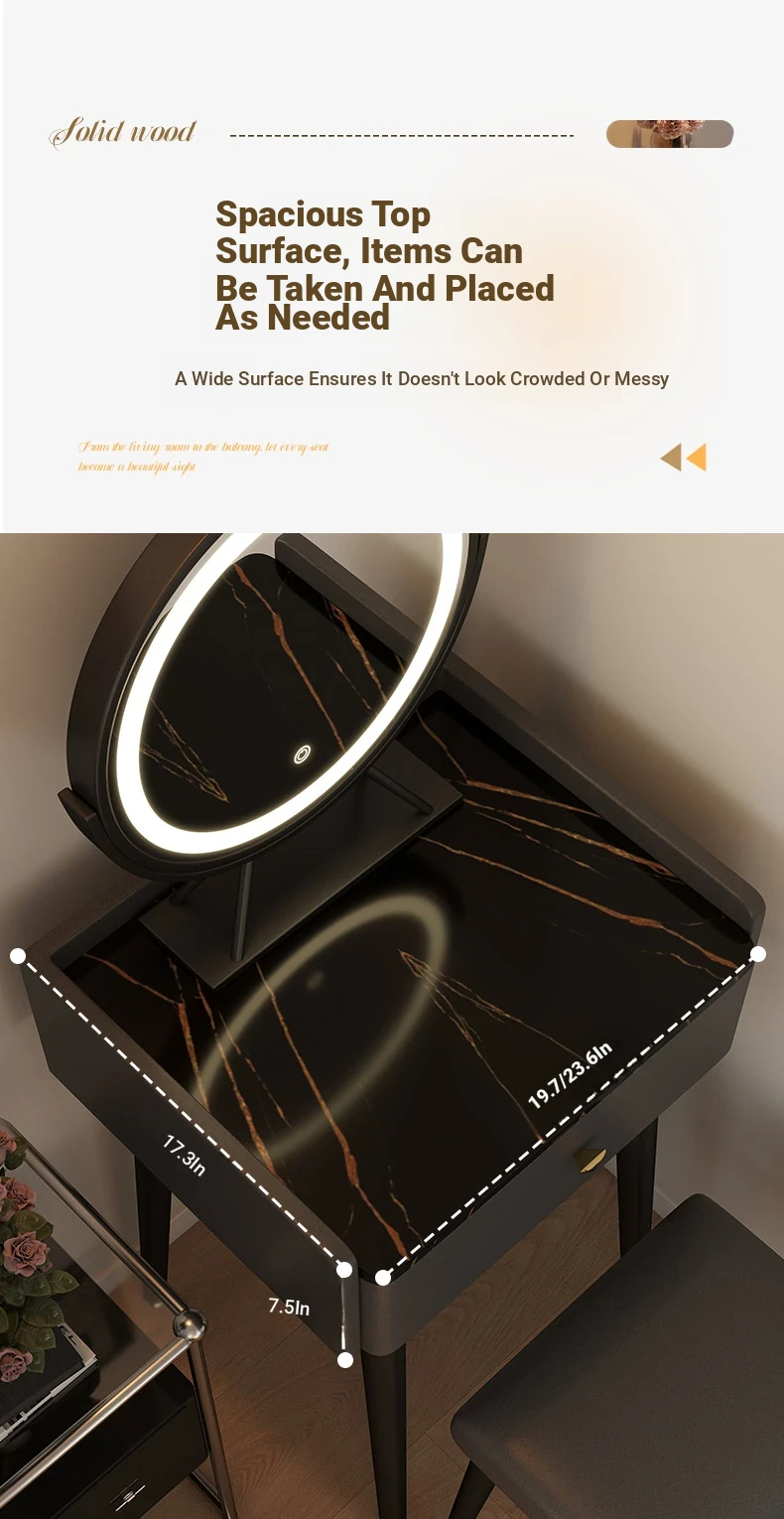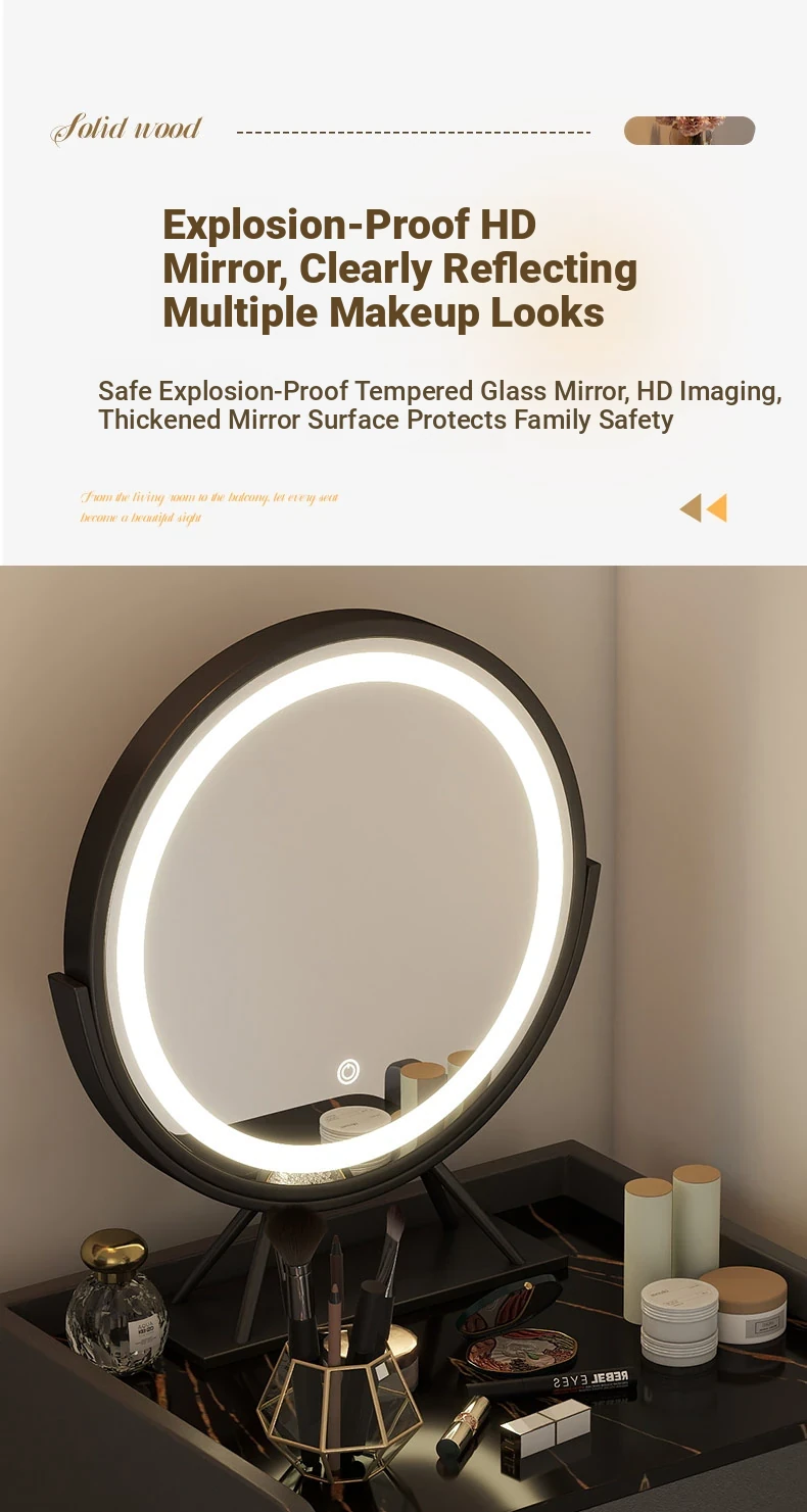 Nordic Style Vanity Table with Mirror - Modern Minimalist Makeup Desk for Small Bedrooms, Perfect for Compact Spaces and Elegant Touches