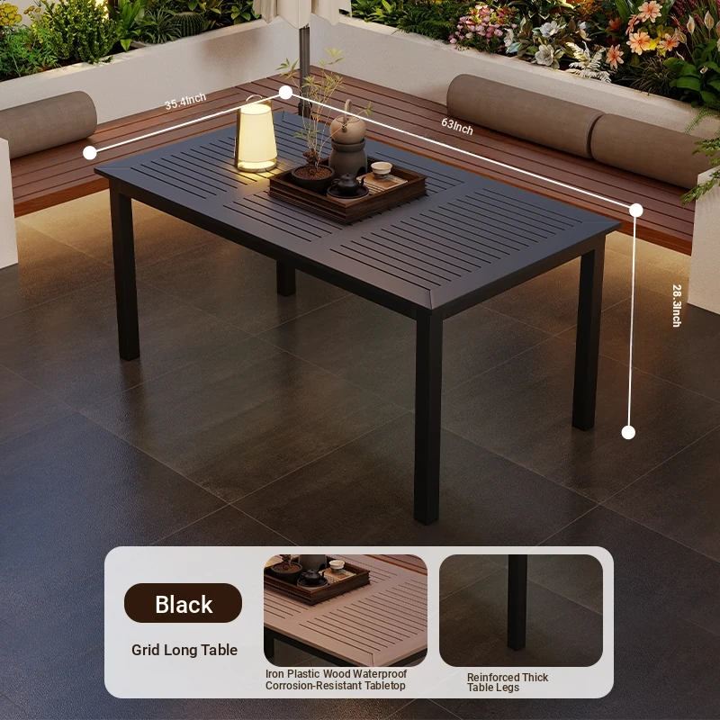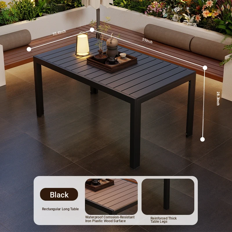 Black [160*90] Iron-Plastic Wood Grain Long Table