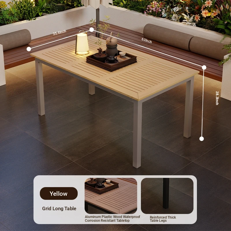 Yellow [160*90] Aluminum-Plastic Wood Grain Long Table
