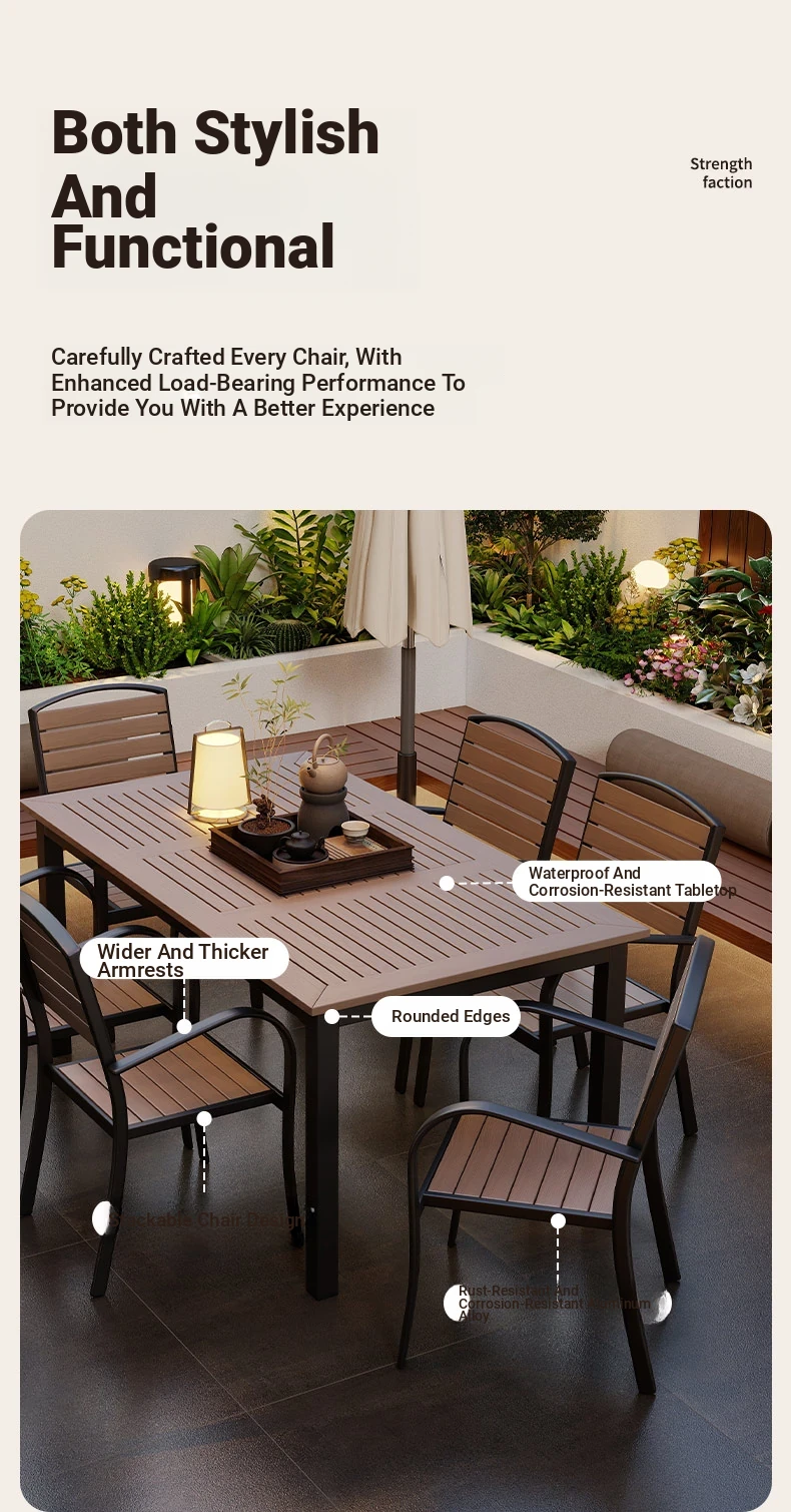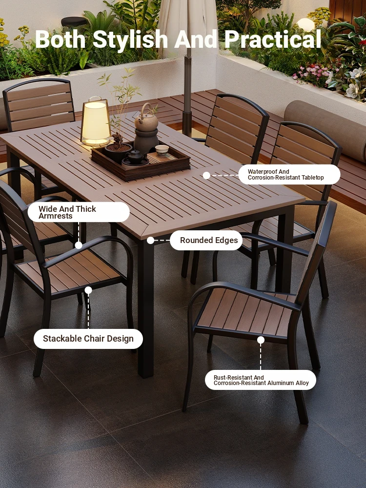 Outdoor Patio Furniture Set - Weather-Resistant Wooden Garden Chairs and Tables for Balconies, Villas, and Cafés – Stylish and Durable for Commercial and Recreational Use