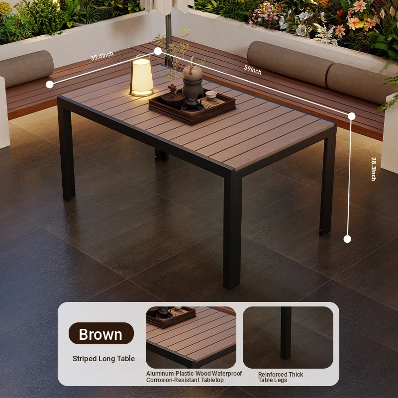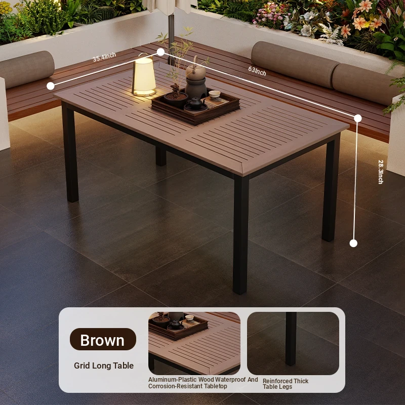 Coffee Brown [160*90] Aluminum Composite Wood Grain Long Table