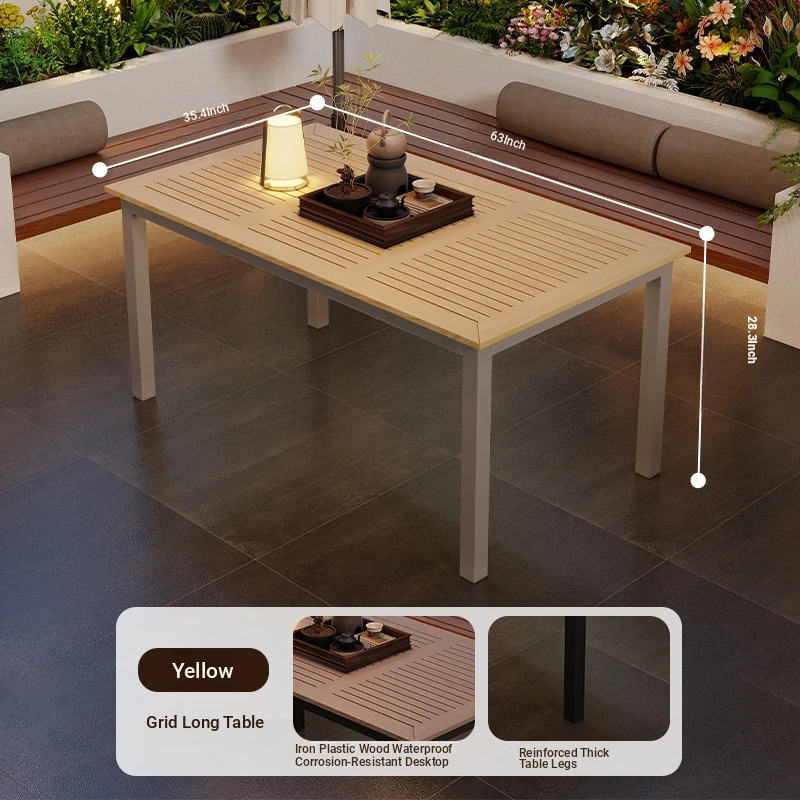 Yellow [160*90] Iron-Plastic Wood Grain Long Table