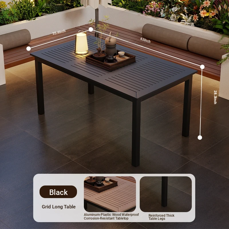 Black [160*90] Aluminum Composite Wood Grain Long Table