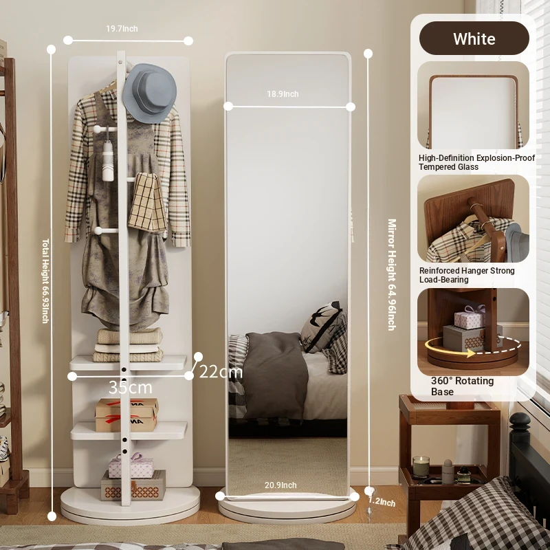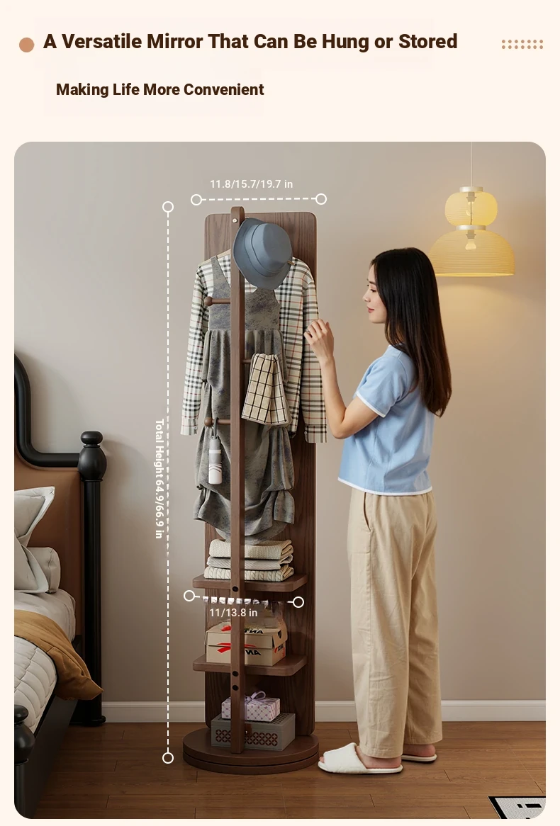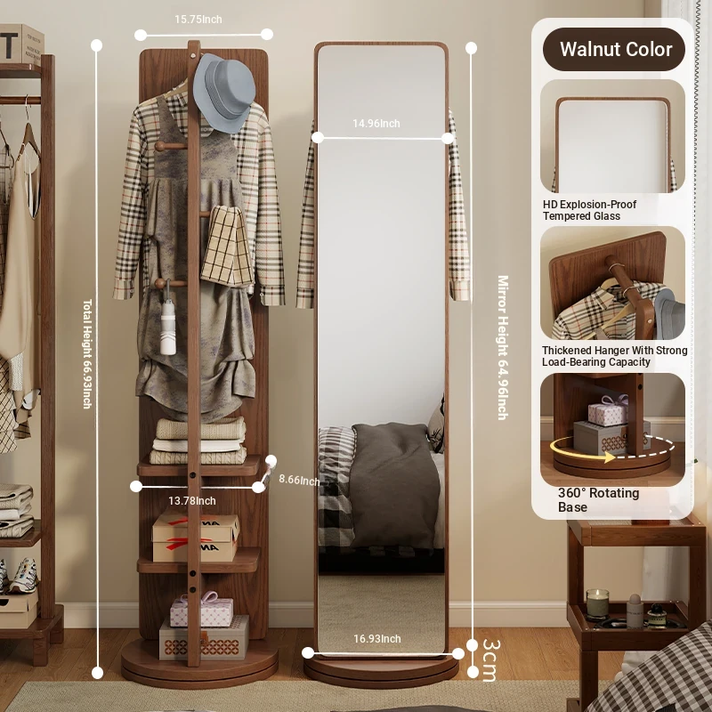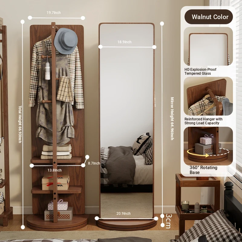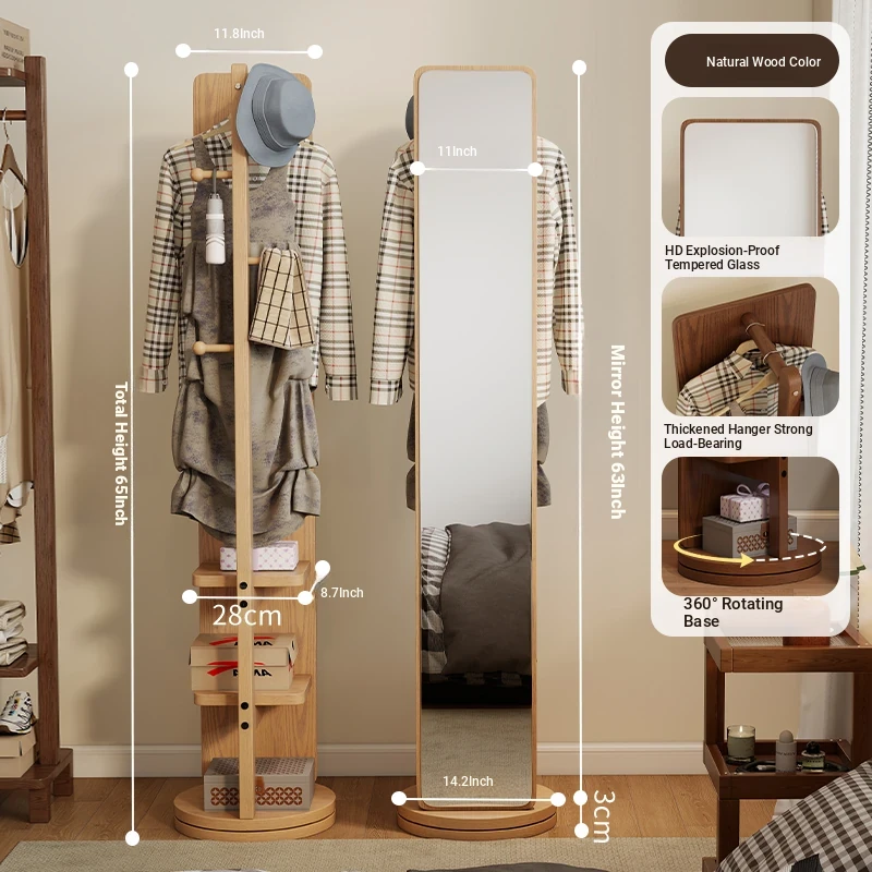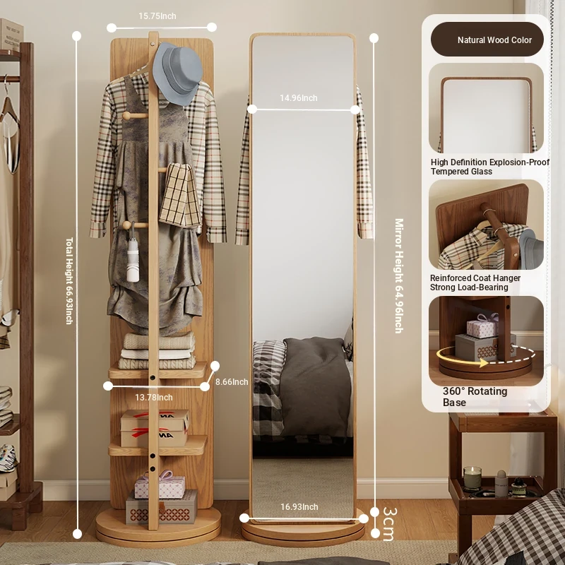 Rotatable Full-Length Solid Wood Floor Mirror with Hanging Rack - Ideal for Bedroom Dressing and Stylish Home Décor