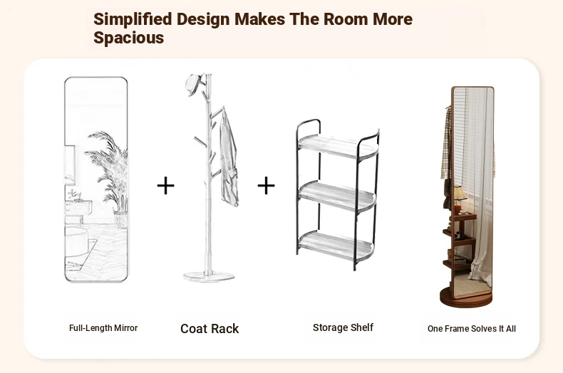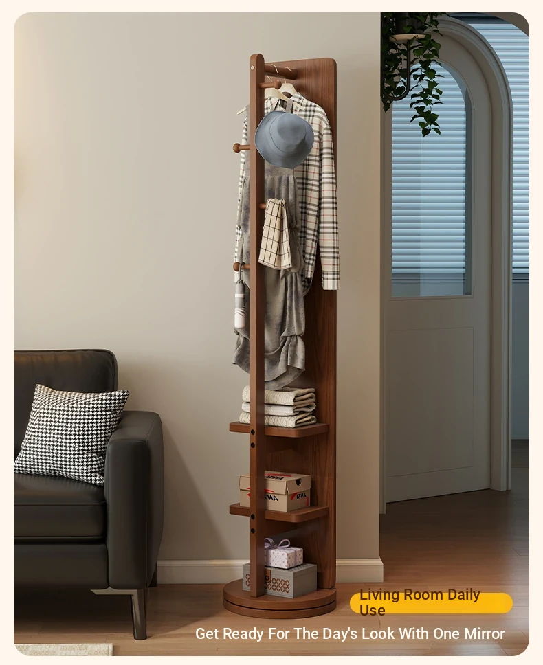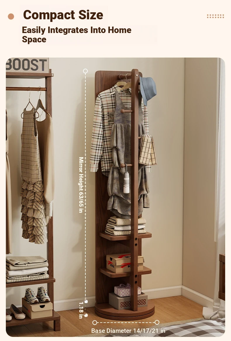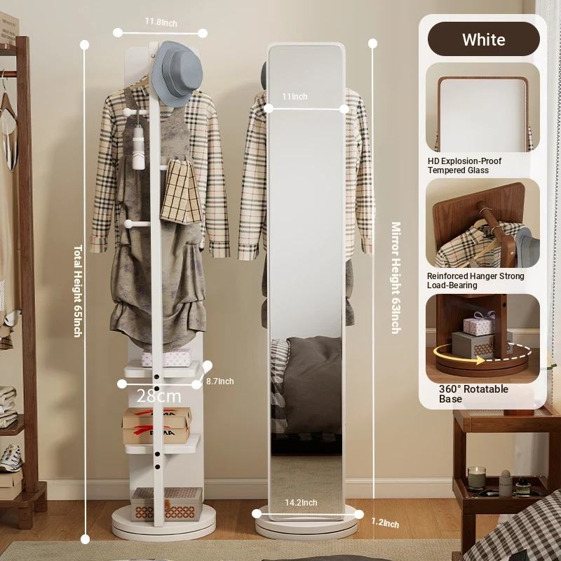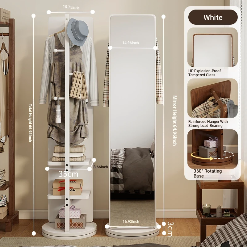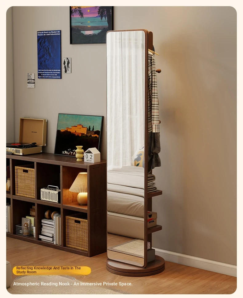Rotatable Full-Length Solid Wood Floor Mirror with Hanging Rack - Ideal for Bedroom Dressing and Stylish Home Décor
