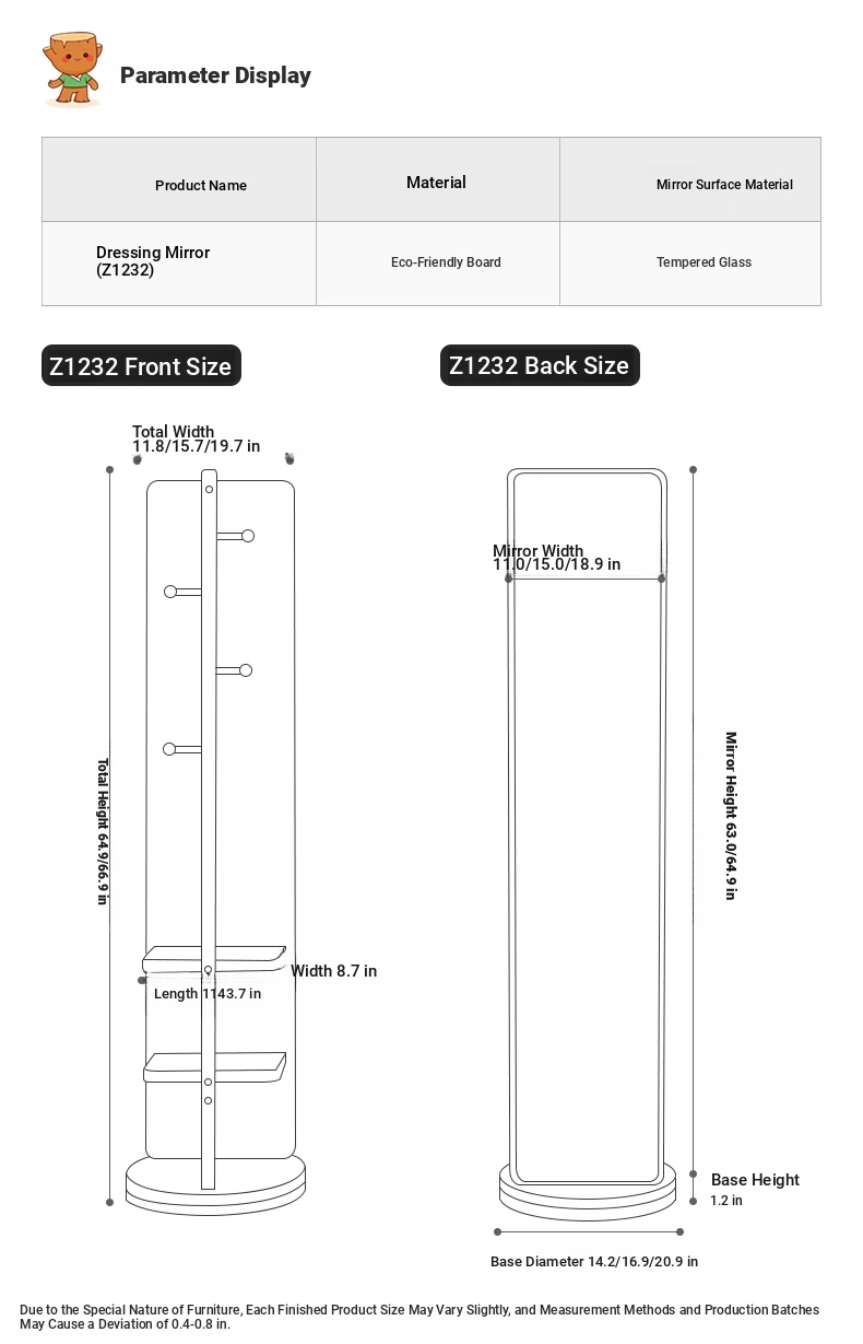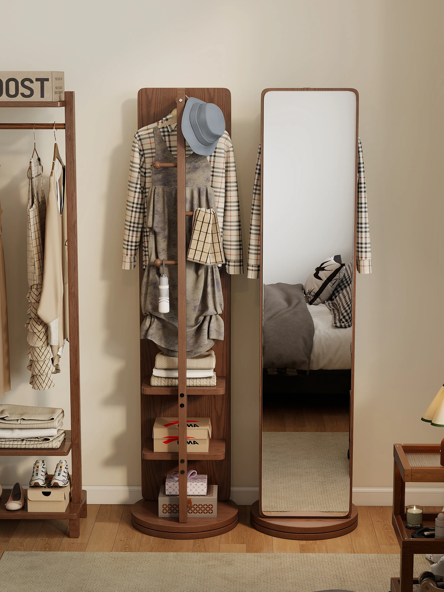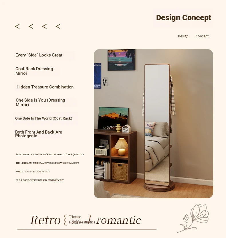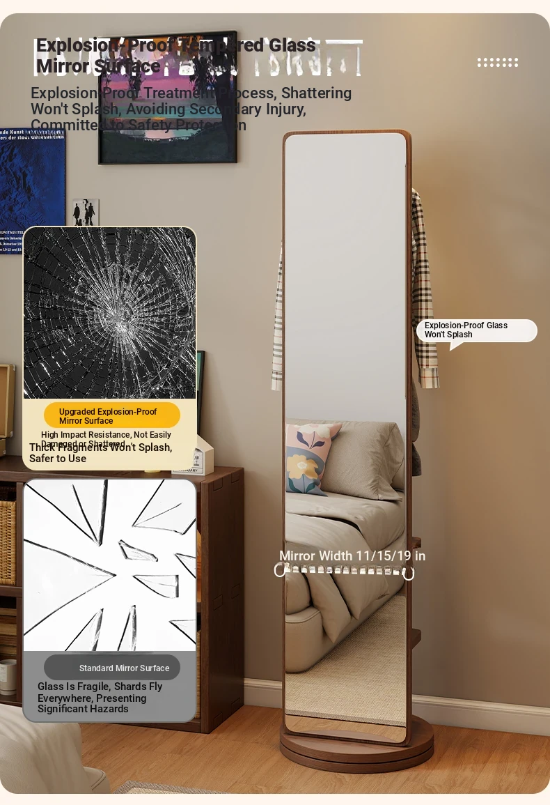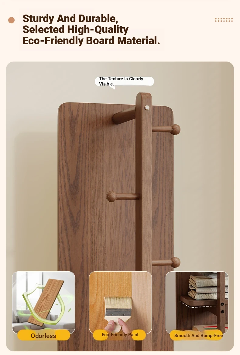 Rotatable Full-Length Solid Wood Floor Mirror with Hanging Rack - Ideal for Bedroom Dressing and Stylish Home Décor