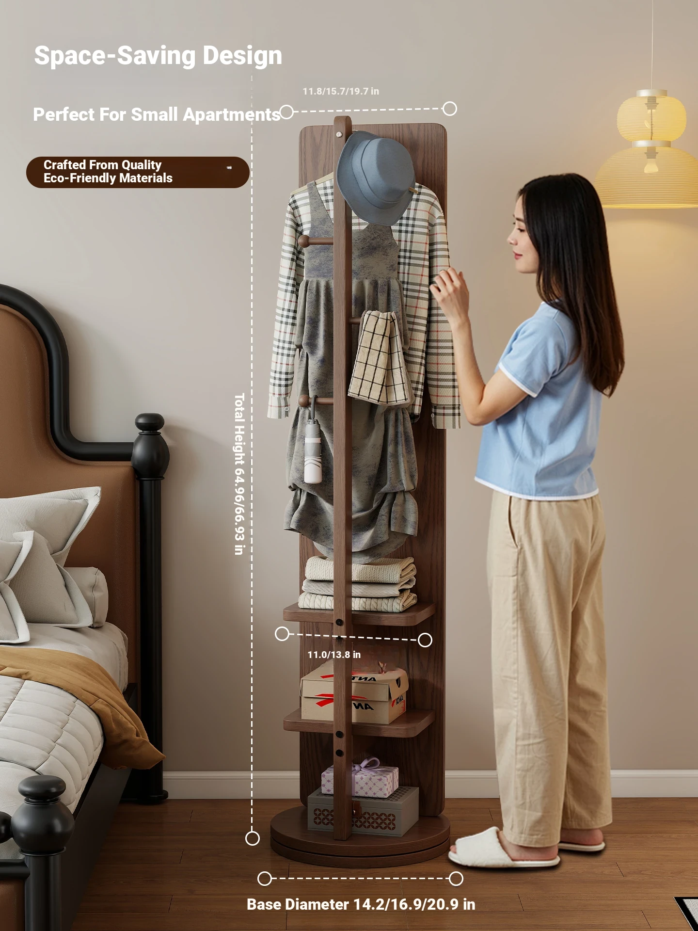 Walnut Color [Square Medium Double Layer] 11.81in*62.99in Rotating + Hanging Clothes + Storage