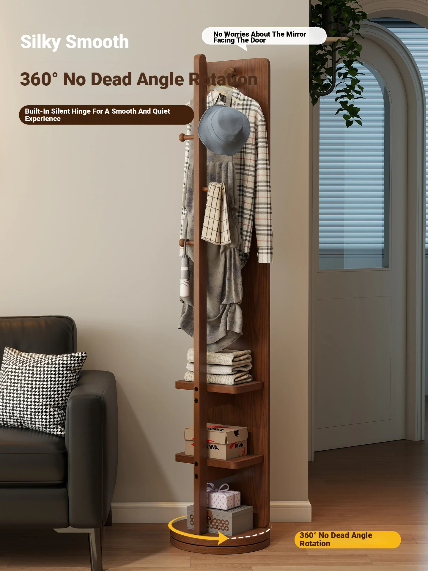 Walnut Color [Square Large Double Layer] 40*165Cm Rotation + Hanging Clothes + Storage