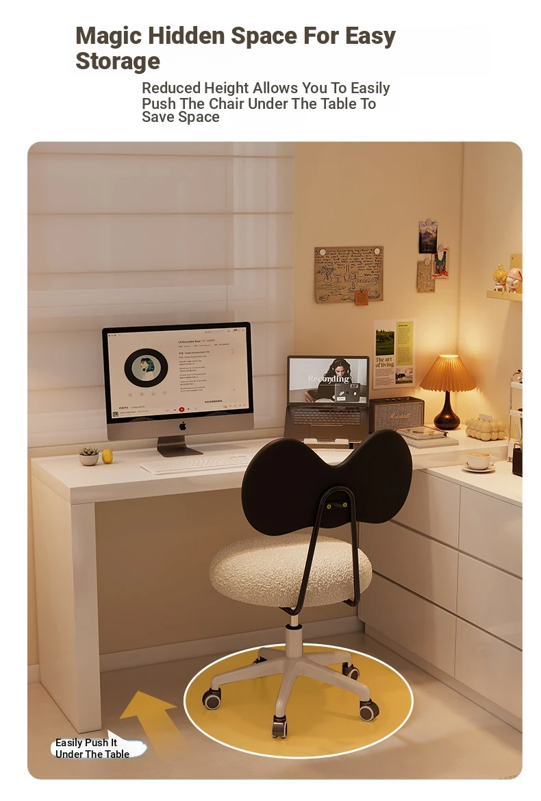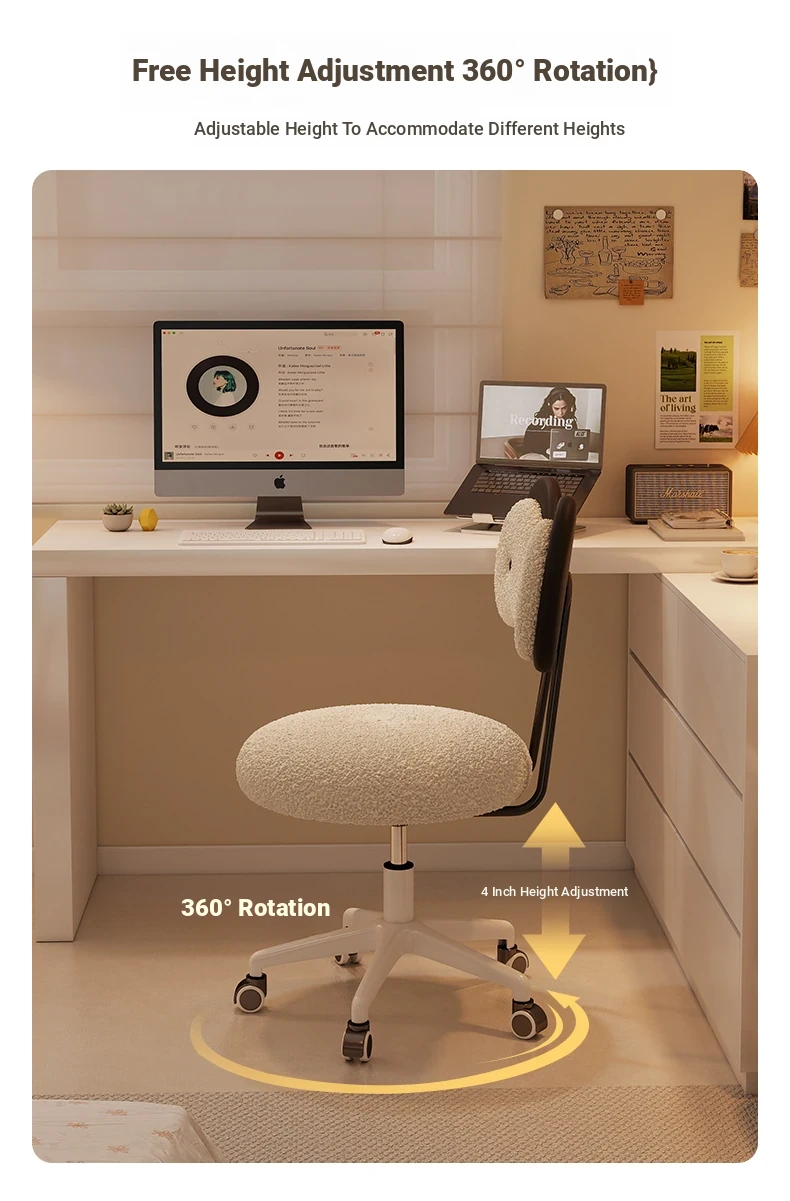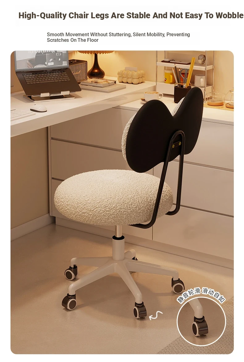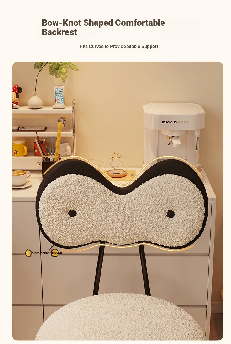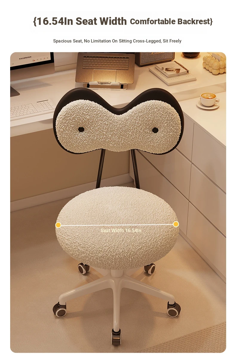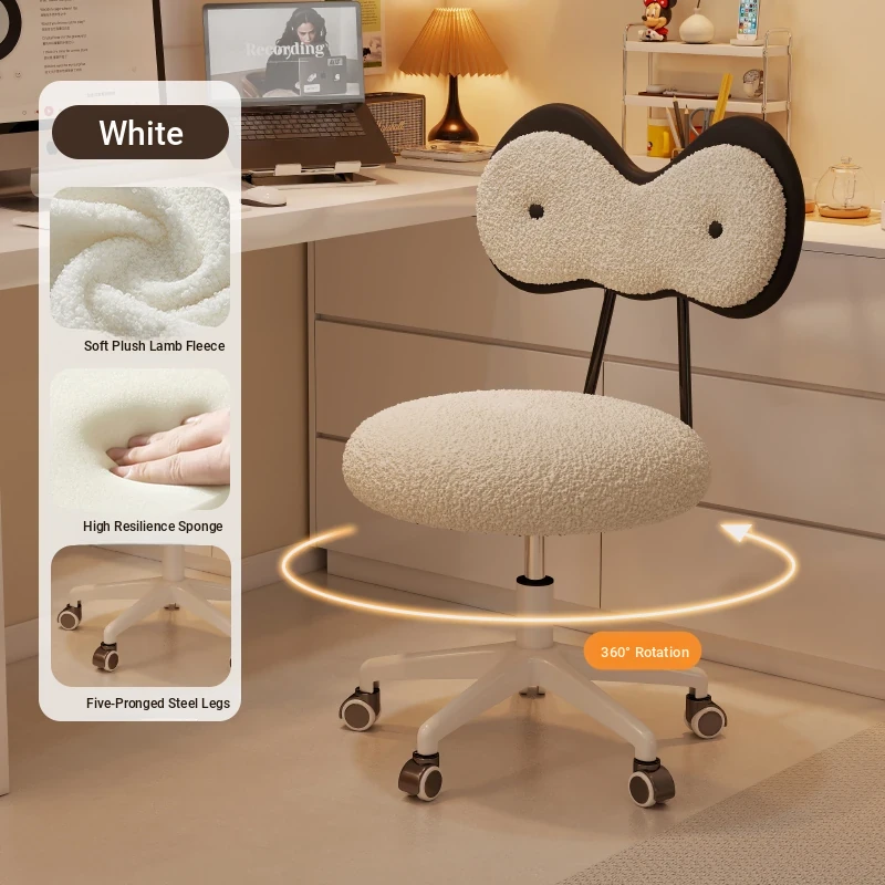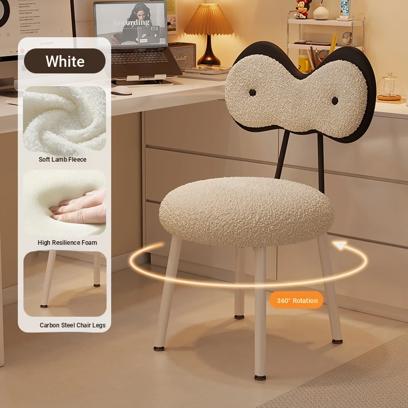 Rotatable Makeup Stool for Girls - Stylish Creamy Vanity Chair with Simple Bow Backrest, Ideal for Bedroom Use, Perfect for Your Beauty Routine!