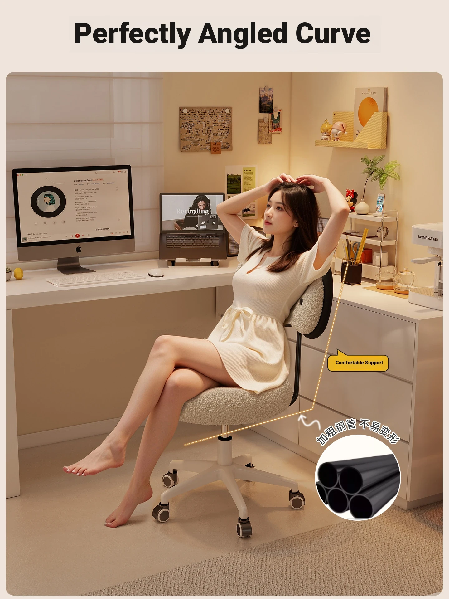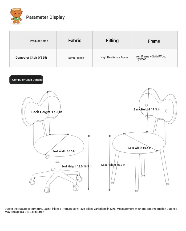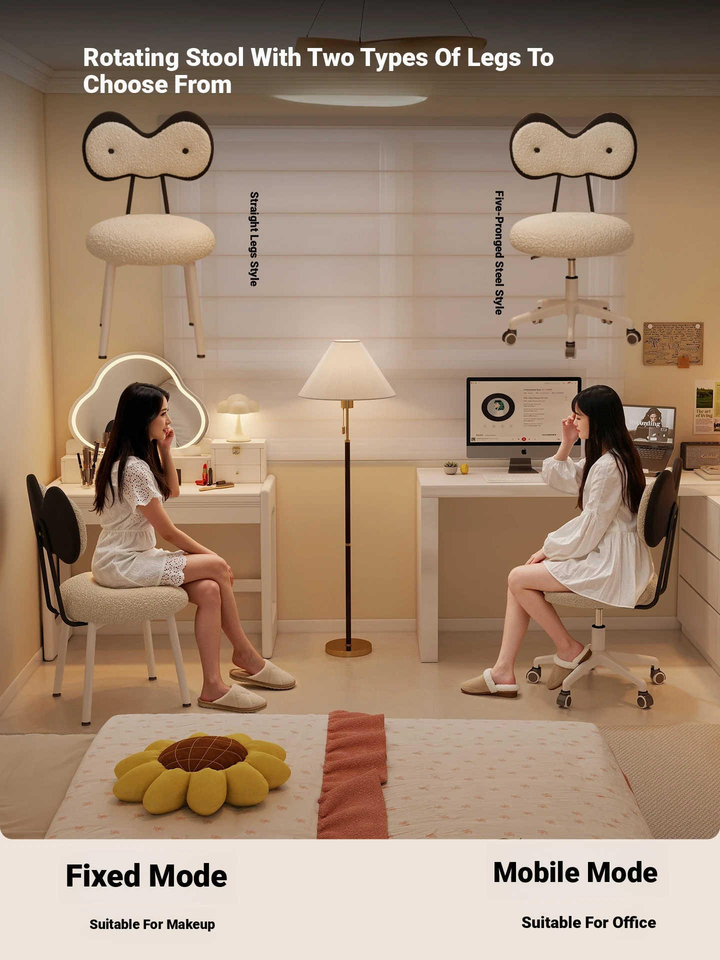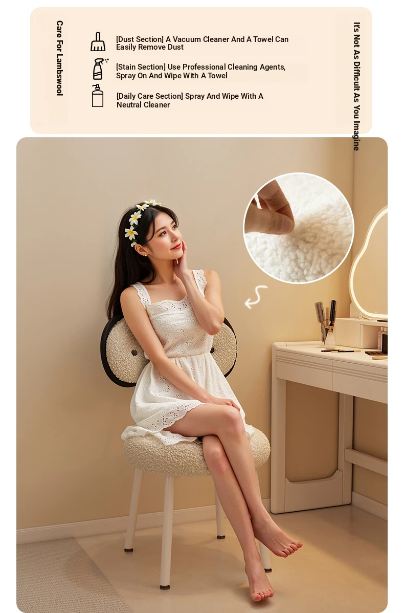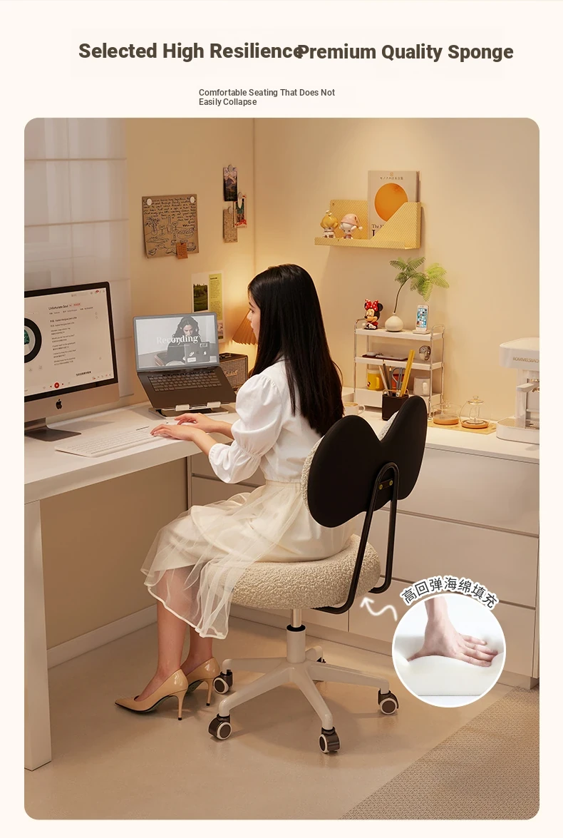 Rotatable Makeup Stool for Girls - Stylish Creamy Vanity Chair with Simple Bow Backrest, Ideal for Bedroom Use, Perfect for Your Beauty Routine!