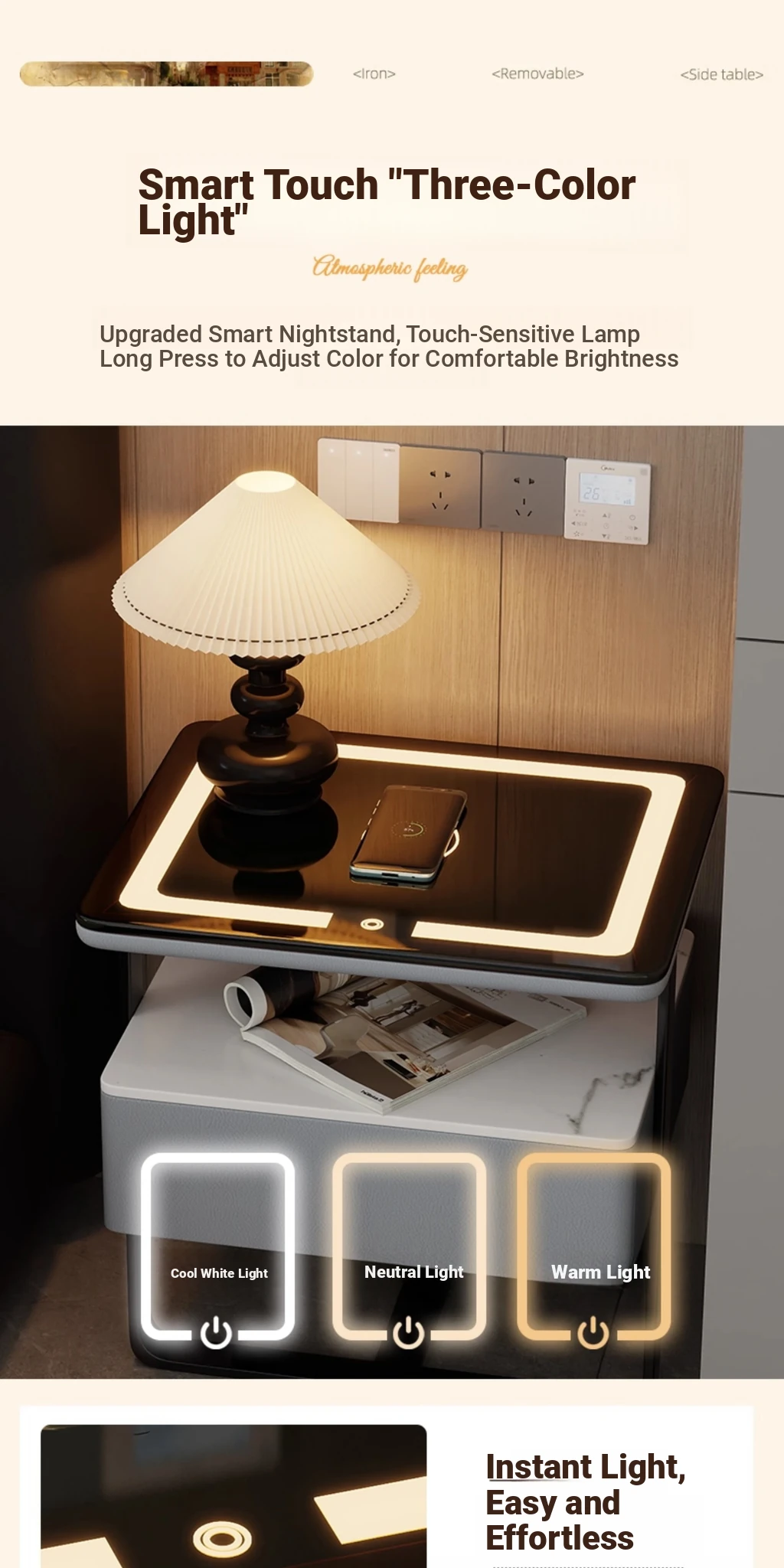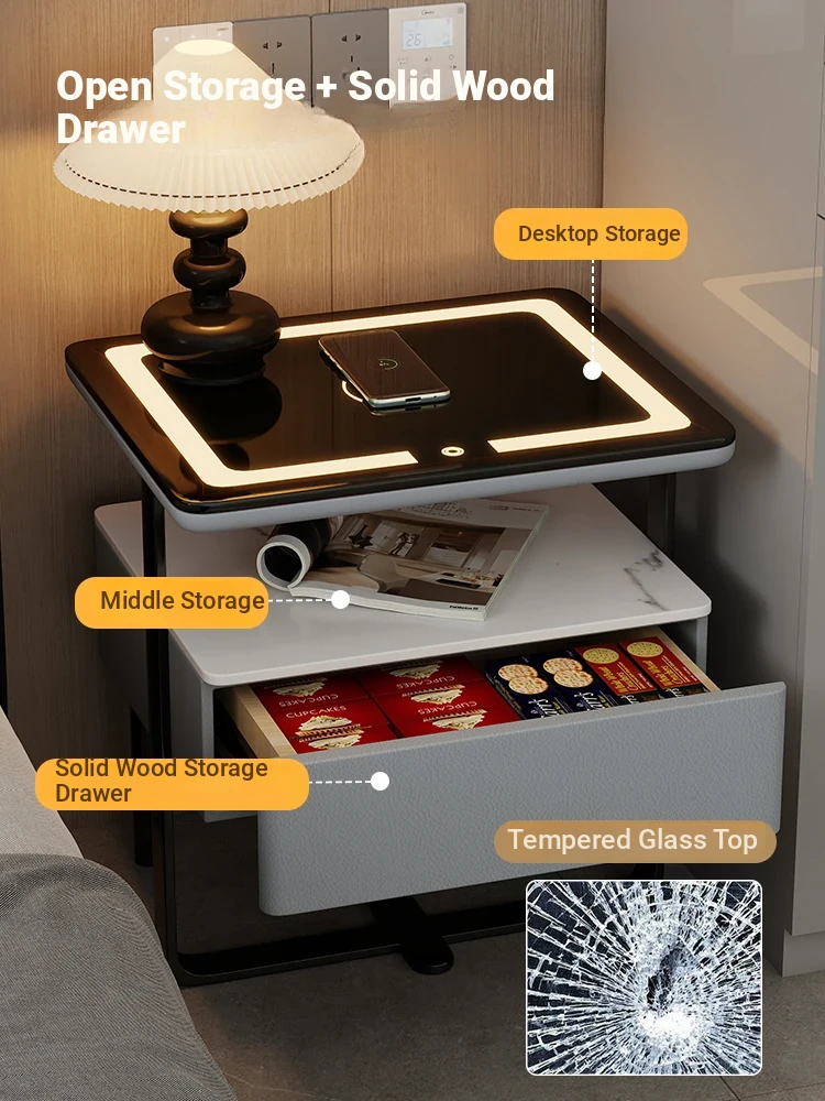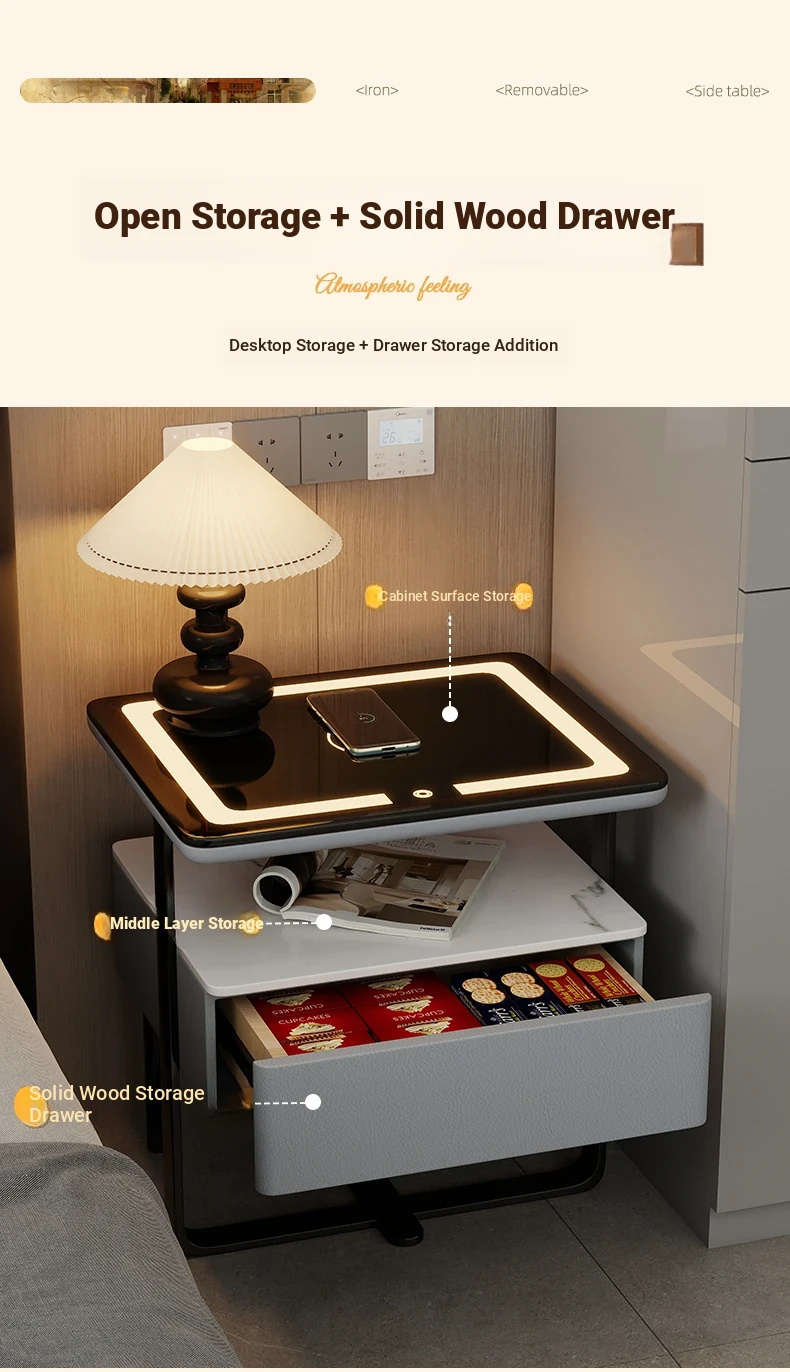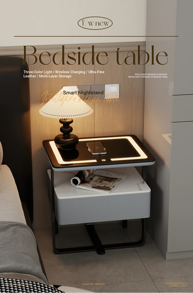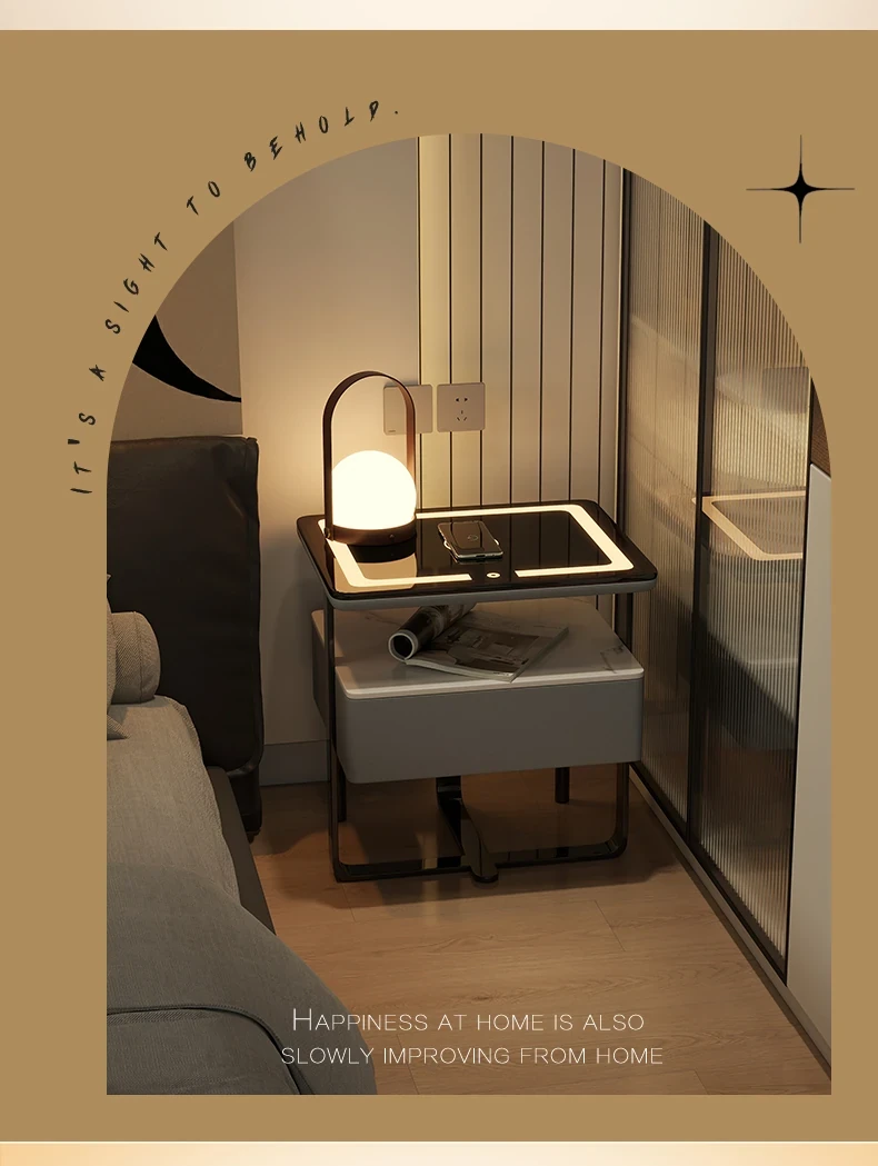 Smart Nightstand - Minimalist Modern Luxury Bedside Table with Wireless Charging & Storage Solutions for a Chic Bedroom Experience