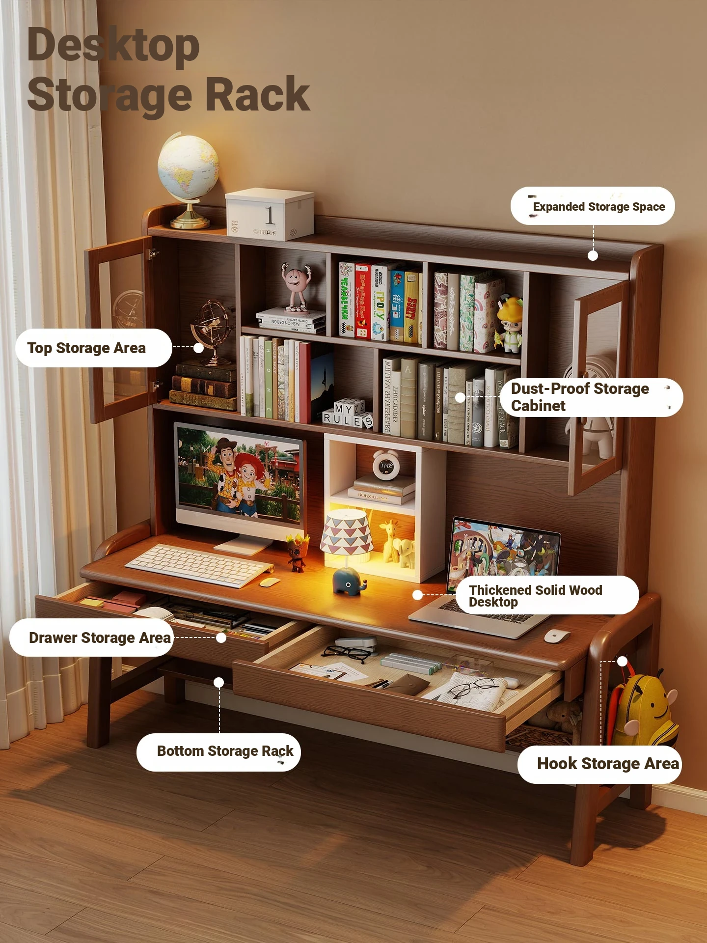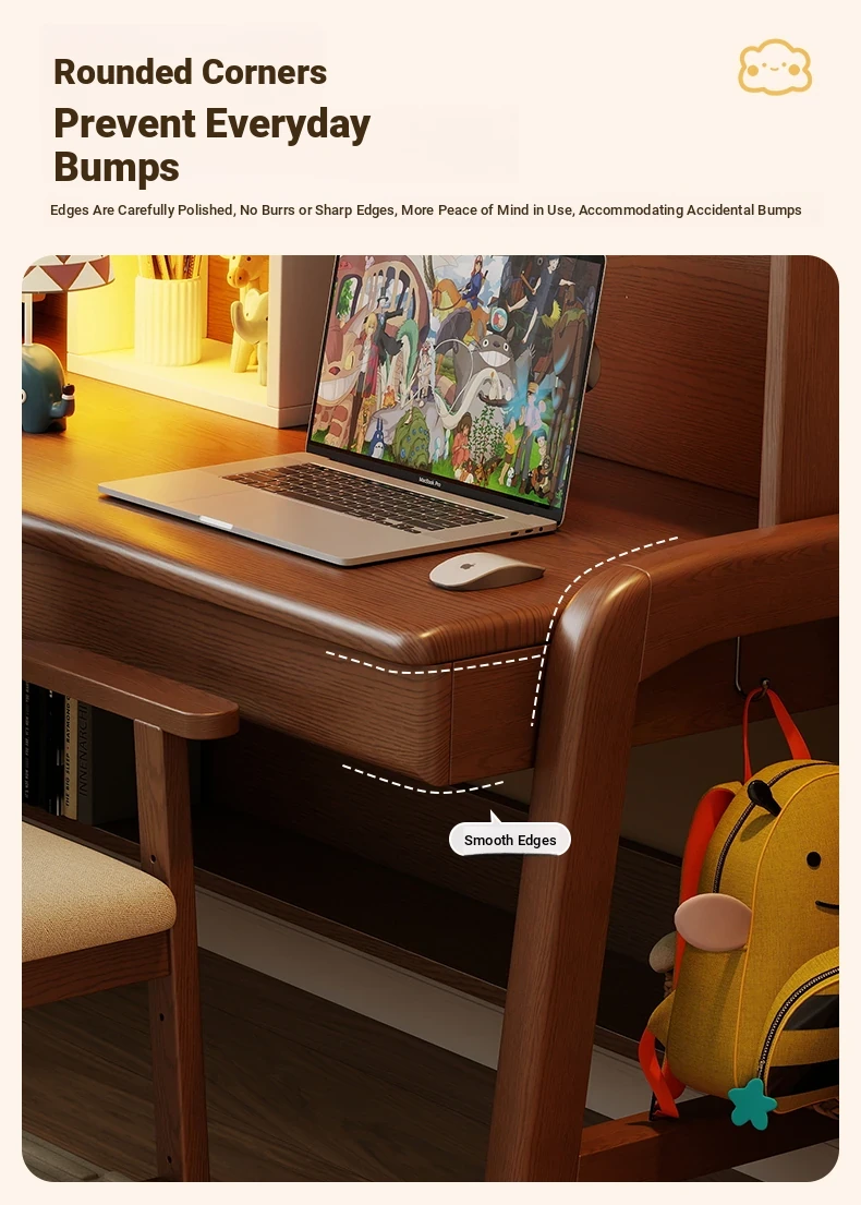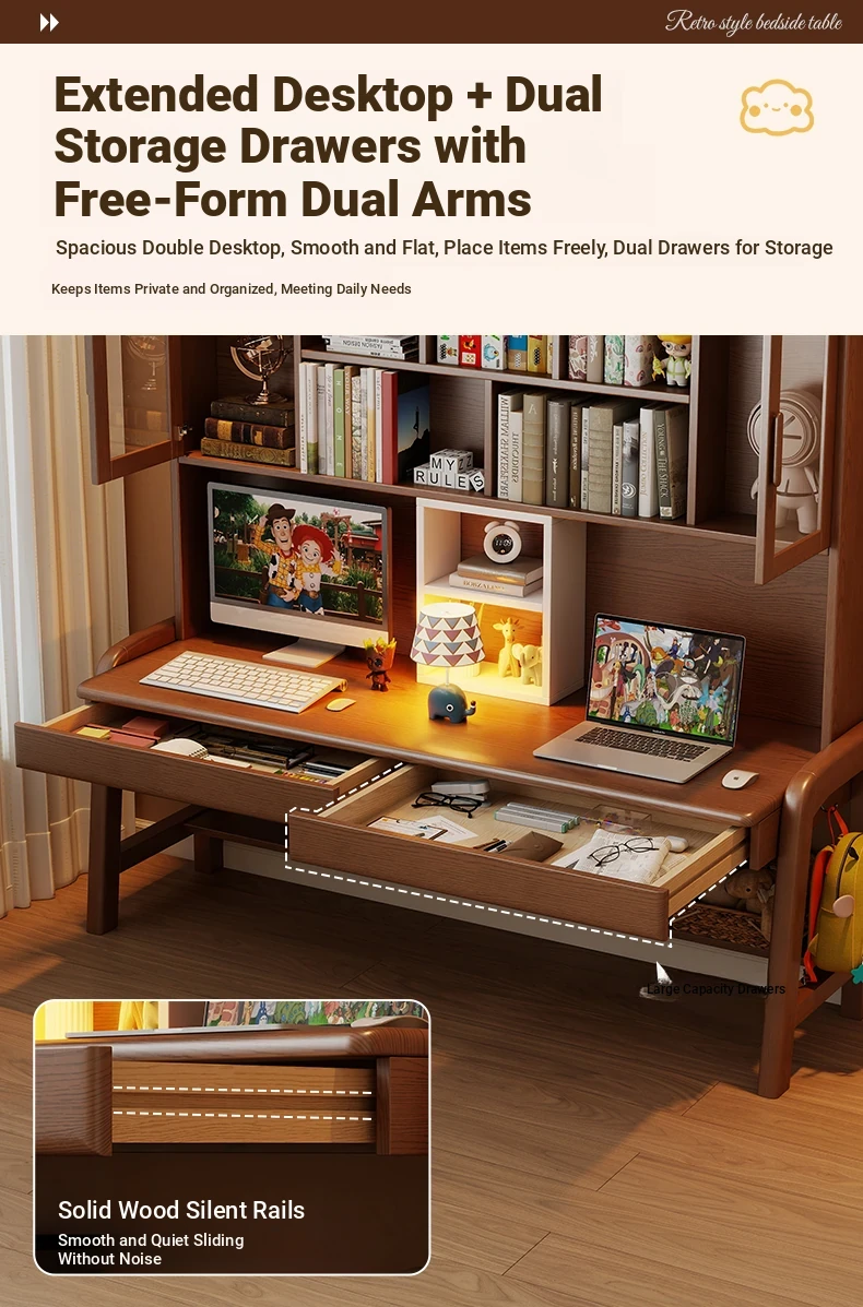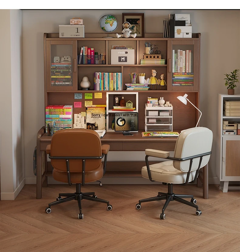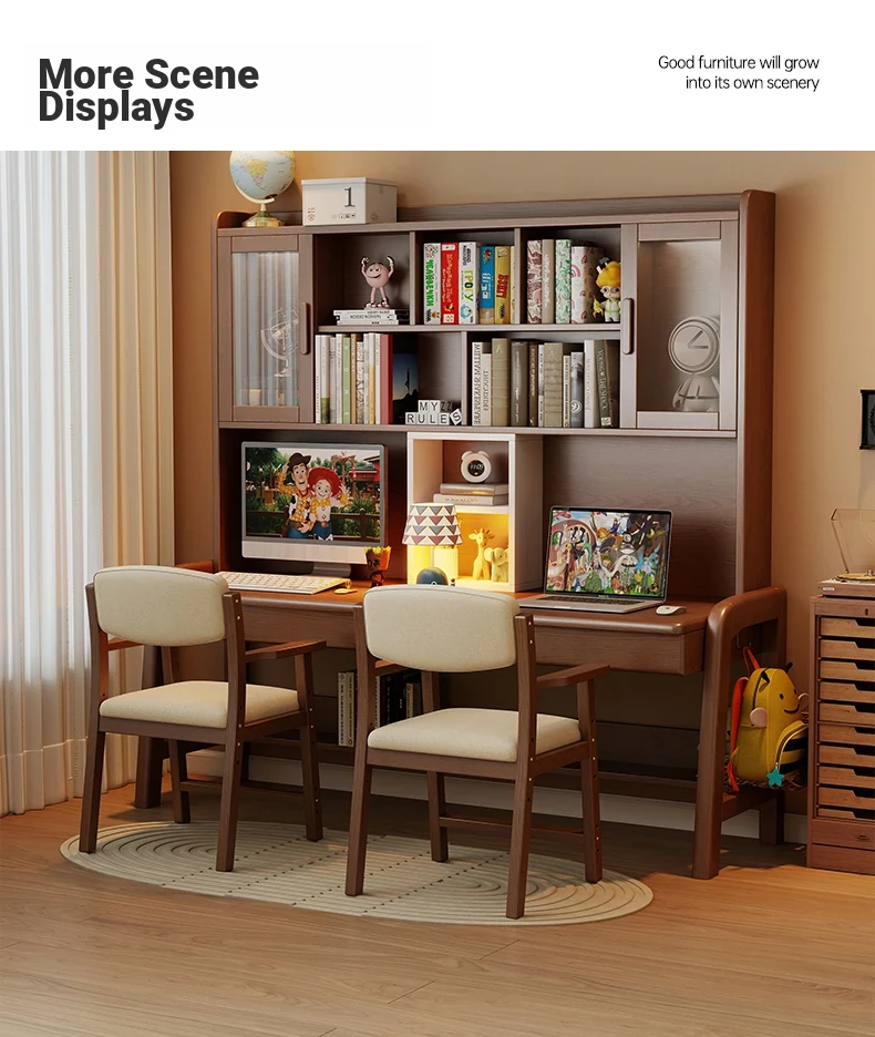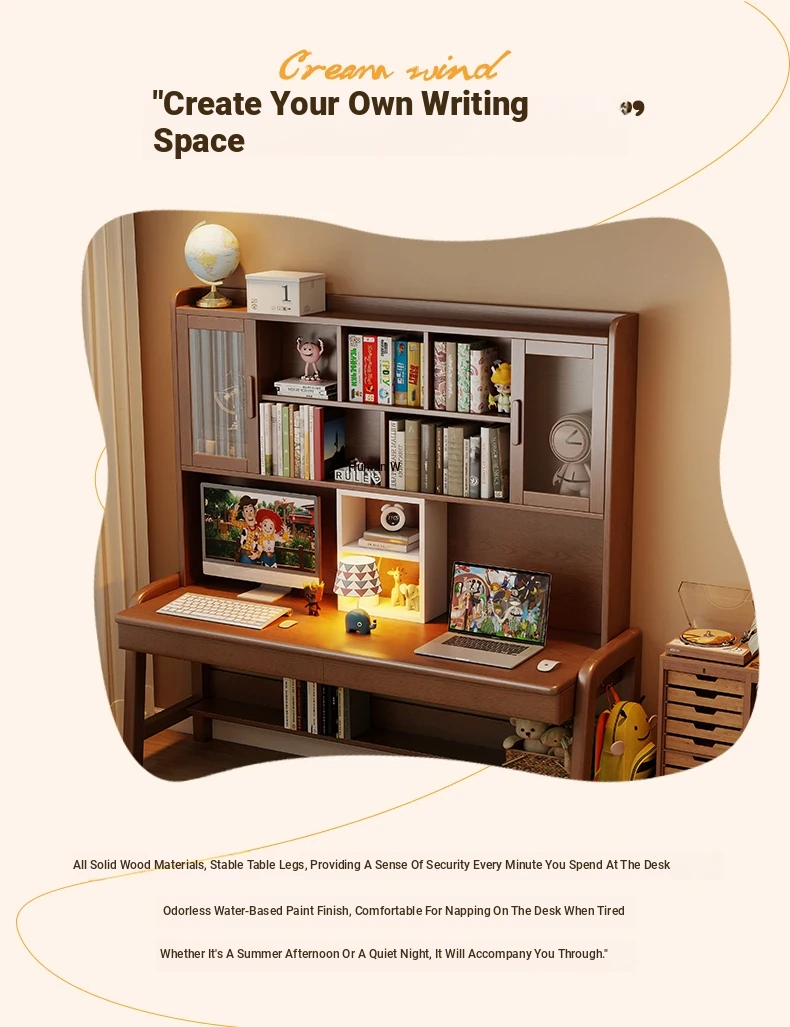 Solid Wood Dual-Purpose Desk and Bookshelf Combo - Adjustable Height Computer Desk for Office and Home Use, Perfect for Living Room Study and Writing with Matching Chair Set