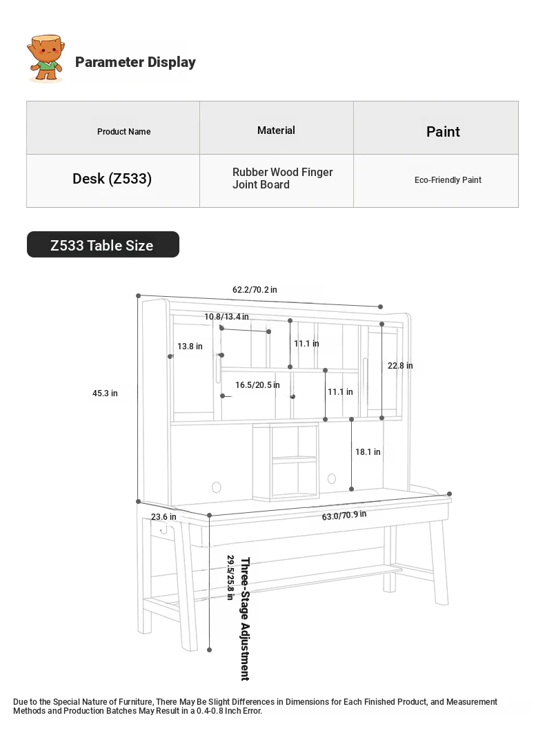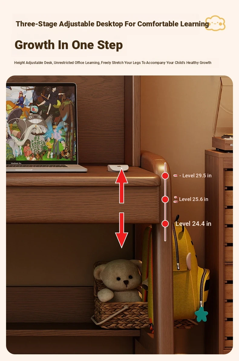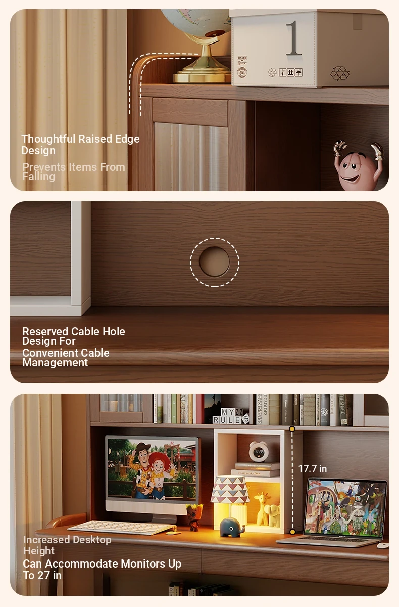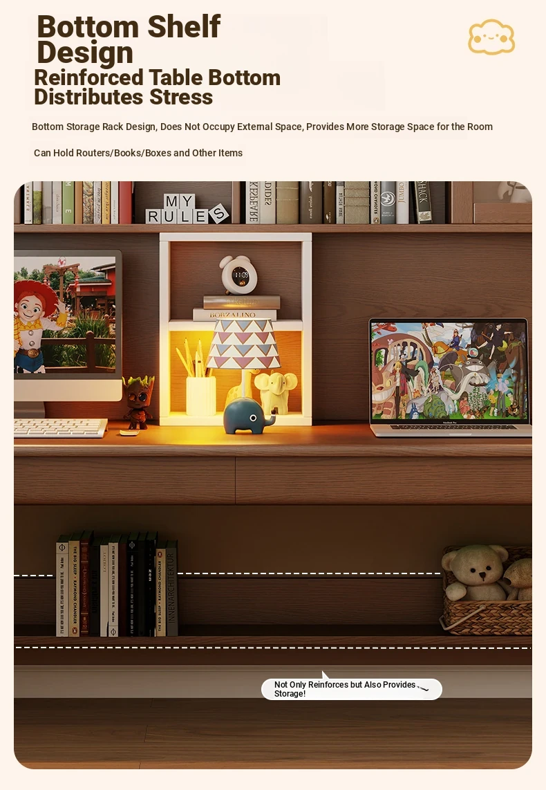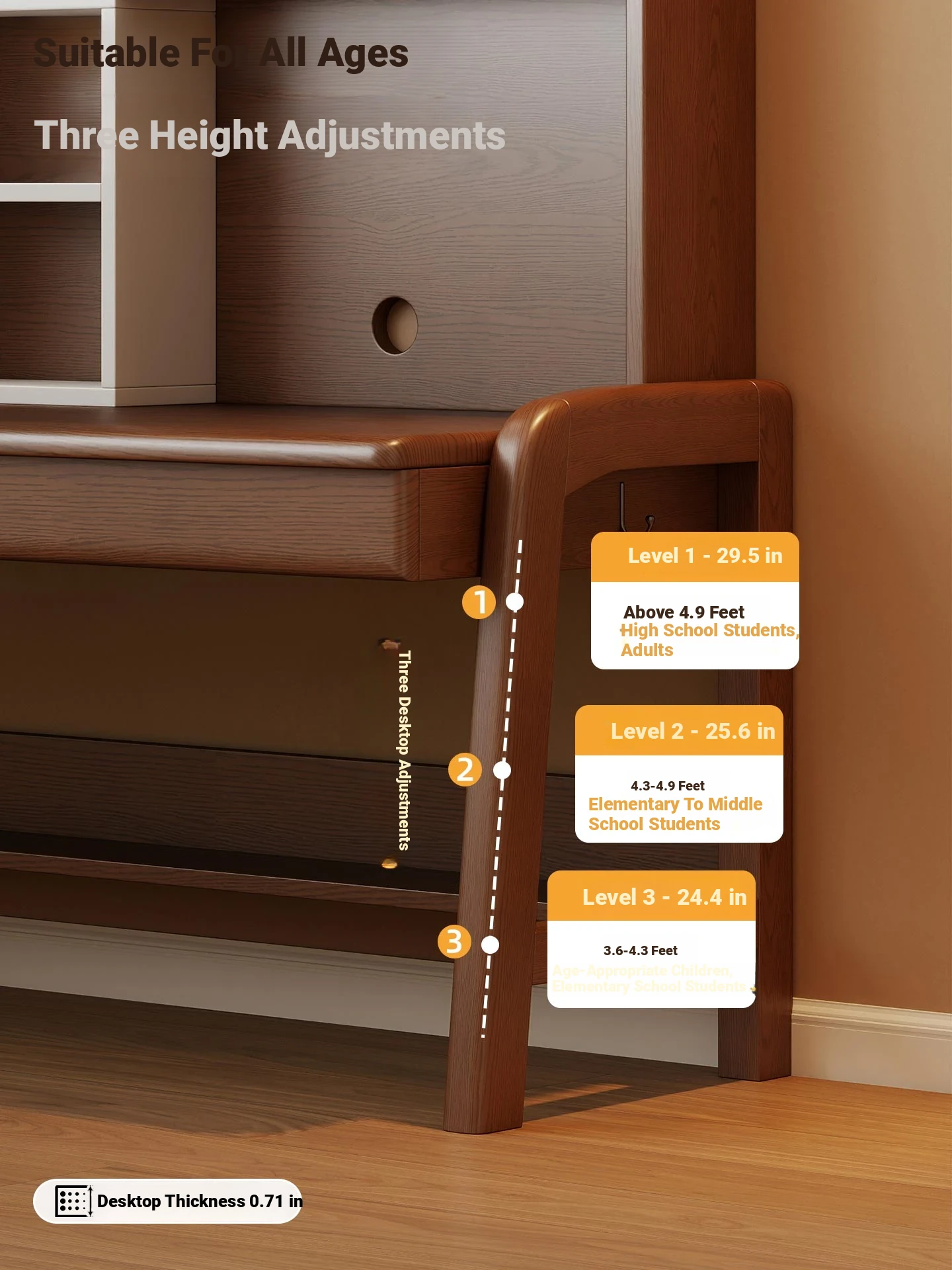 Solid Wood Dual-Purpose Desk and Bookshelf Combo - Adjustable Height Computer Desk for Office and Home Use, Perfect for Living Room Study and Writing with Matching Chair Set