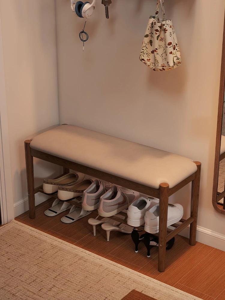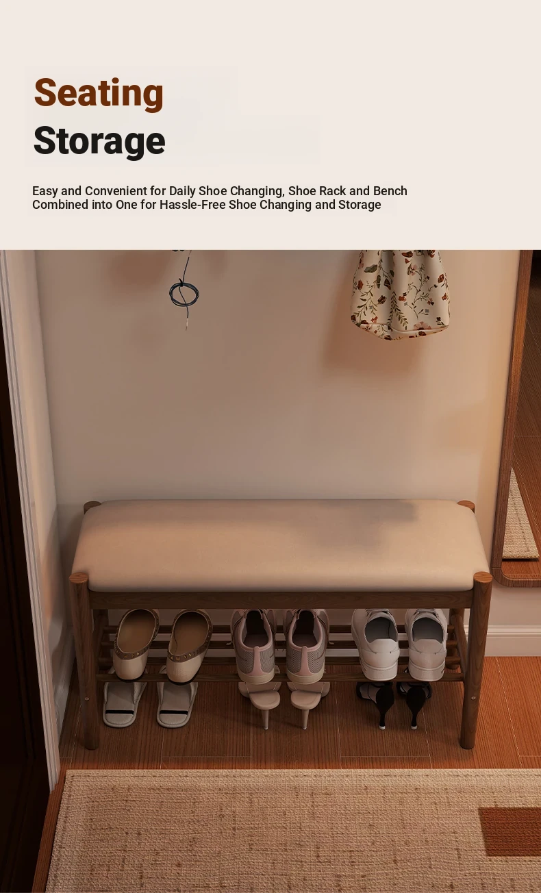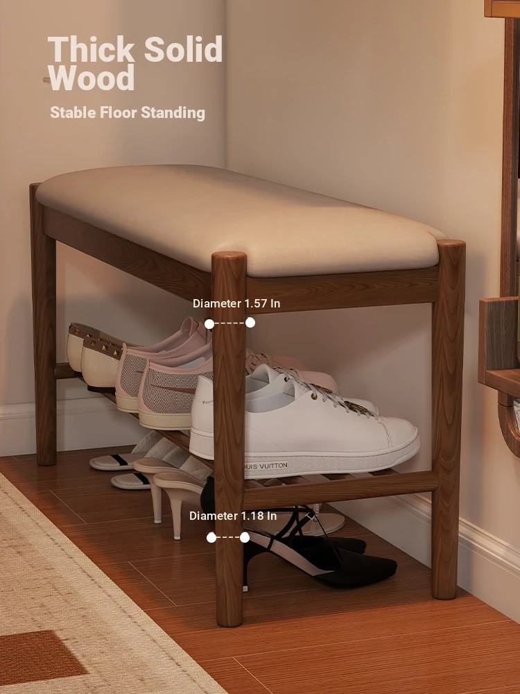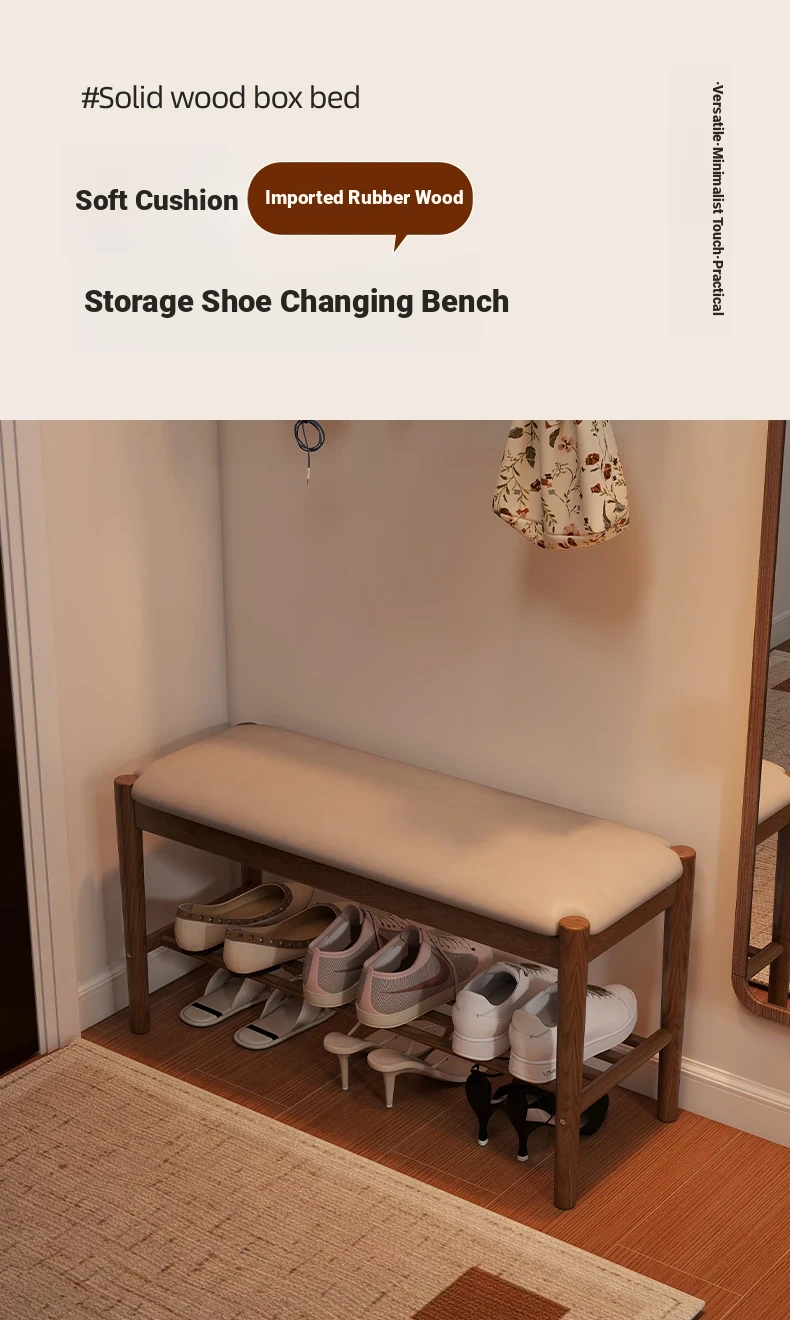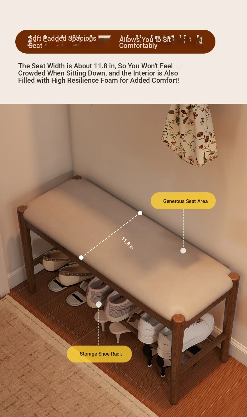 Solid Wood Entryway Shoe Bench - Multi-functional Long Bench with Soft Cushion, Perfect for Home Use as a Shoe Rack and Storage Solution at Your Doorstep.