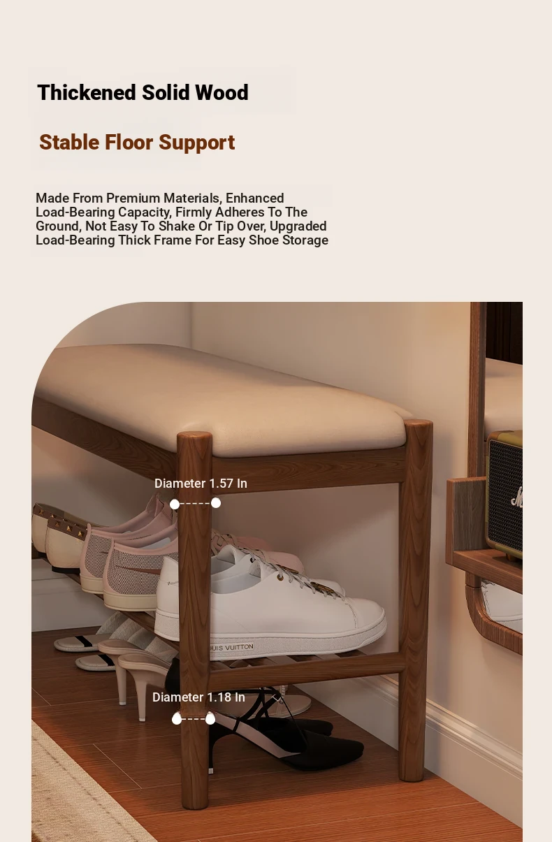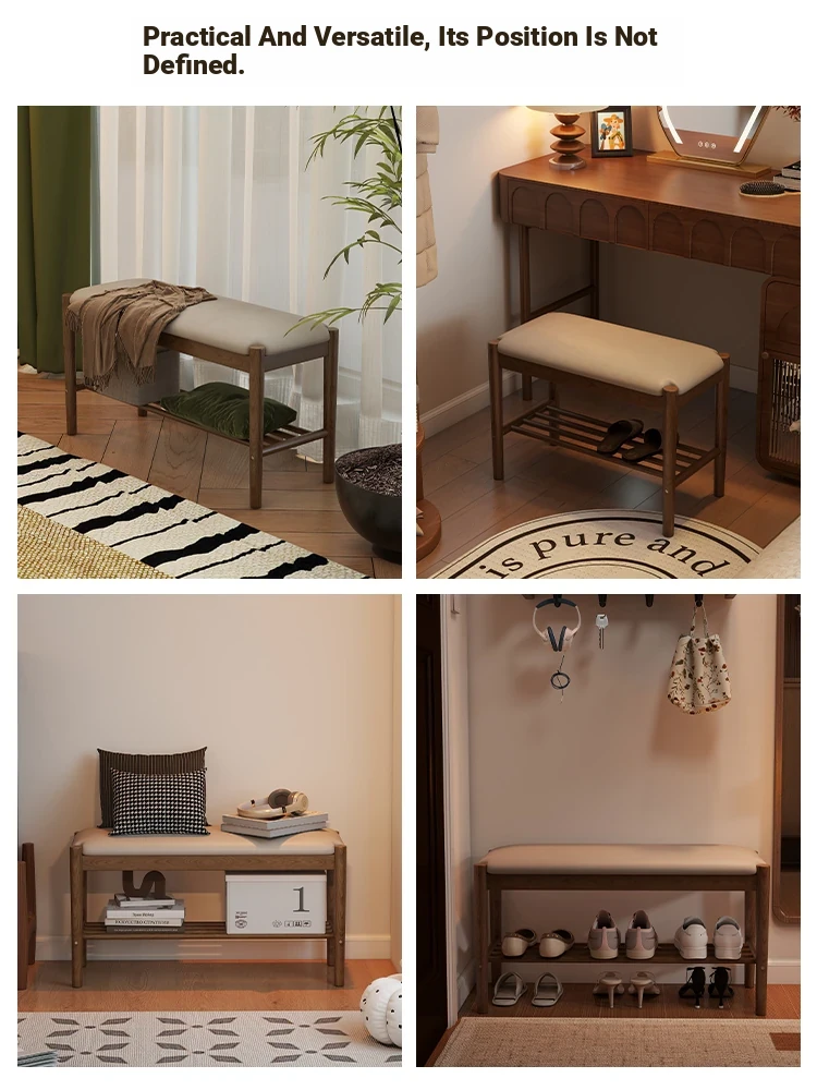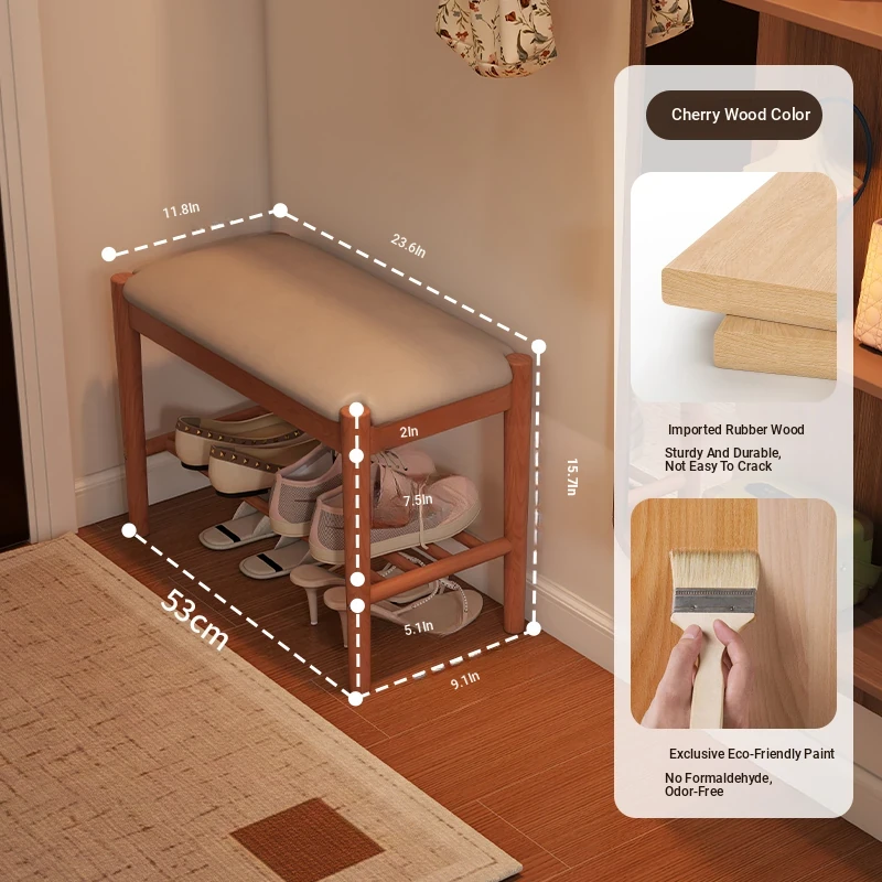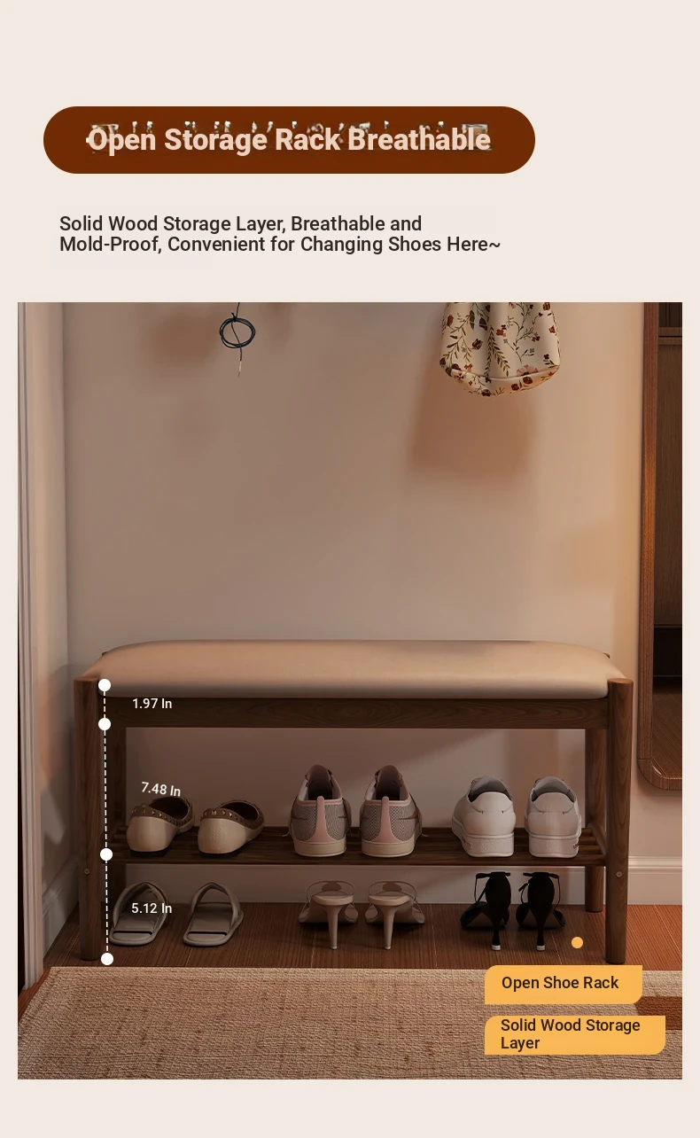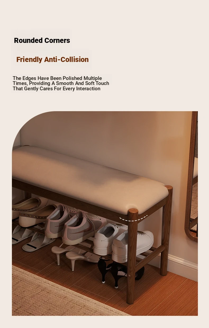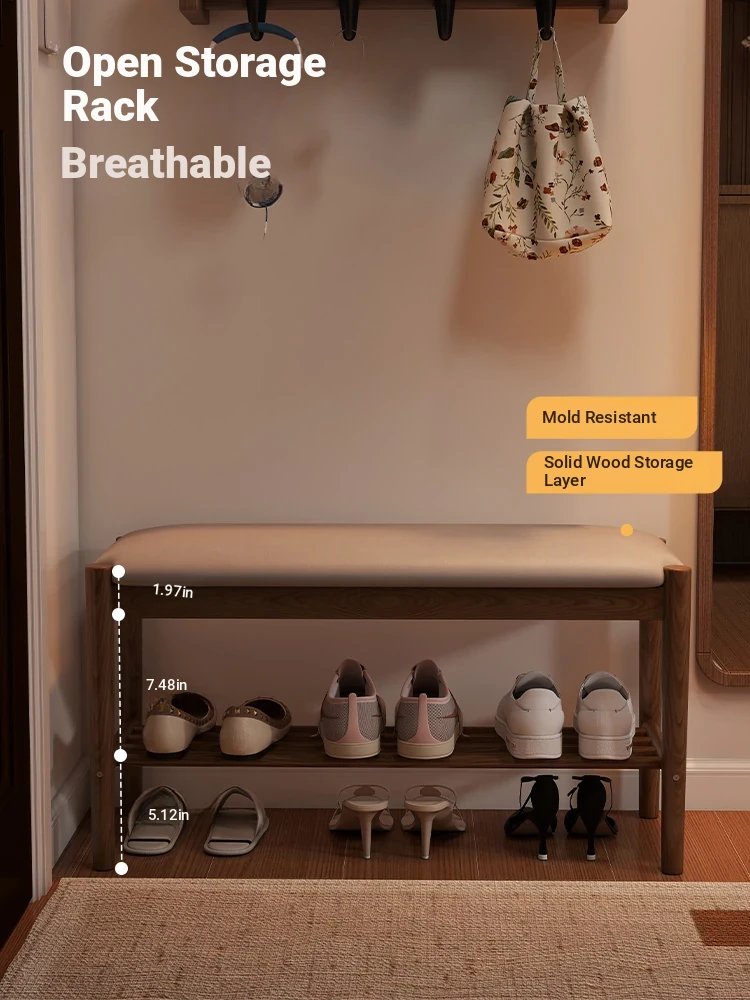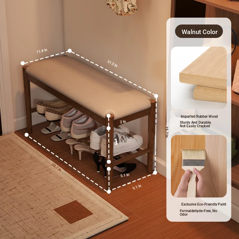 Solid Wood Entryway Shoe Bench - Multi-functional Long Bench with Soft Cushion, Perfect for Home Use as a Shoe Rack and Storage Solution at Your Doorstep.