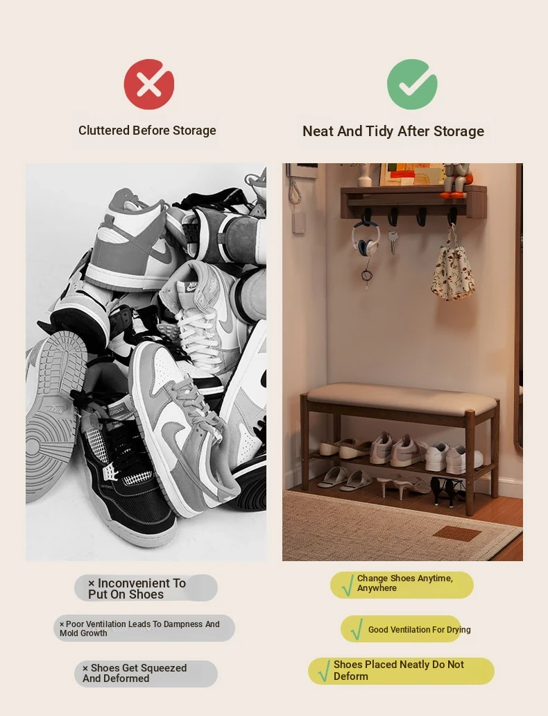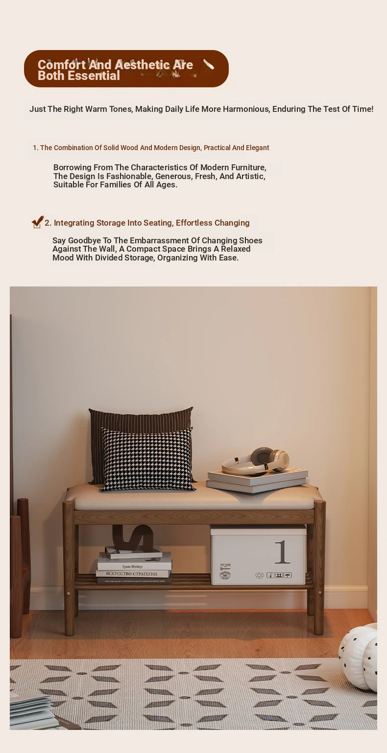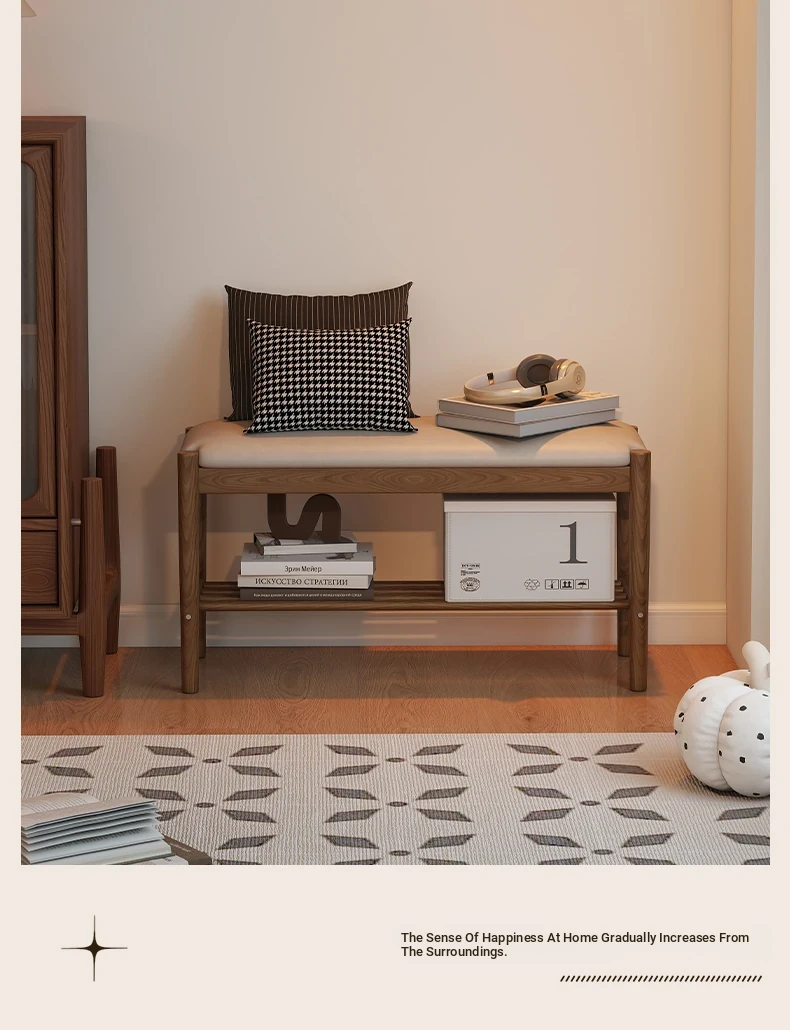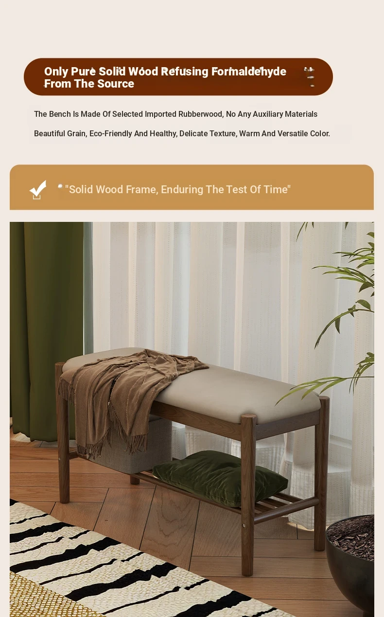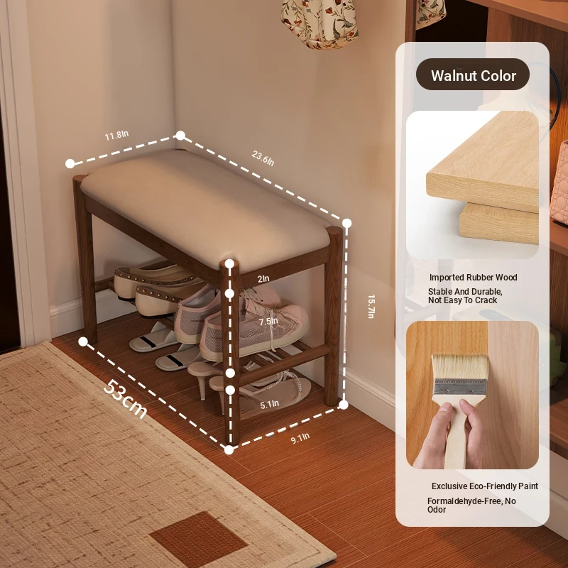Solid Wood Entryway Shoe Bench - Multi-functional Long Bench with Soft Cushion, Perfect for Home Use as a Shoe Rack and Storage Solution at Your Doorstep.