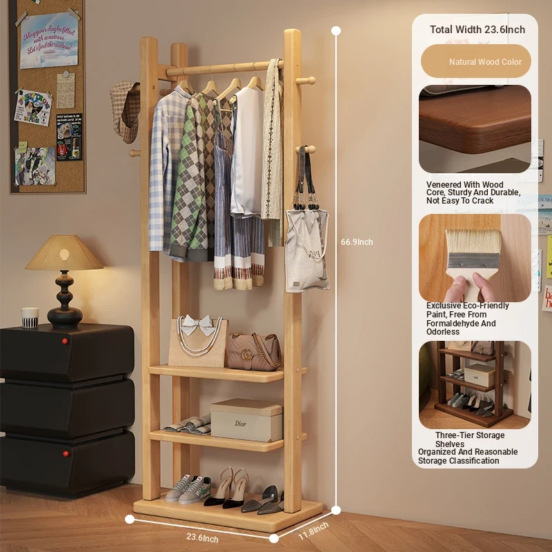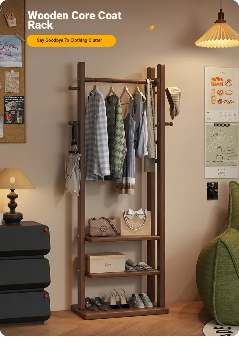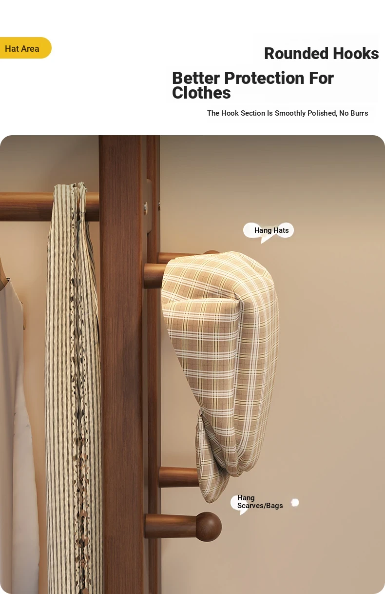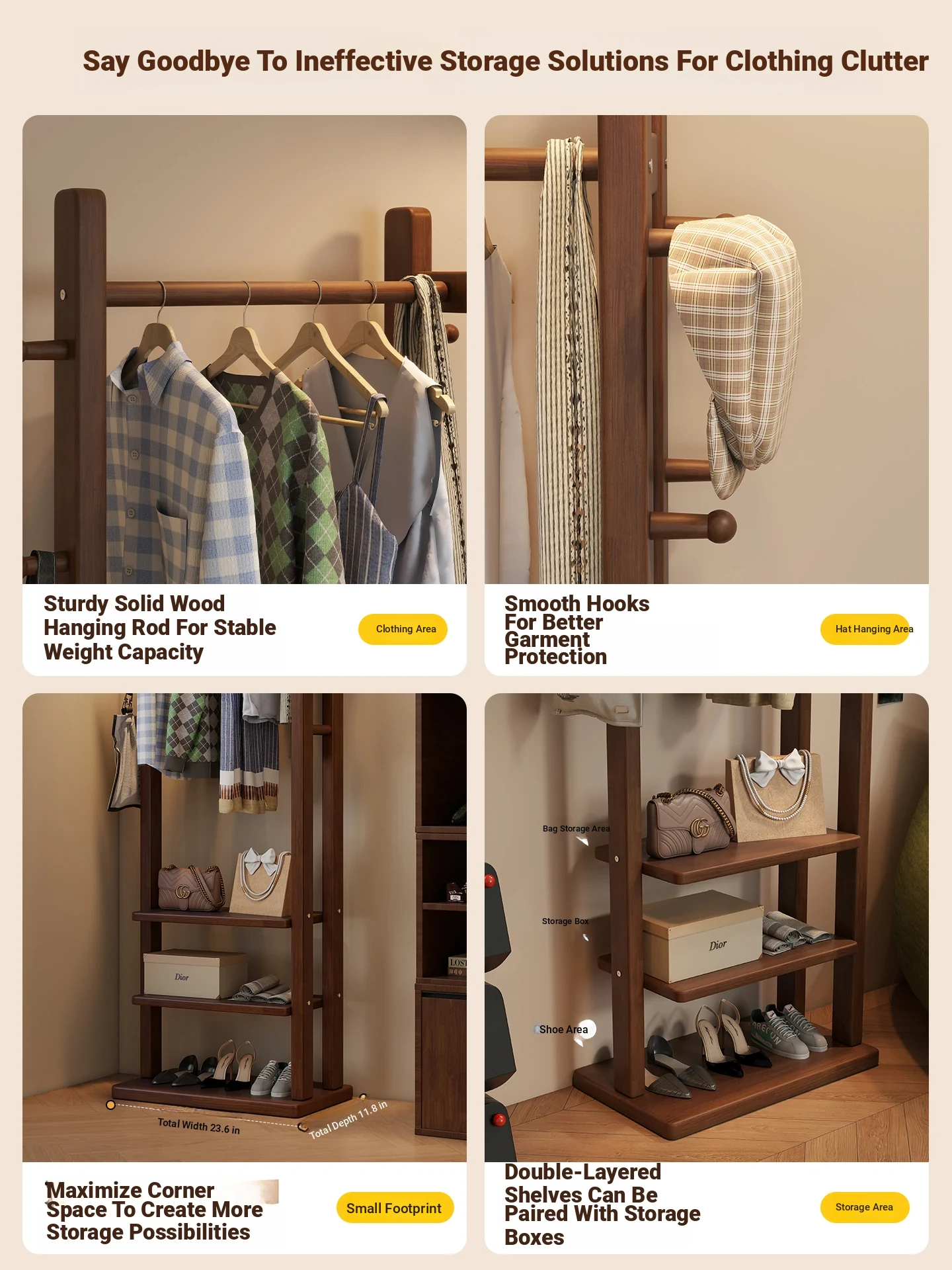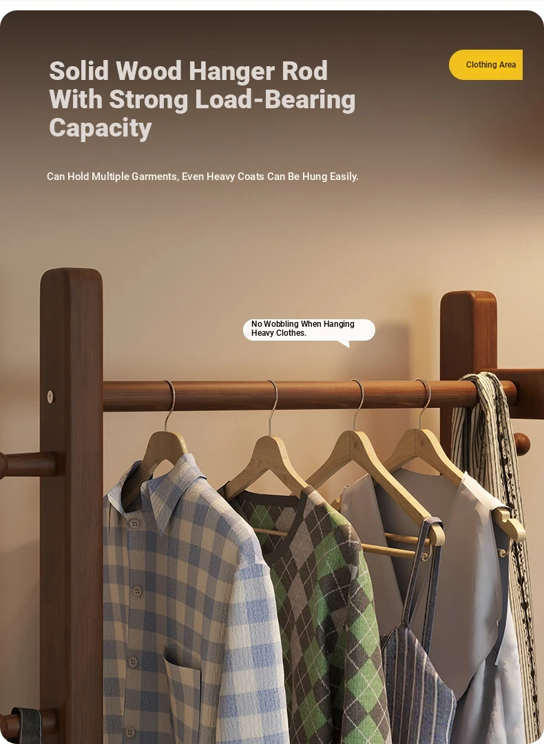 Solid Wood Freestanding Coat Rack - Stylish and Functional Clothes Storage Solution for Bedroom and Living Room - Easy-to-Assemble Organizer for Coats, Hats, and Accessories