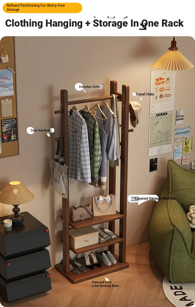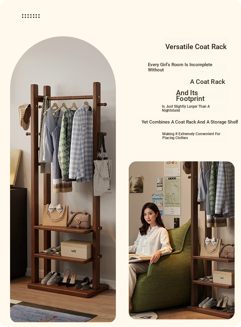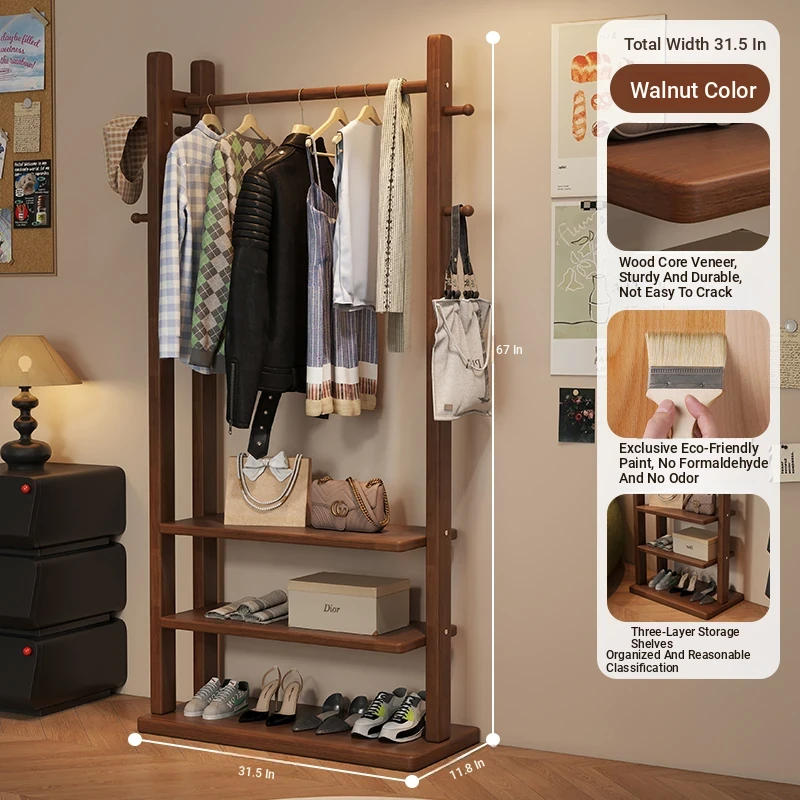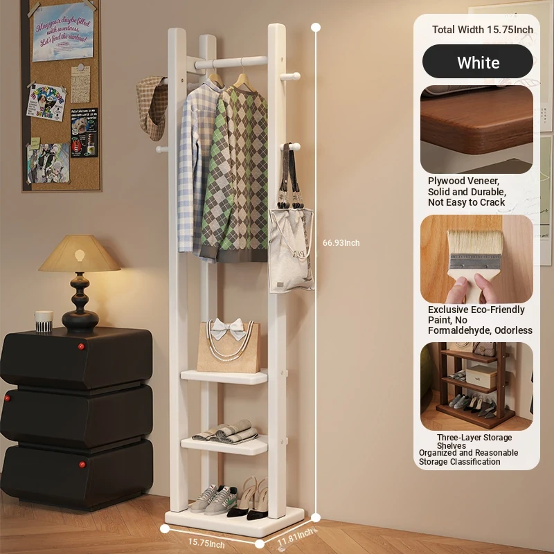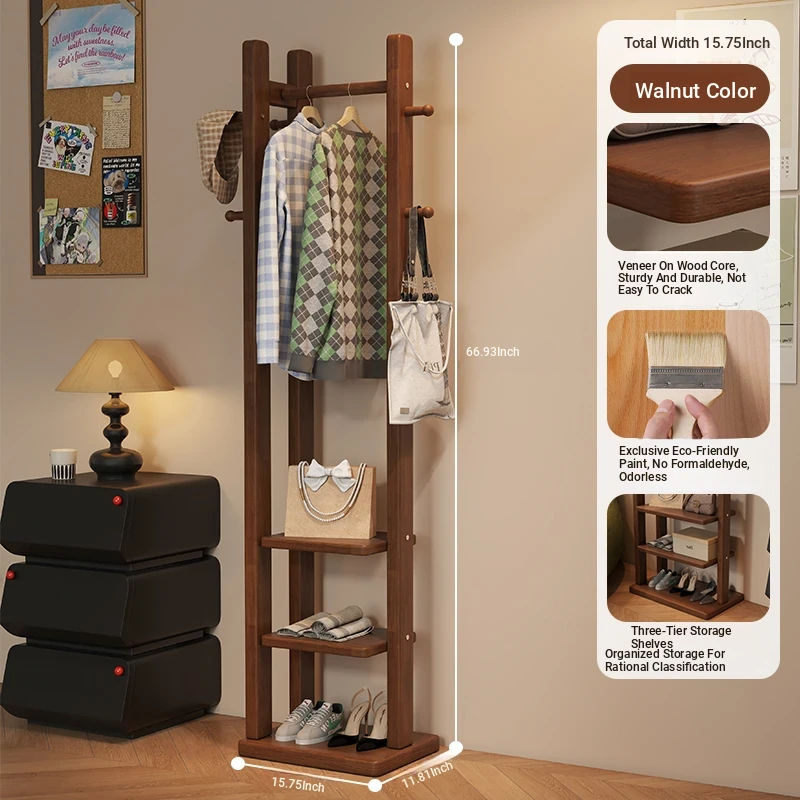 Solid Wood Freestanding Coat Rack - Stylish and Functional Clothes Storage Solution for Bedroom and Living Room - Easy-to-Assemble Organizer for Coats, Hats, and Accessories