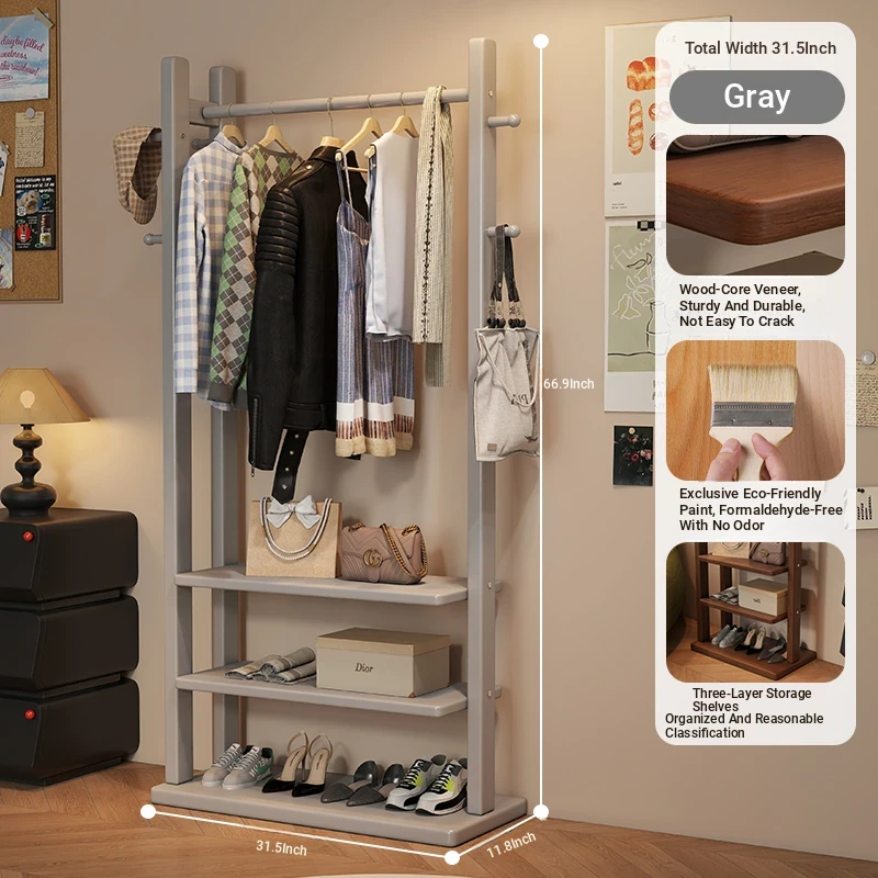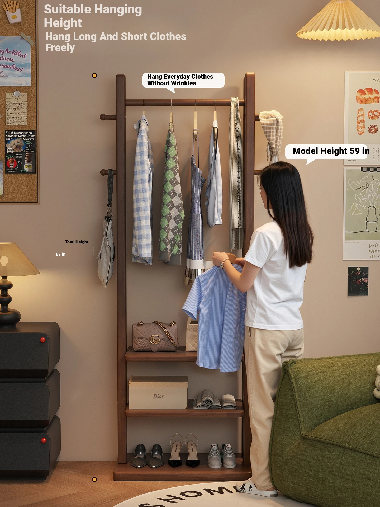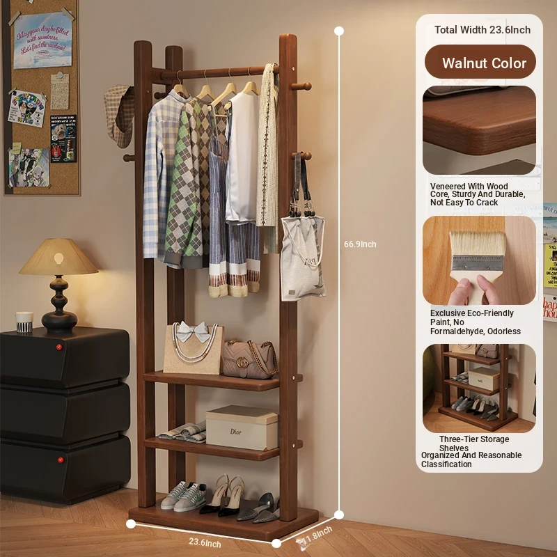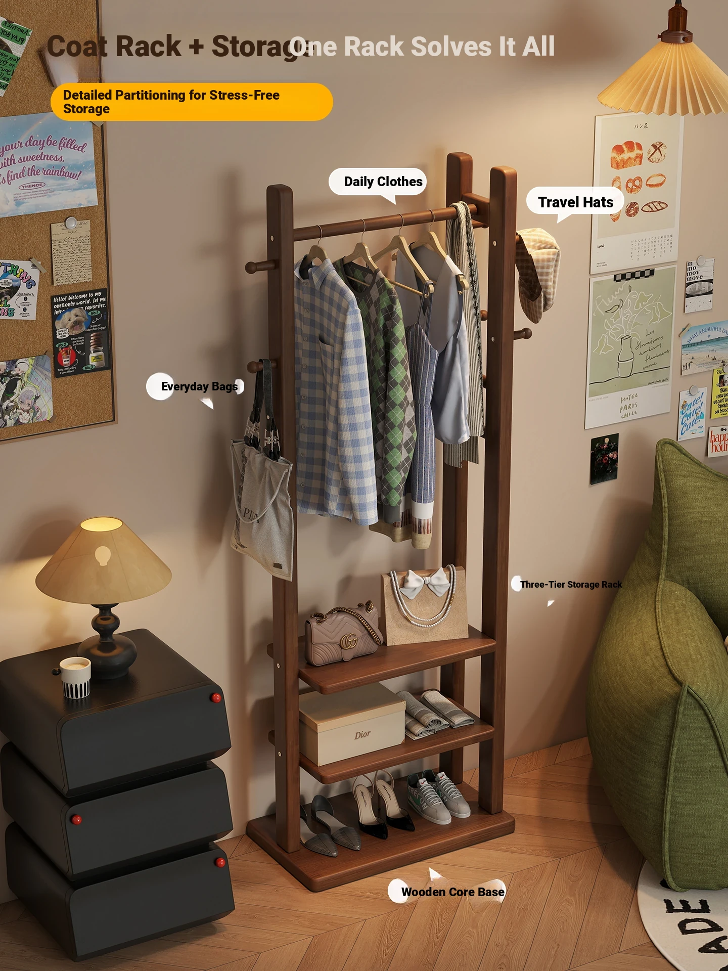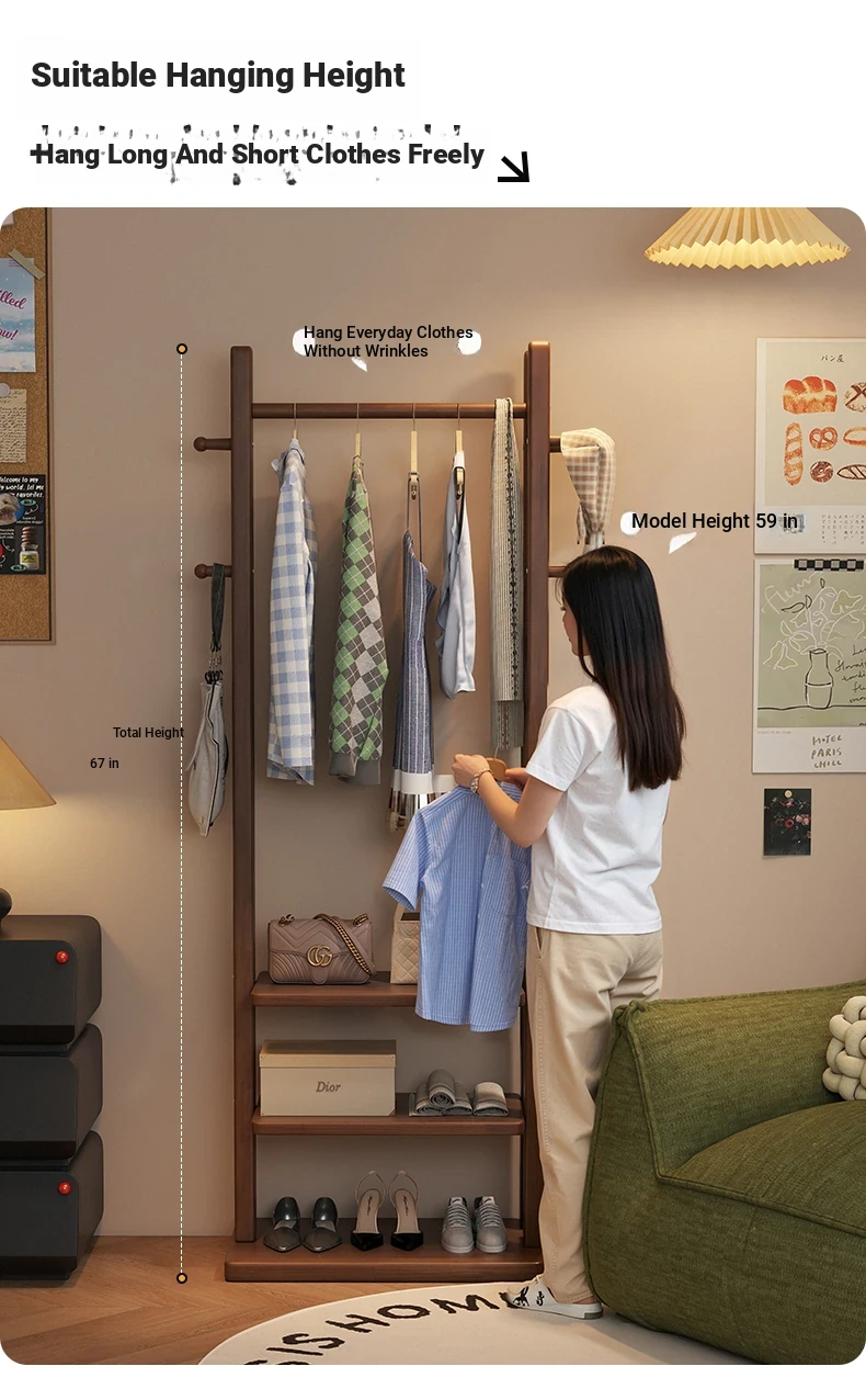 Solid Wood Freestanding Coat Rack - Stylish and Functional Clothes Storage Solution for Bedroom and Living Room - Easy-to-Assemble Organizer for Coats, Hats, and Accessories