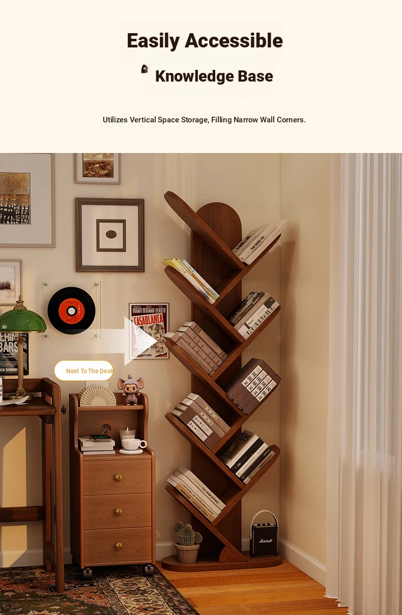 Solid Wood Multi-Layer Bookshelf - Freestanding Storage Rack for Living Room, Corner Space Saver, Ideal for Home Use, Kids' Small Bookcase, Stylish and Functional Design