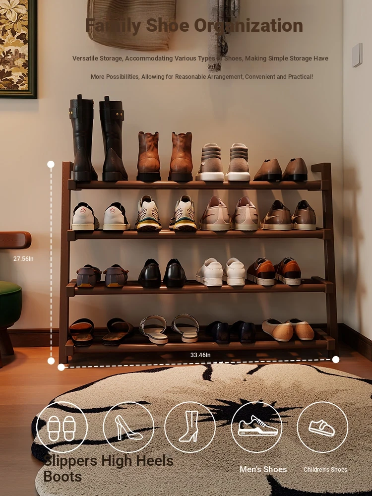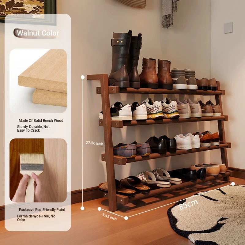 Solid Wood Shoe Rack-Walnut Color [33.46in]