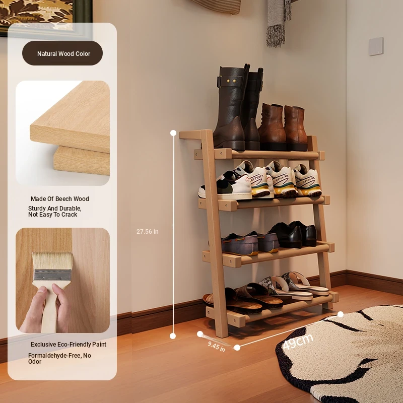 Solid Wood Shoe Rack-Raw Wood Color [27.17in]