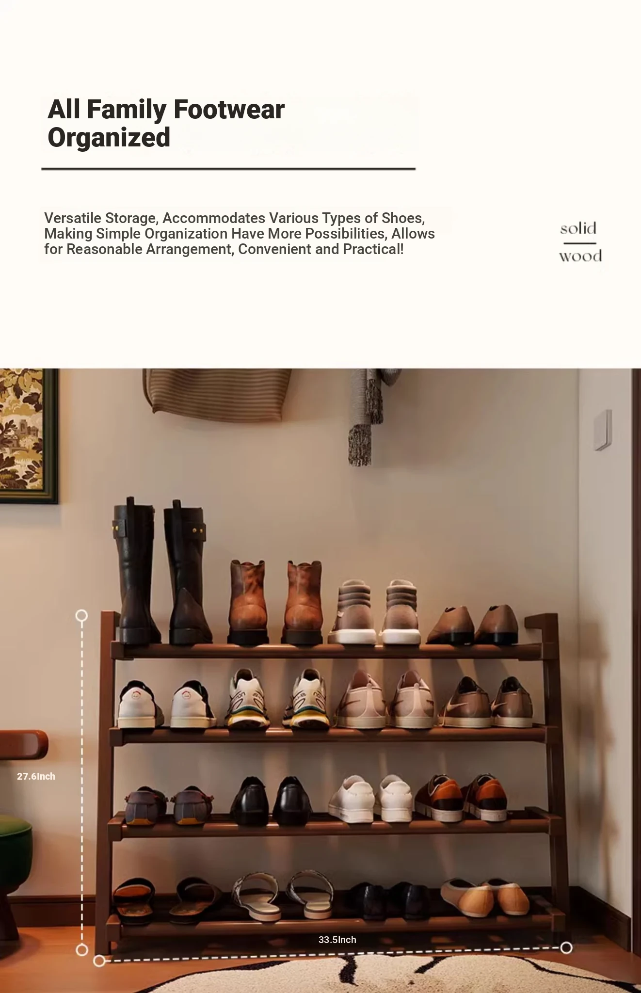Solid Wood Shoe Rack-Raw Wood Color [33.46in]