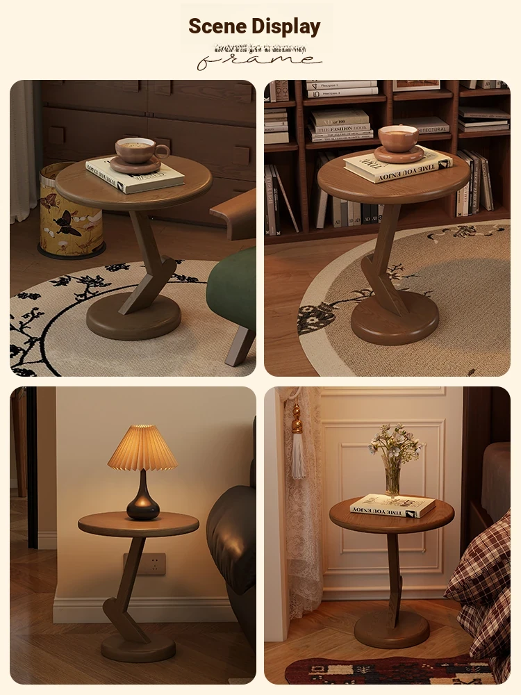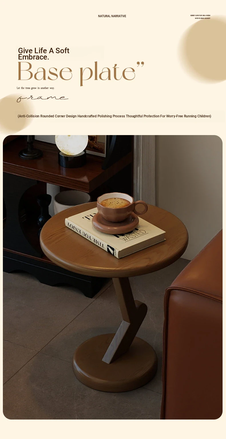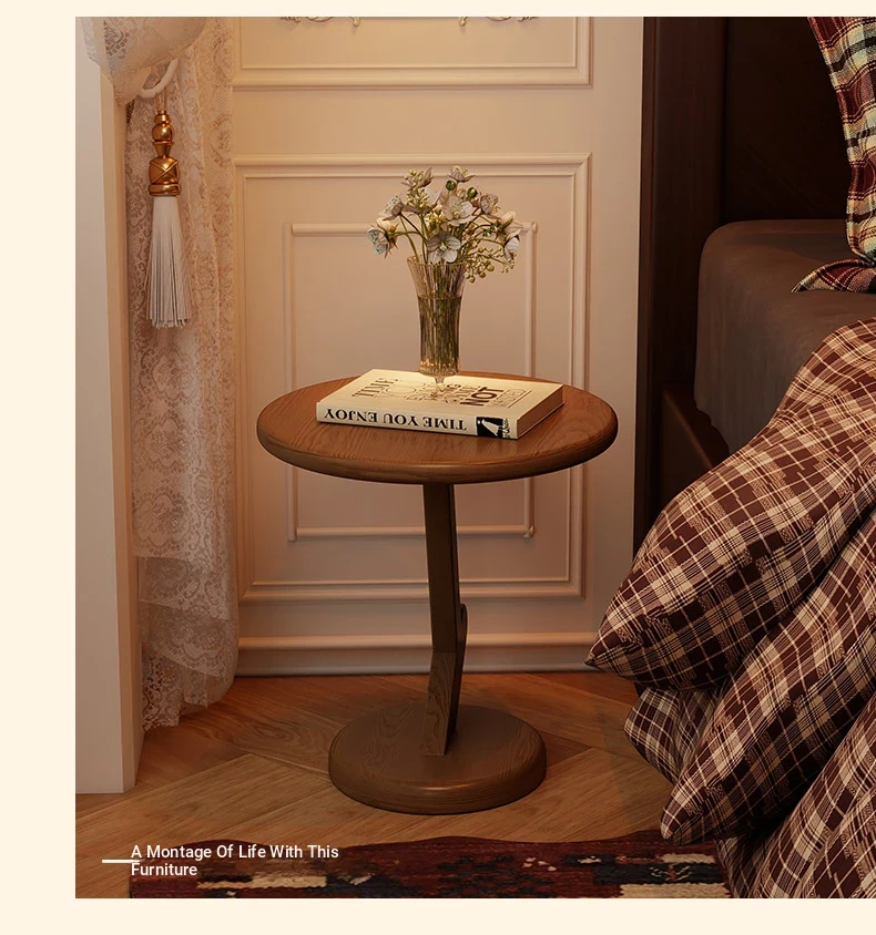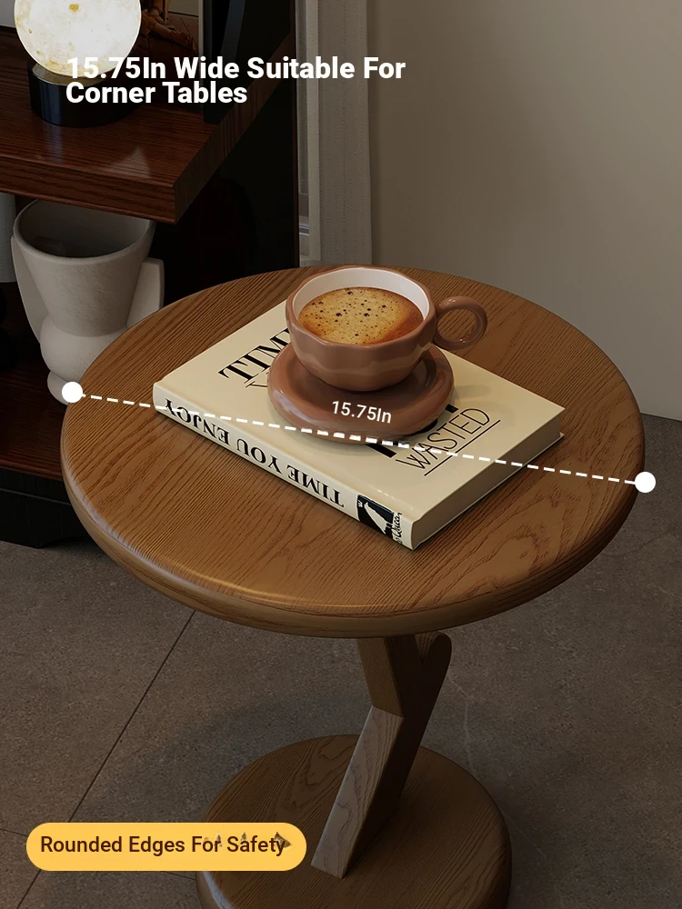 Solid Wood Side Table for Small Living Rooms and Balconies - Creative Round Coffee Table, Ideal for Compact Spaces and Cozy Corners