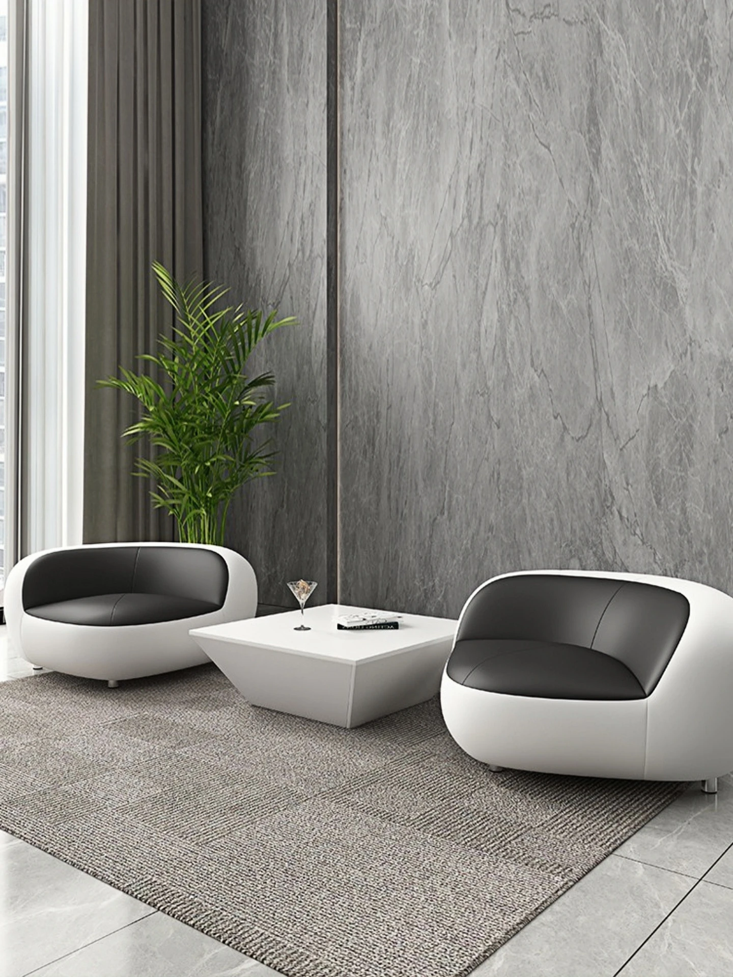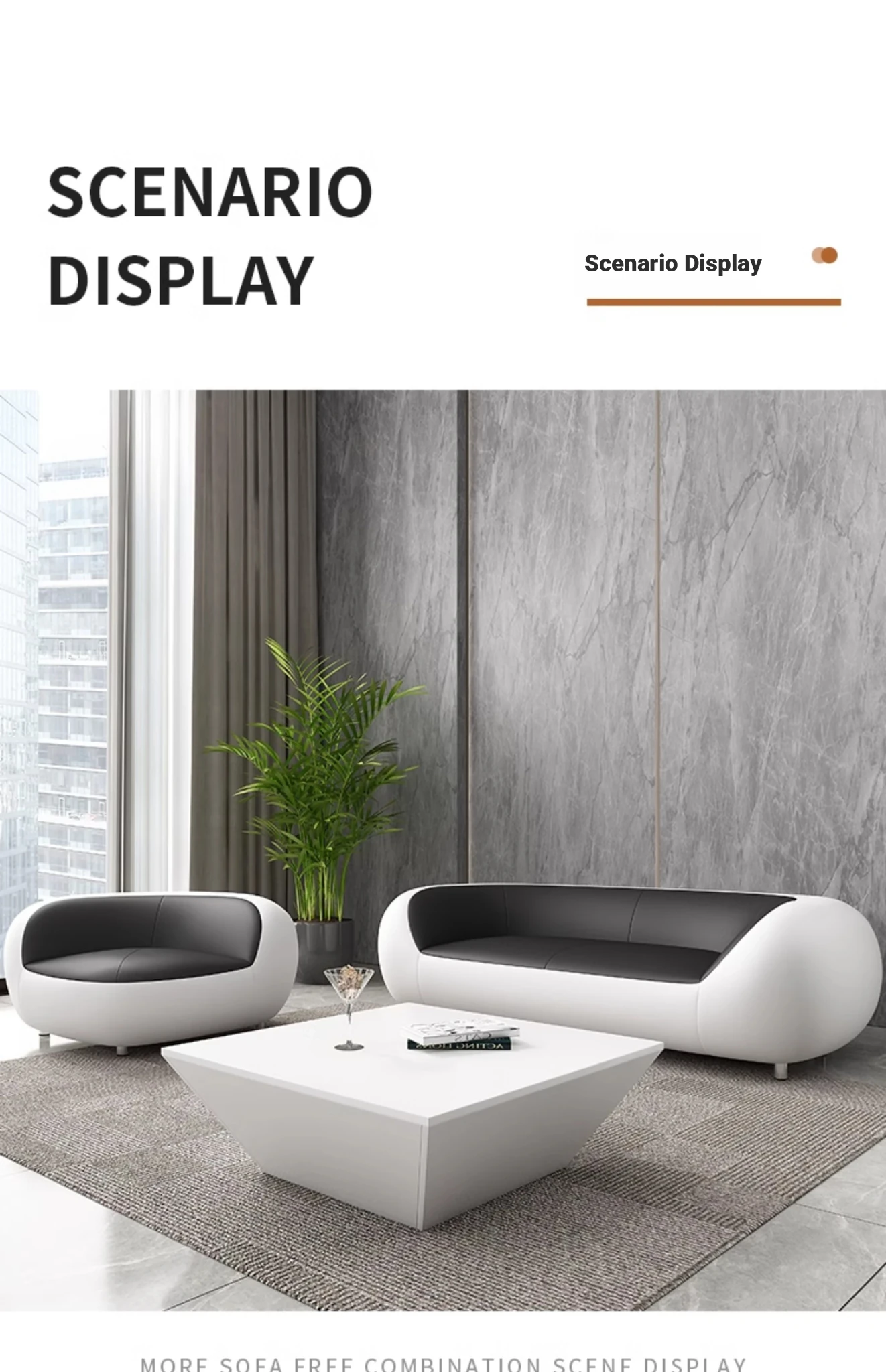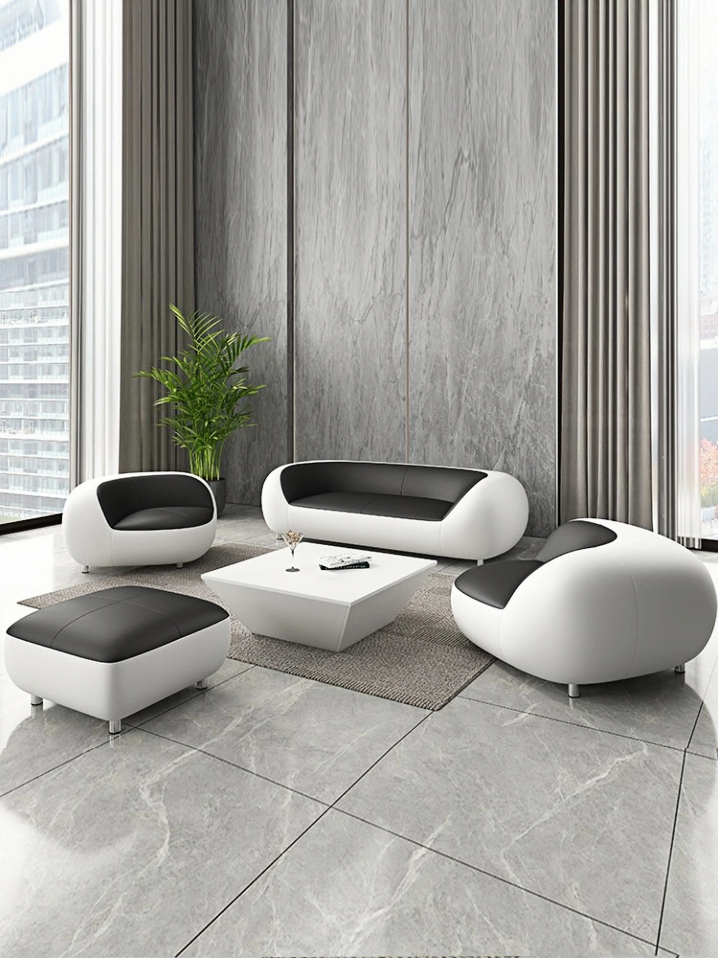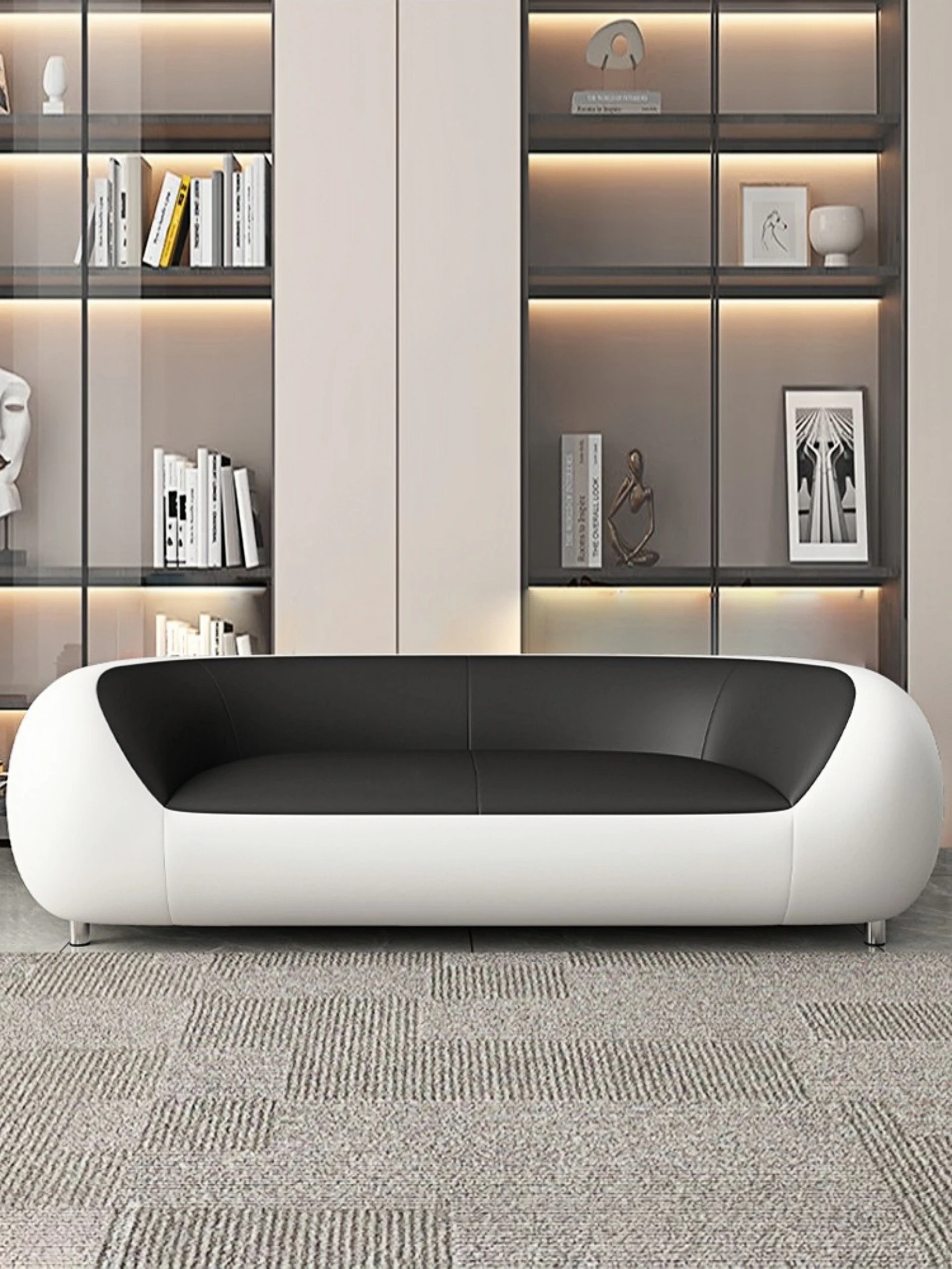 Stylish Modular Sofa - Creative Design for Office Reception & Relaxation, Modern Minimalist 3-Seater Leather Couch