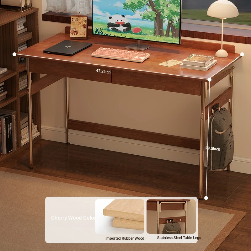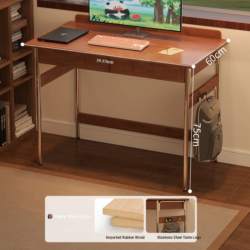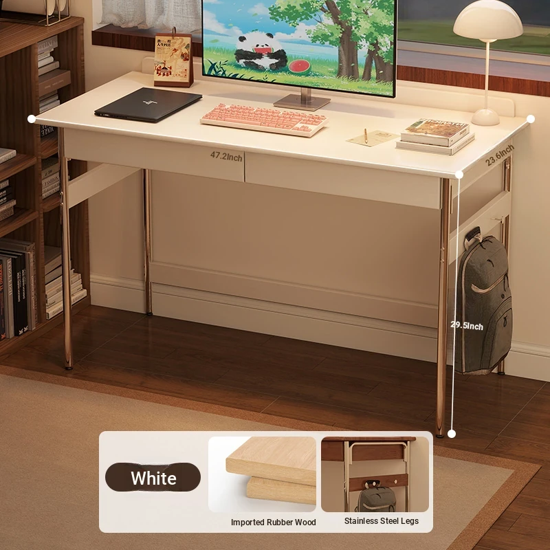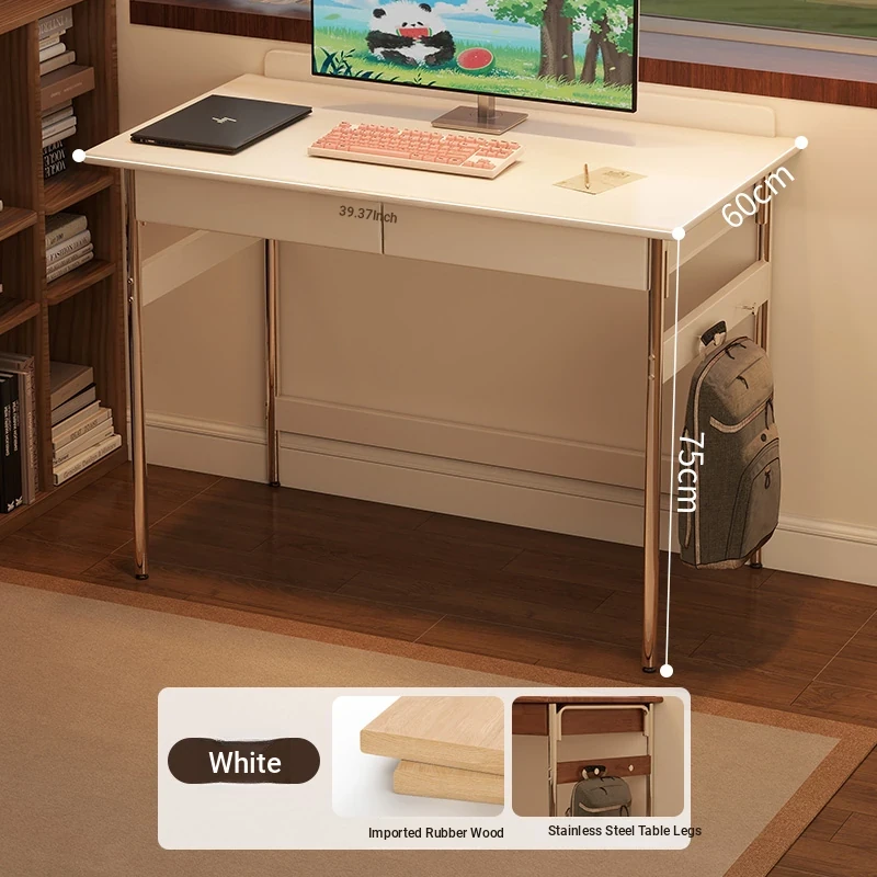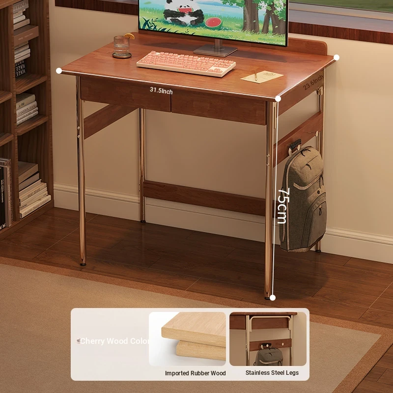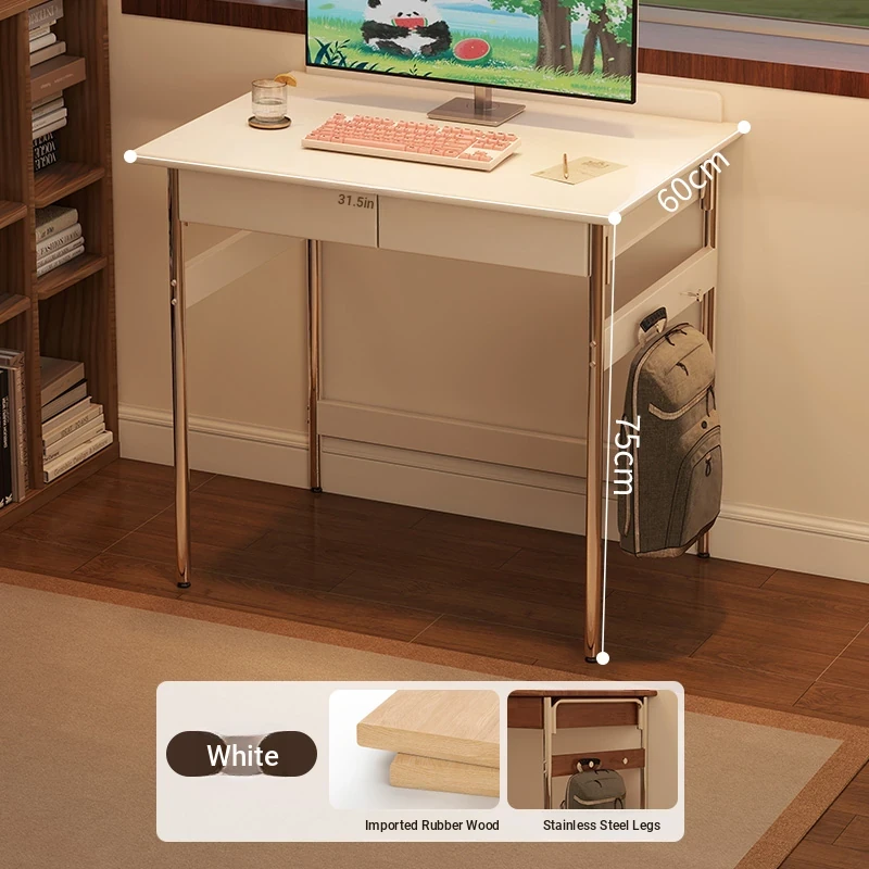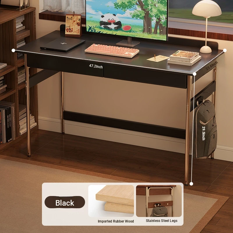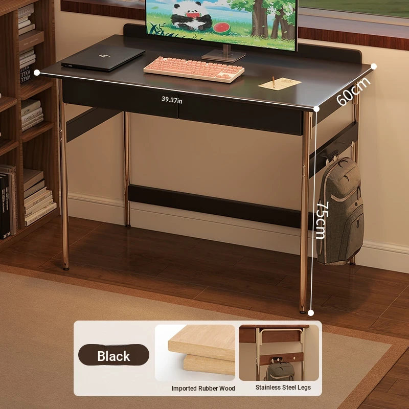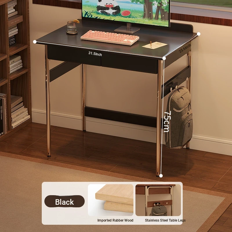 Stylish Solid Wood Computer Desk - Rectangular Stainless Steel Office & Study Table for Bedroom - Space-Saving Narrow Writing Desk