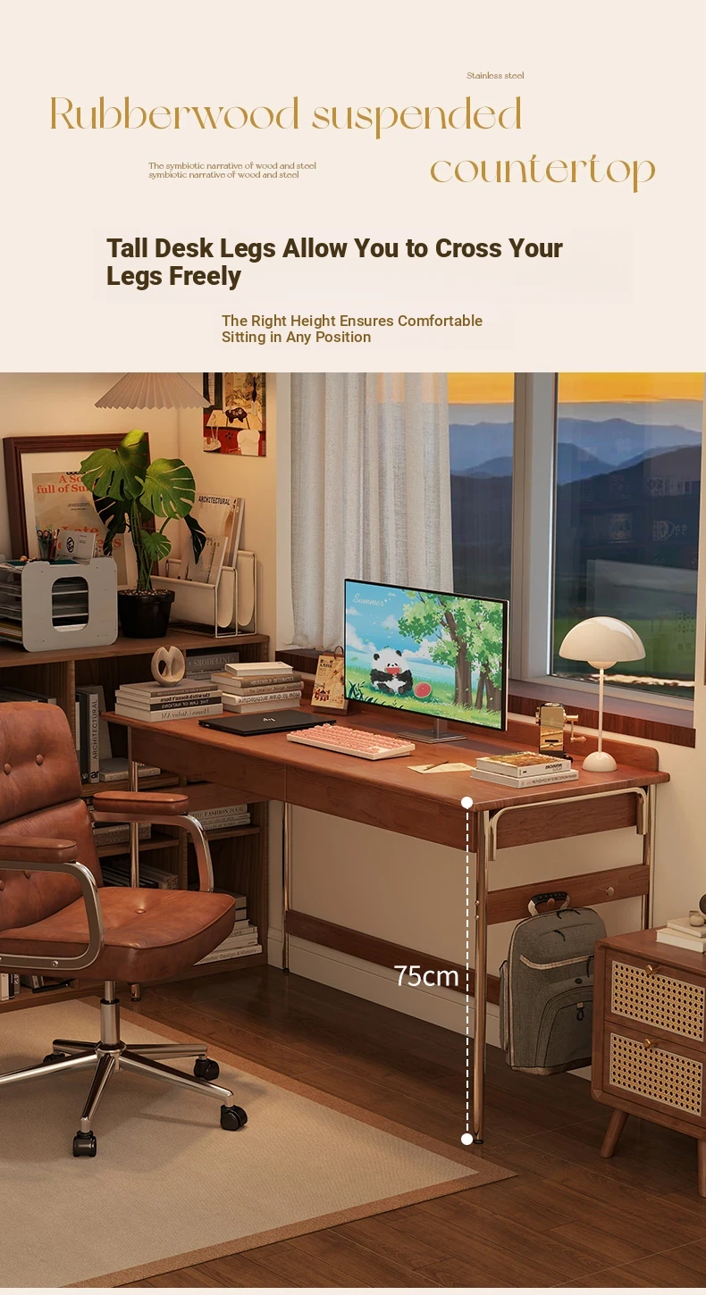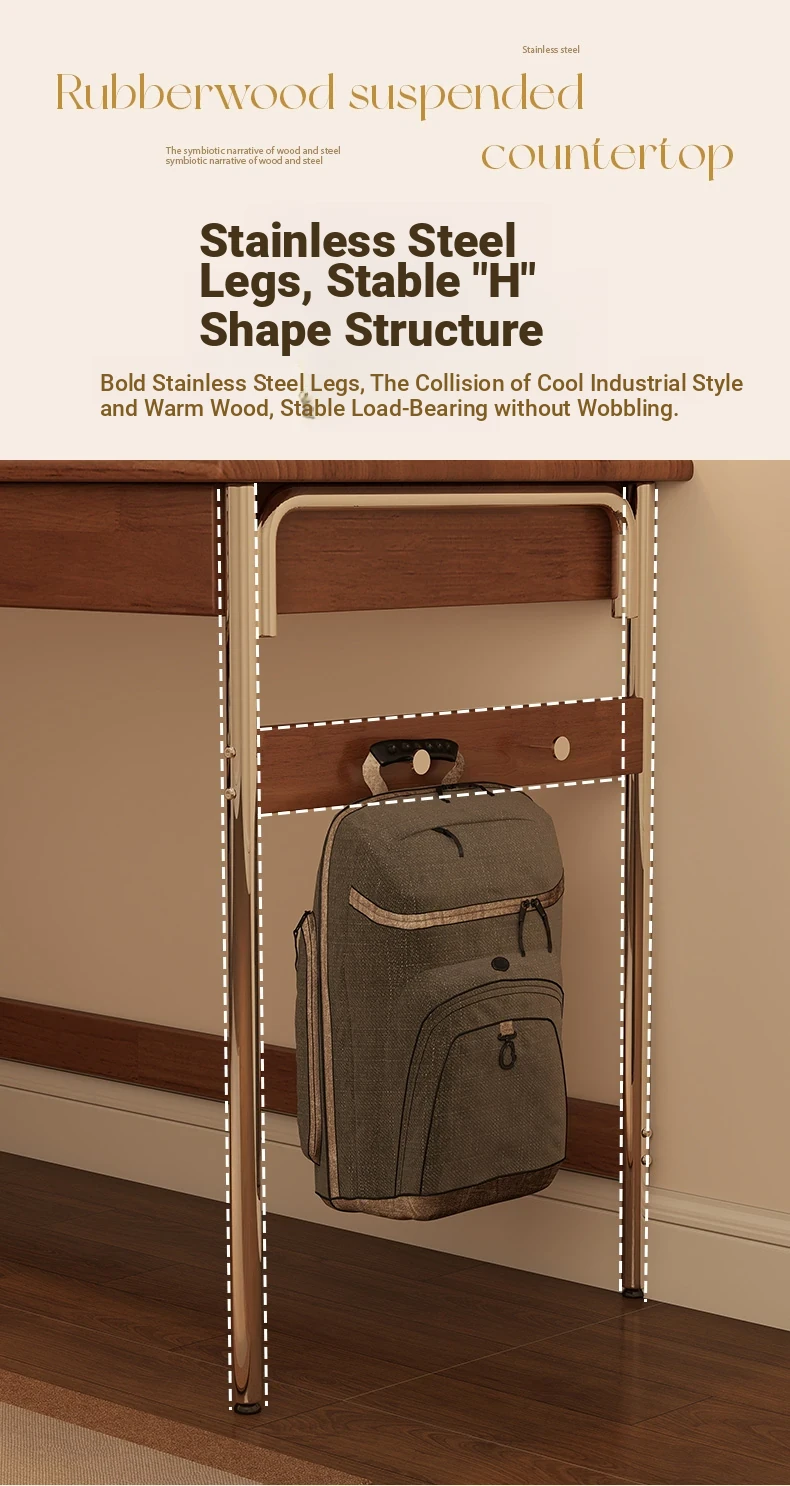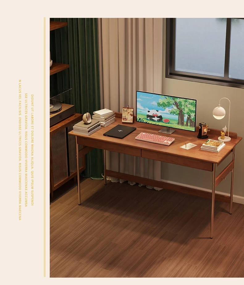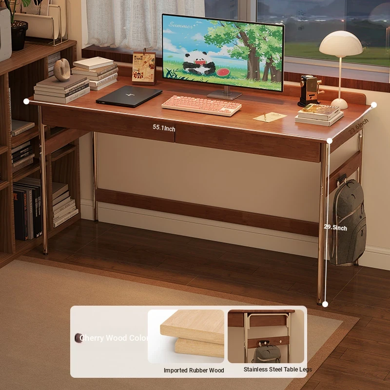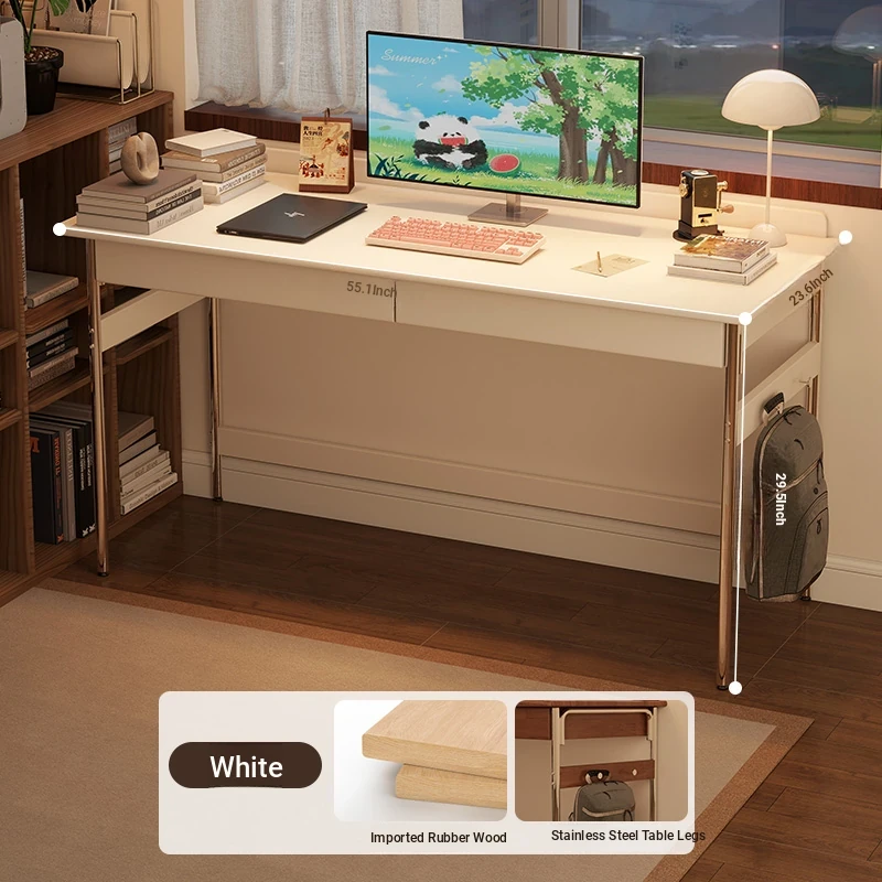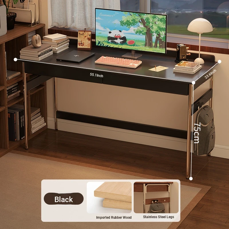 Stylish Solid Wood Computer Desk - Rectangular Stainless Steel Office & Study Table for Bedroom - Space-Saving Narrow Writing Desk