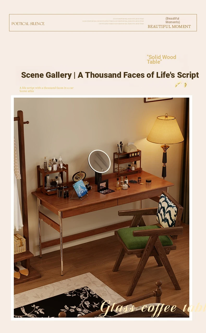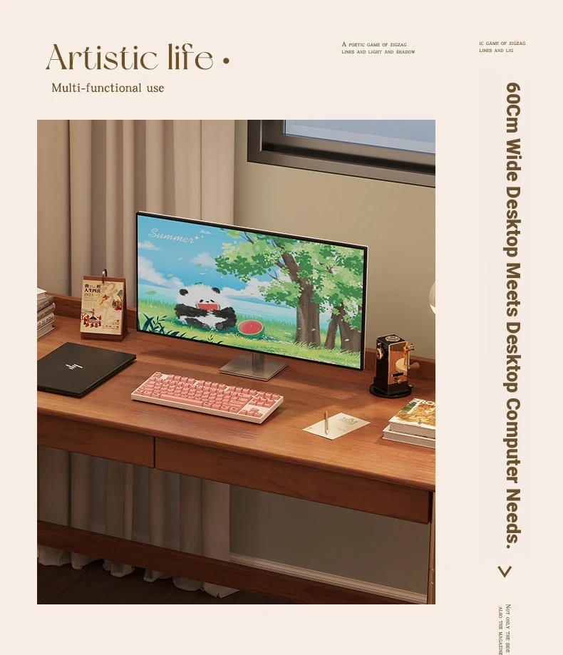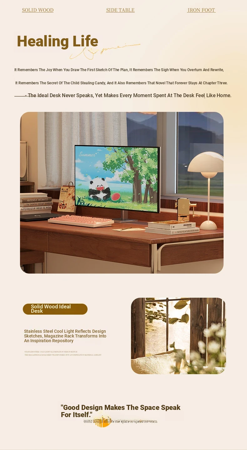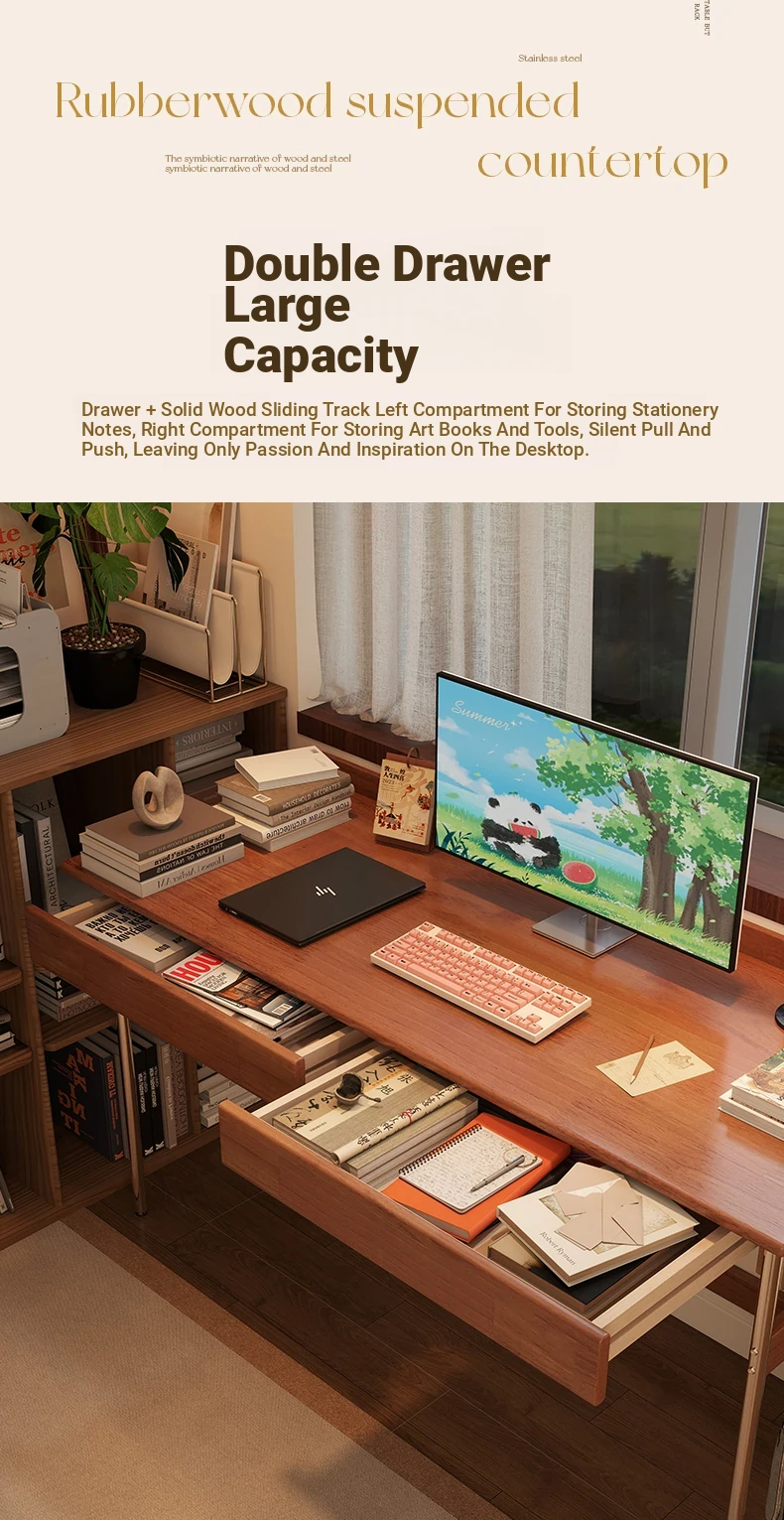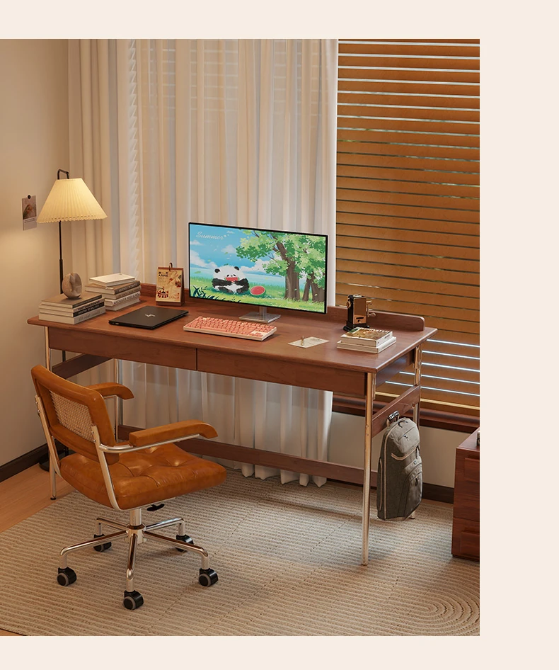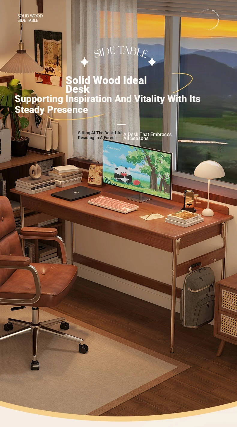 Stylish Solid Wood Computer Desk - Rectangular Stainless Steel Office & Study Table for Bedroom - Space-Saving Narrow Writing Desk