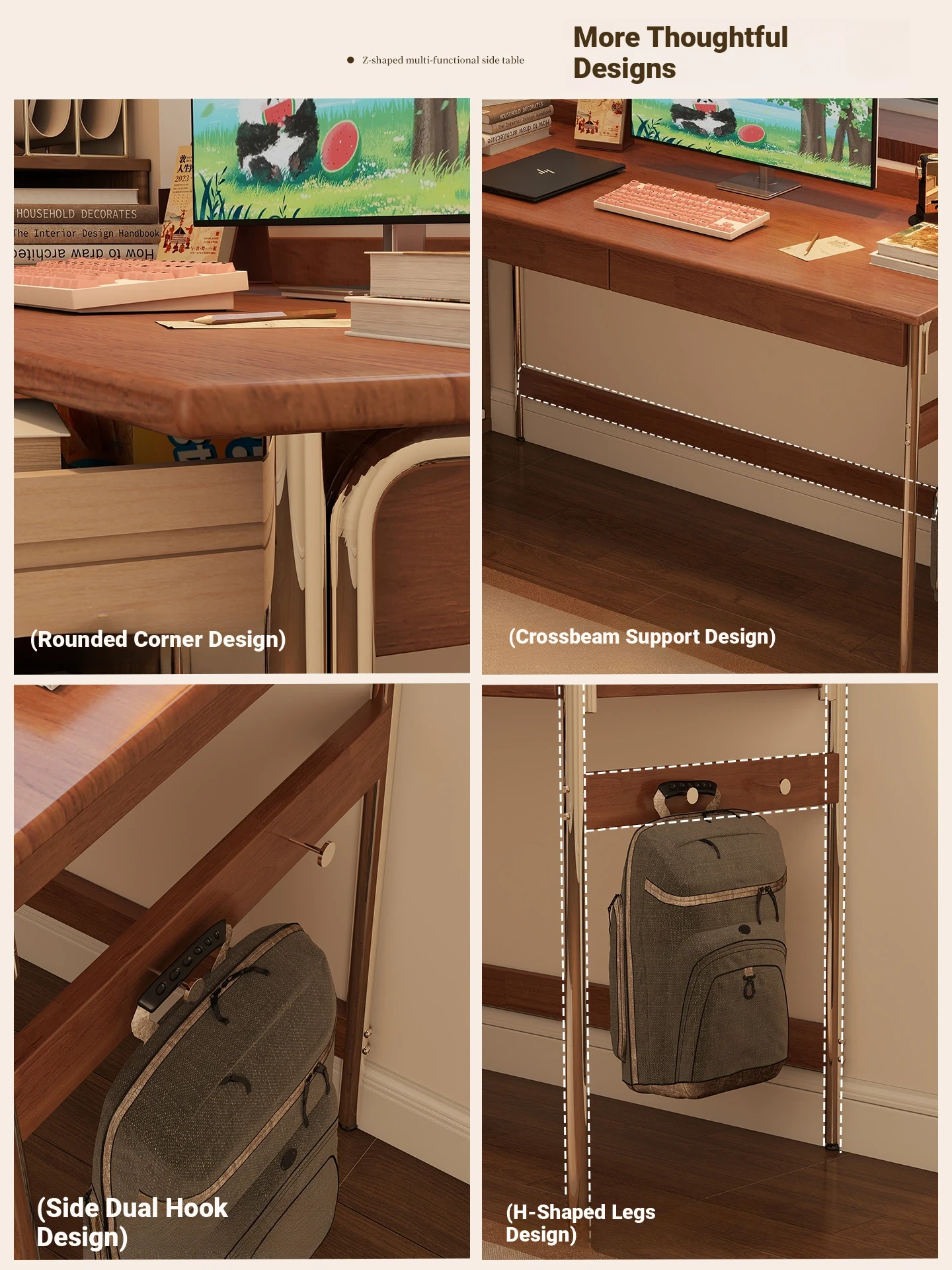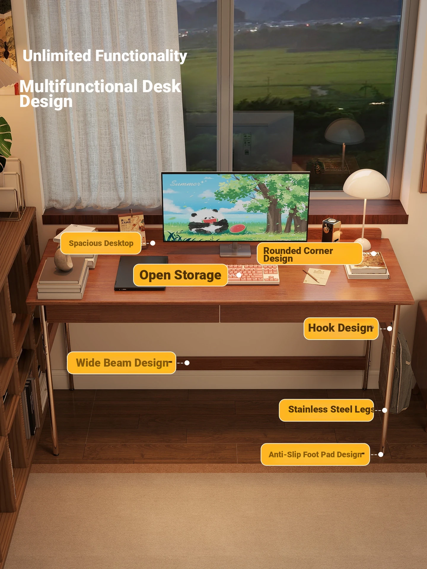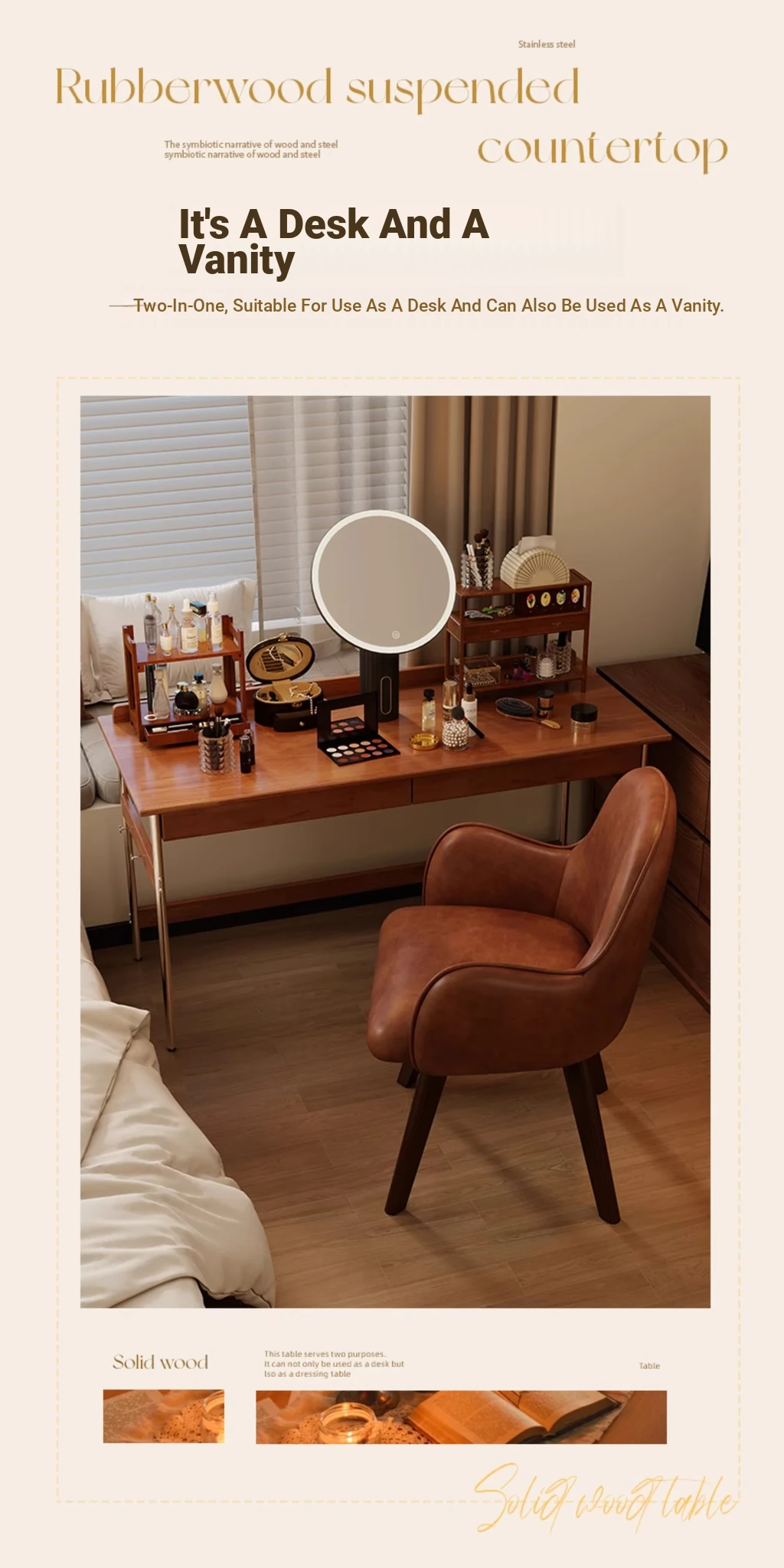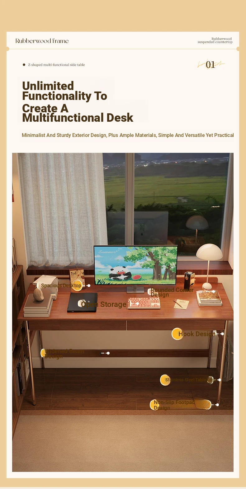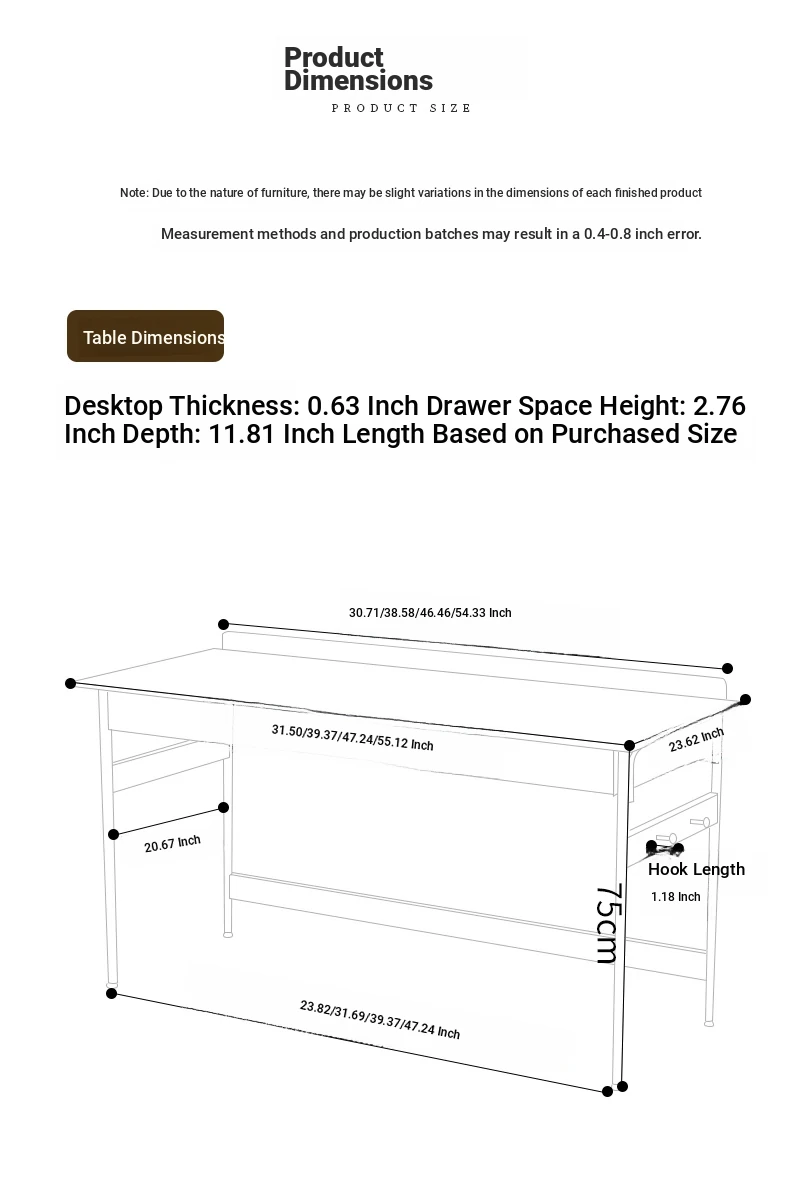 Stylish Solid Wood Computer Desk - Rectangular Stainless Steel Office & Study Table for Bedroom - Space-Saving Narrow Writing Desk