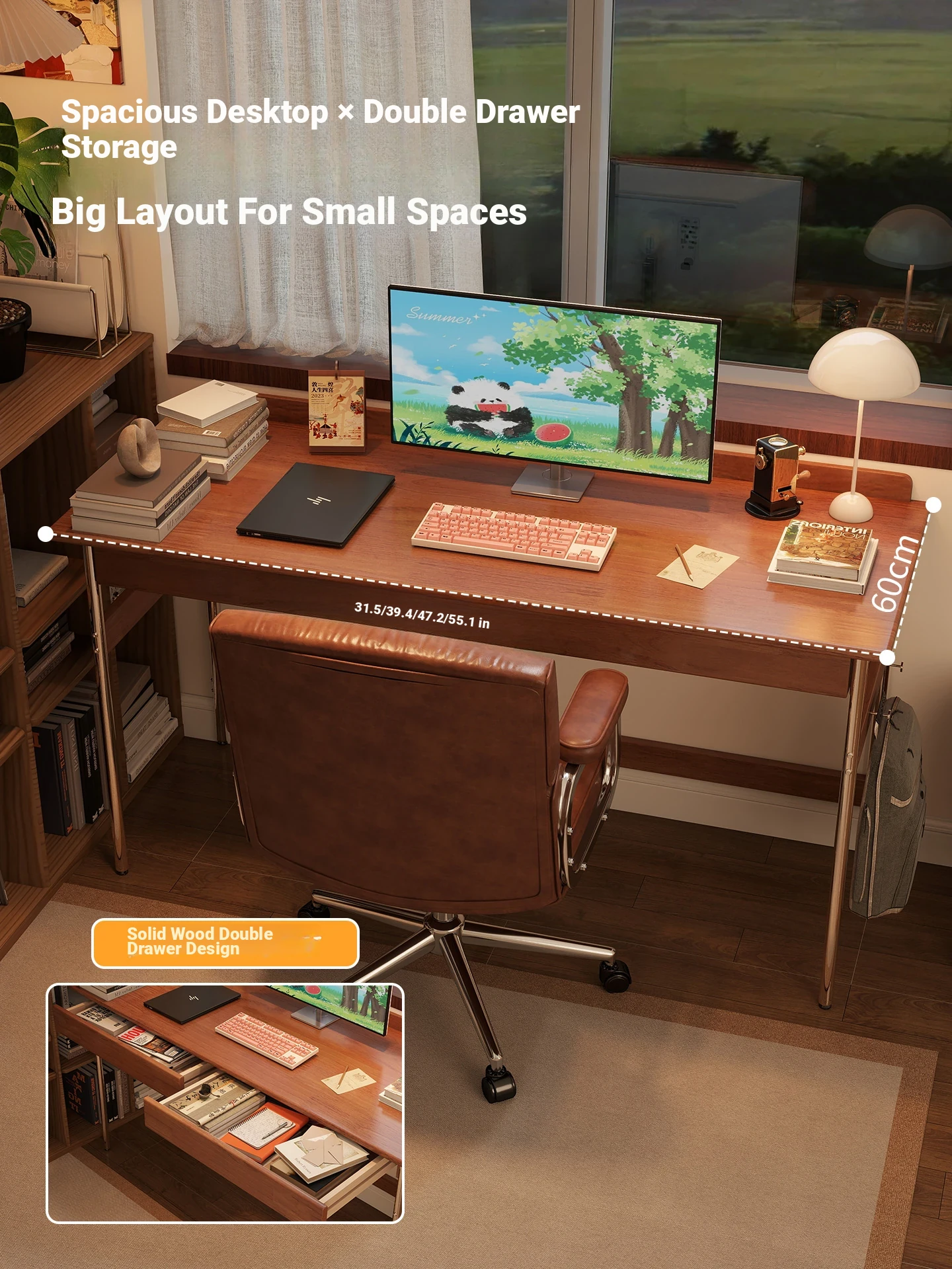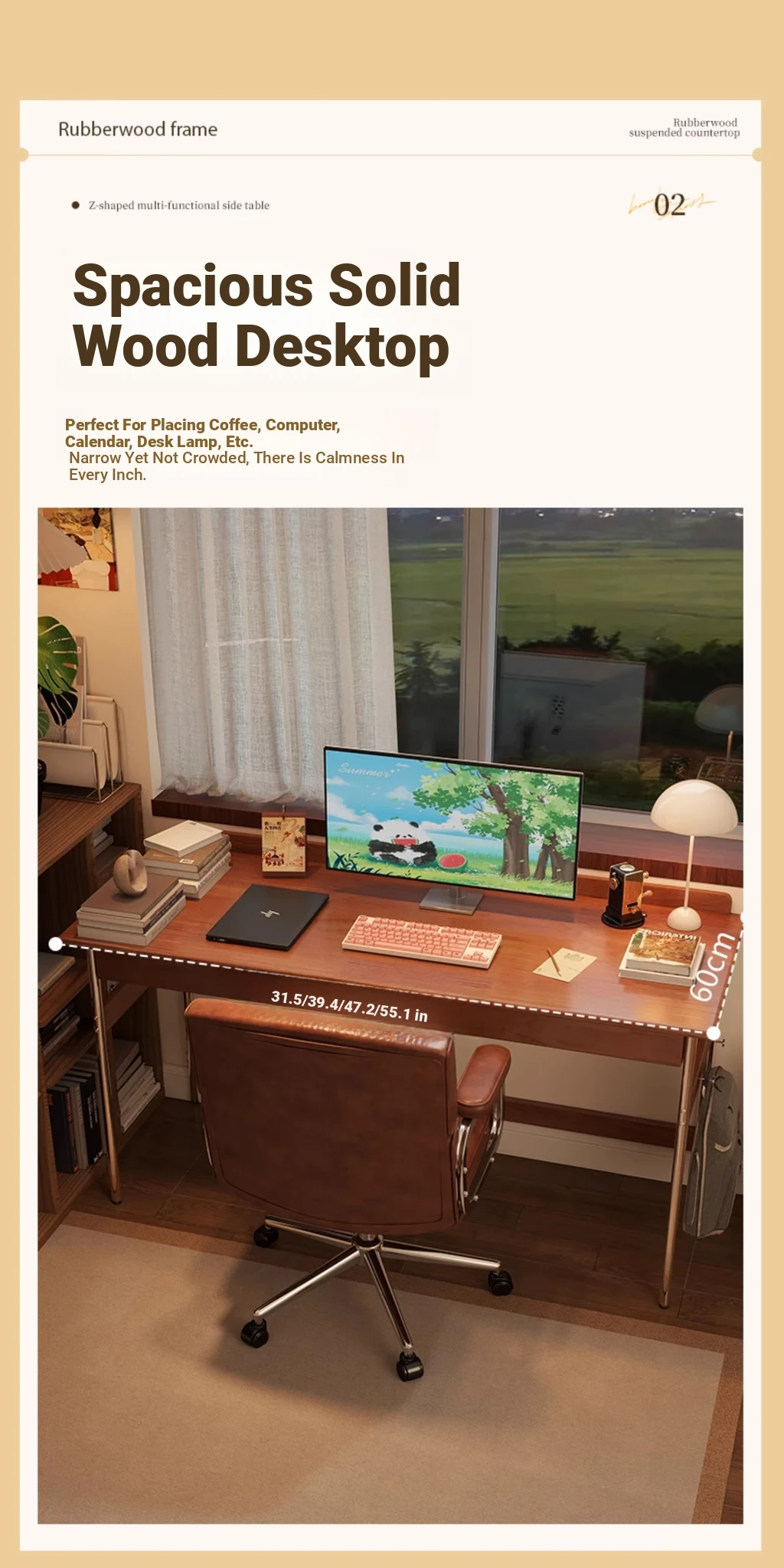 Cherry Wood Color [55.12in] Imported Rubber Wood