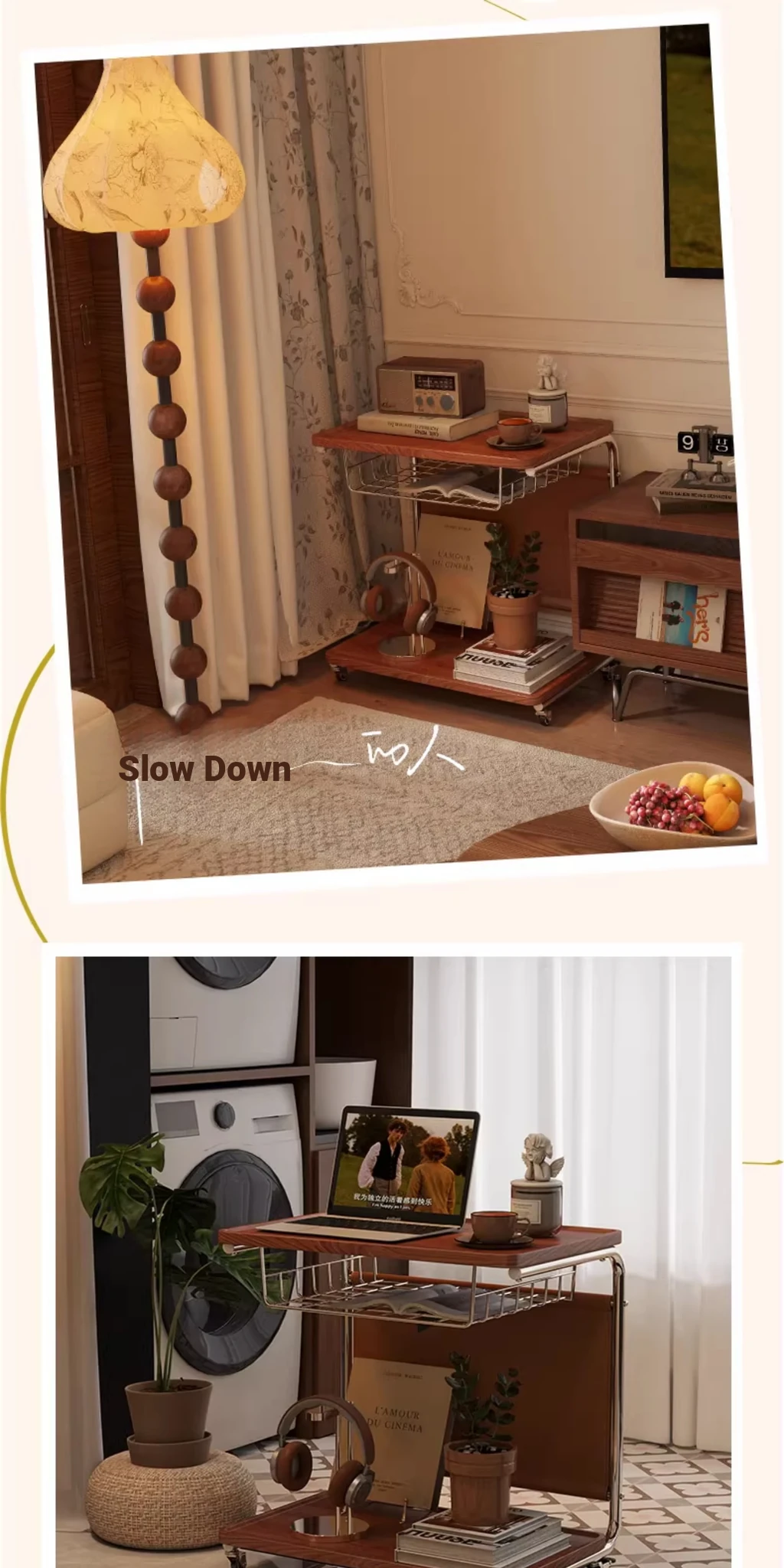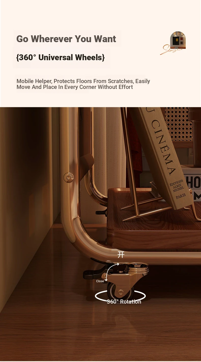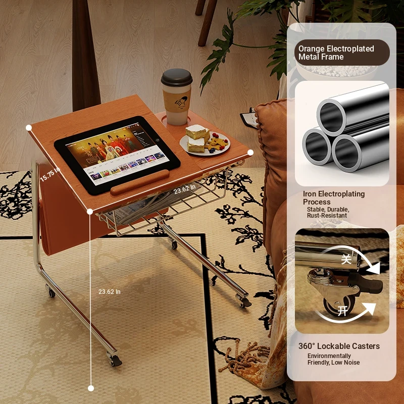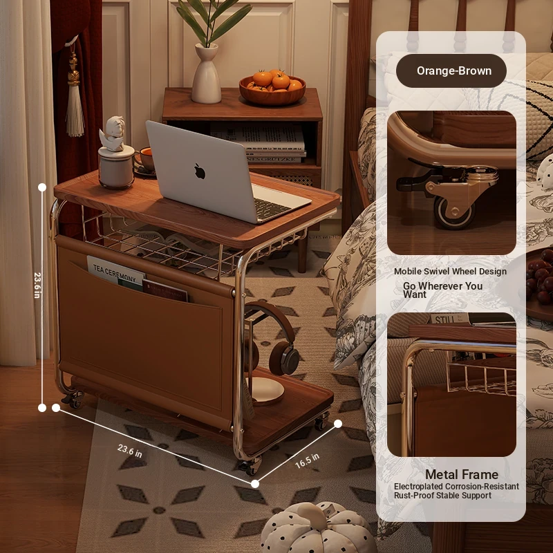 Double-Layer [Orange Brown] Electroplated Shelf + Adjustable Wood Grain Table + Compartment