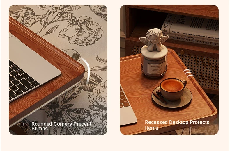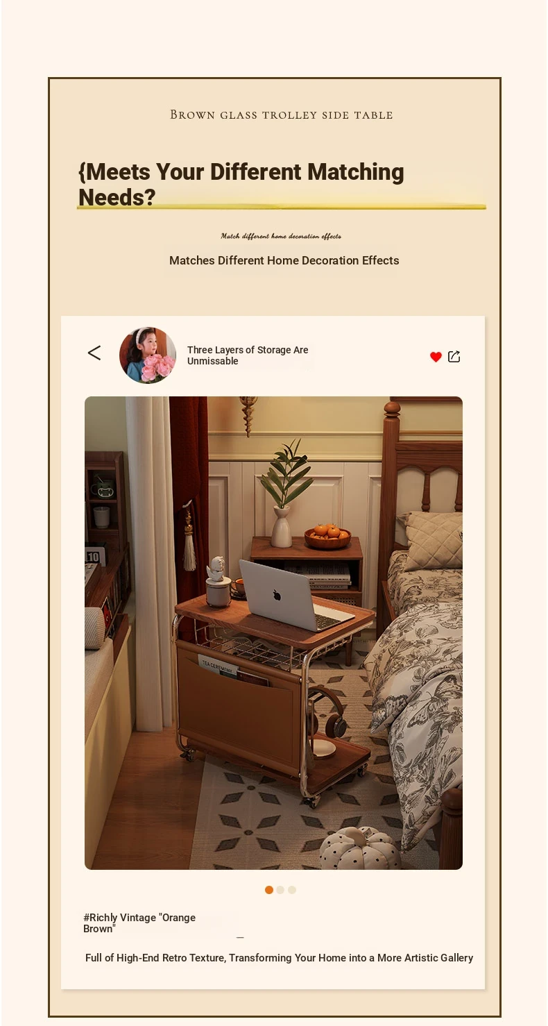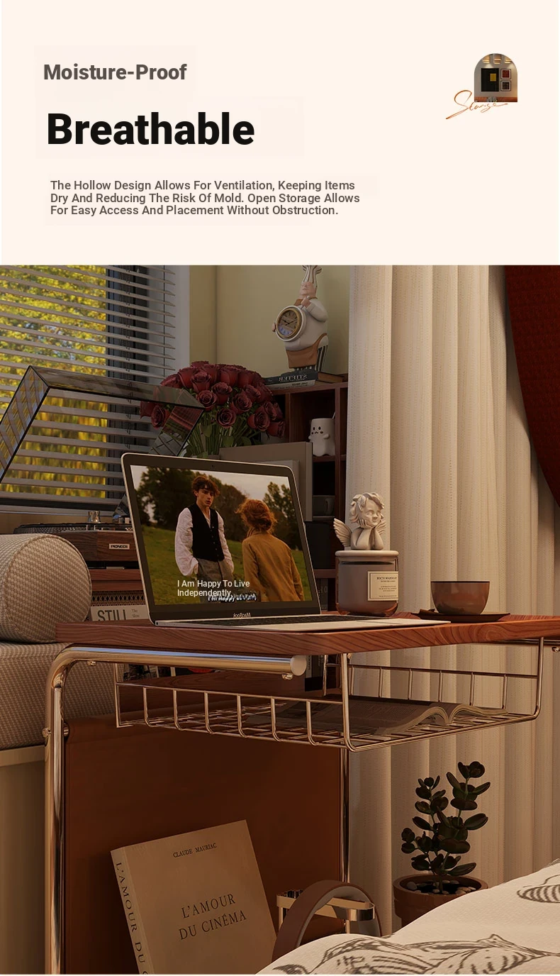 Double-Layer [Orange Brown] Electroplated Shelf + Adjustable Wood Grain Table + Compartment