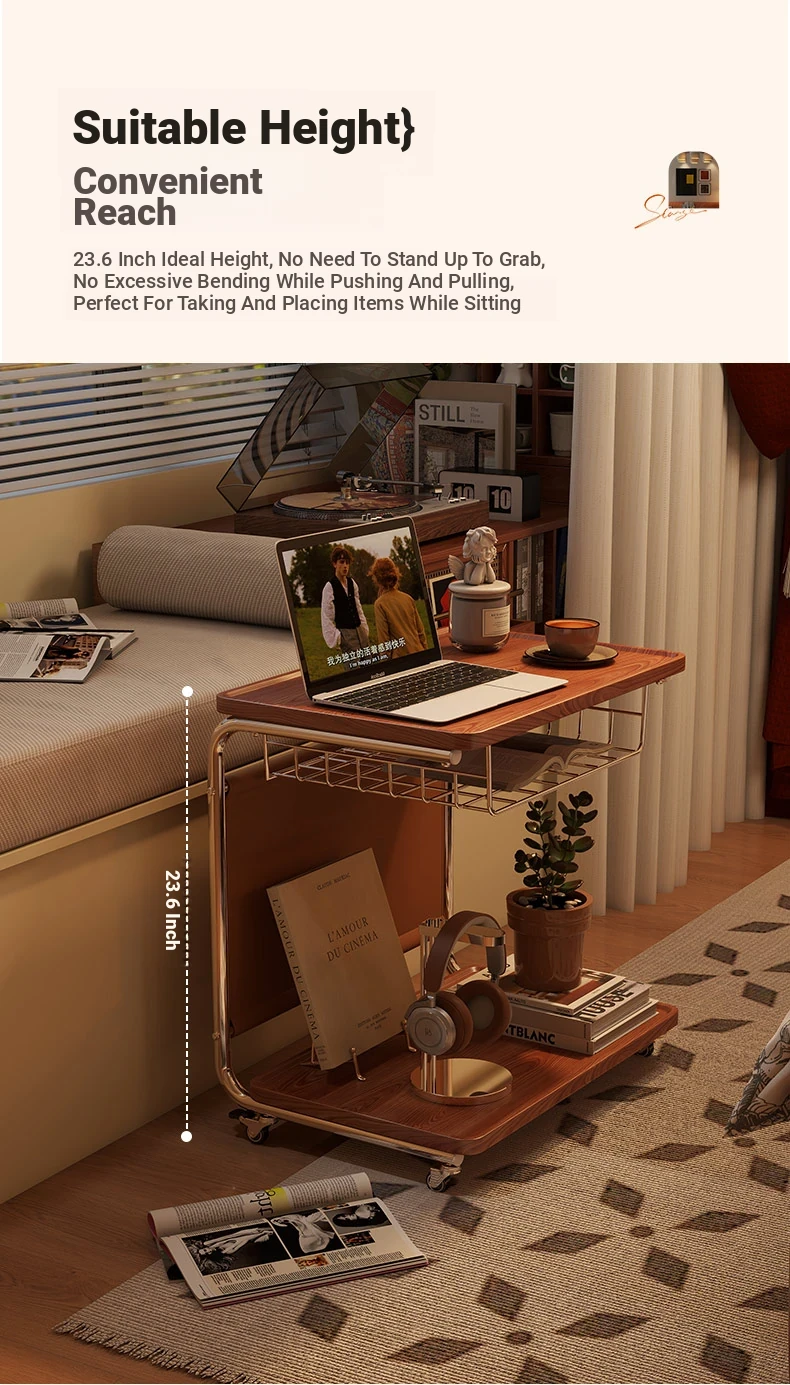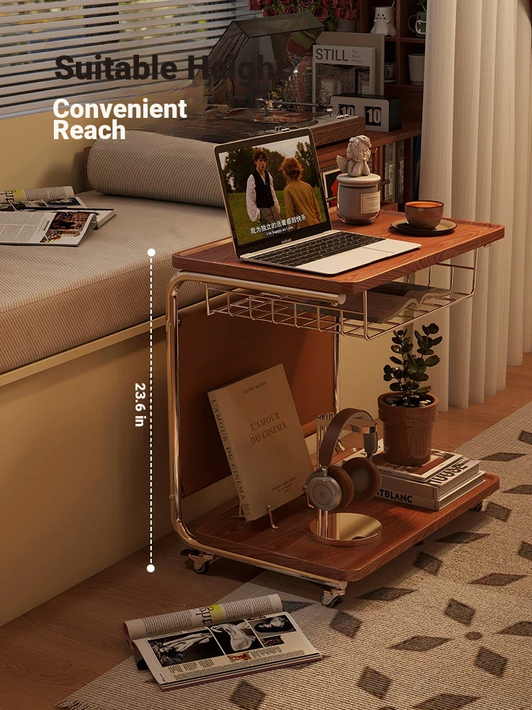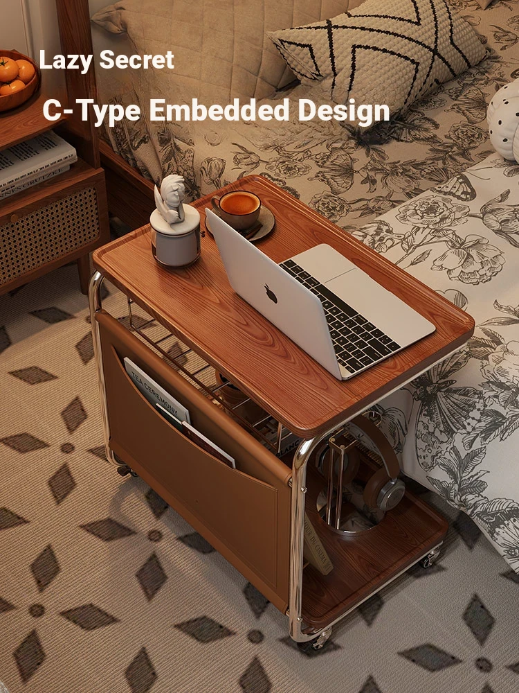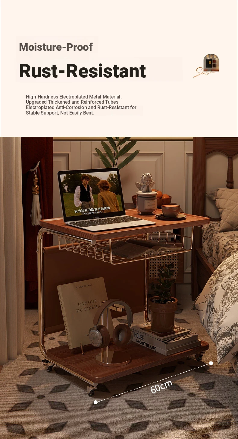 Stylish Solid Wood Movable Sofa Side Table - Minimalist Creative Nightstand for Living Room & Bedroom, Perfect as a Small Coffee Table or Storage Shelf