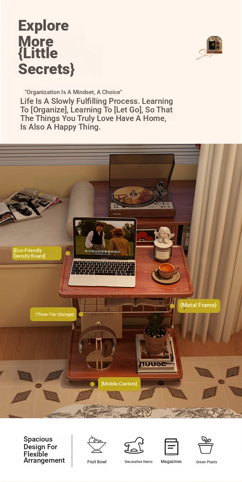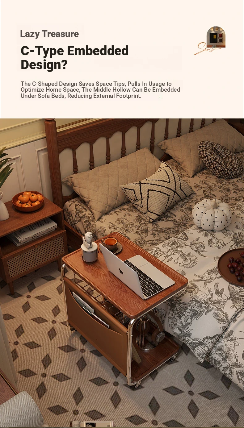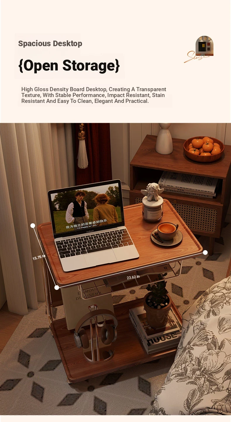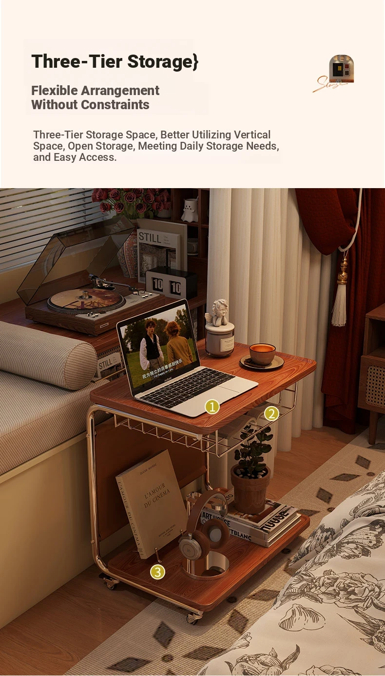 Stylish Solid Wood Movable Sofa Side Table - Minimalist Creative Nightstand for Living Room & Bedroom, Perfect as a Small Coffee Table or Storage Shelf