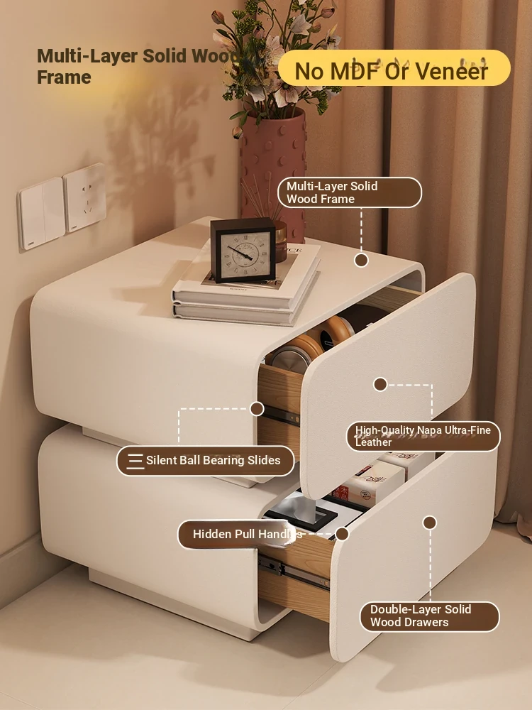 Stylish Solid Wood Nightstand for Home Bedroom - 2025 Trending Double-Layer Bedside Storage Cabinet with Simple Modern Design