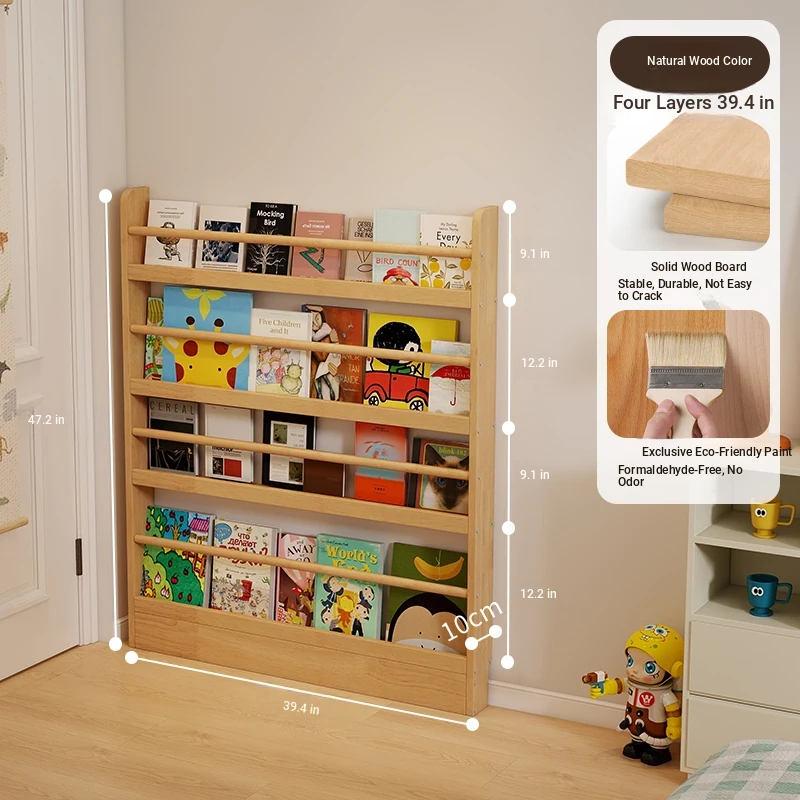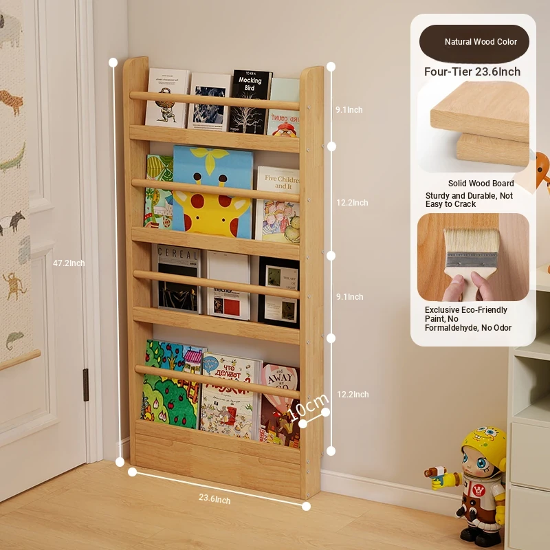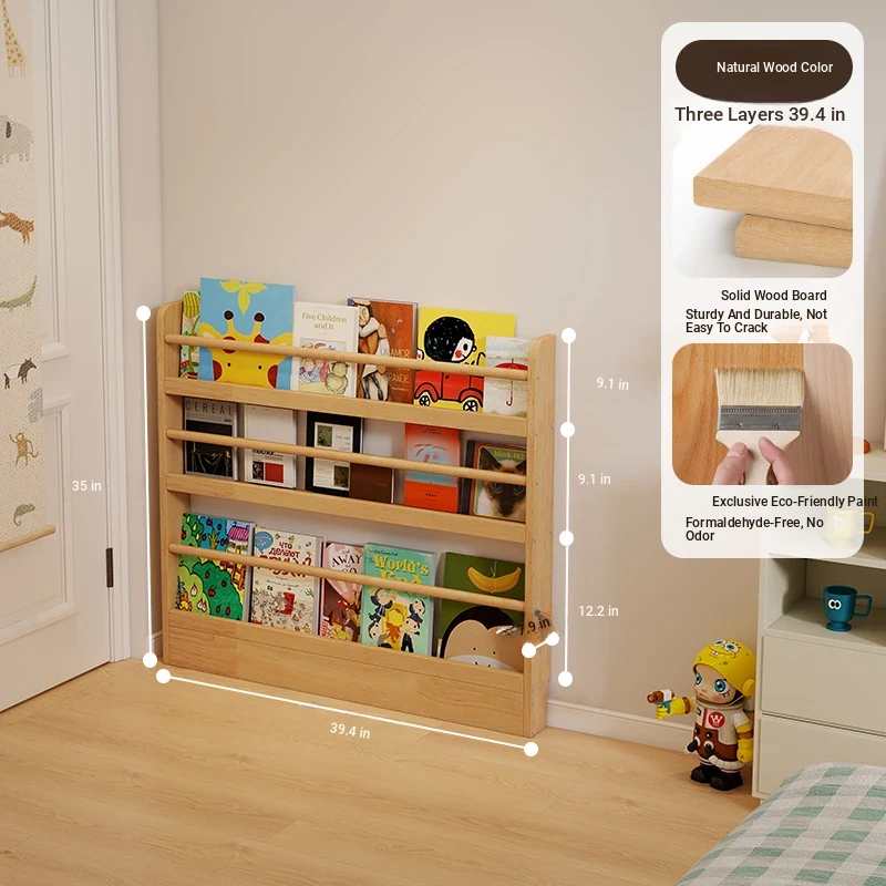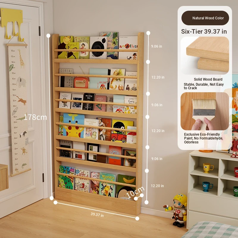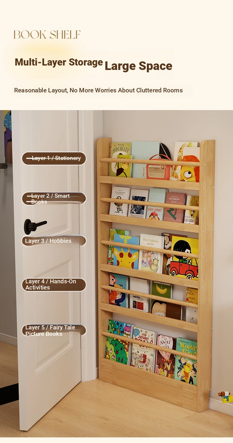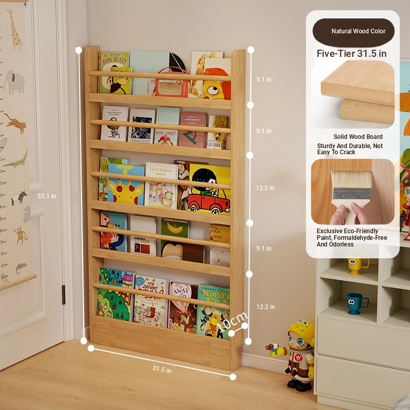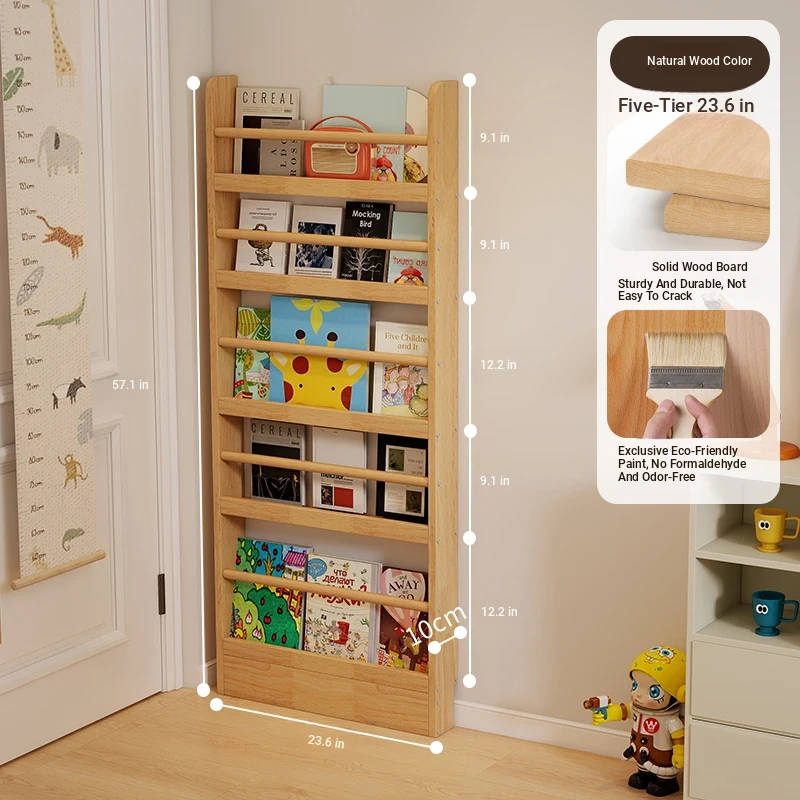 Stylish Wooden Bookshelf for Kids - Wall-Mounted or Floor-Standing, Space-Saving Multi-Layer Design for Picture Books and Storage Solutions. Perfect for Small Spaces!