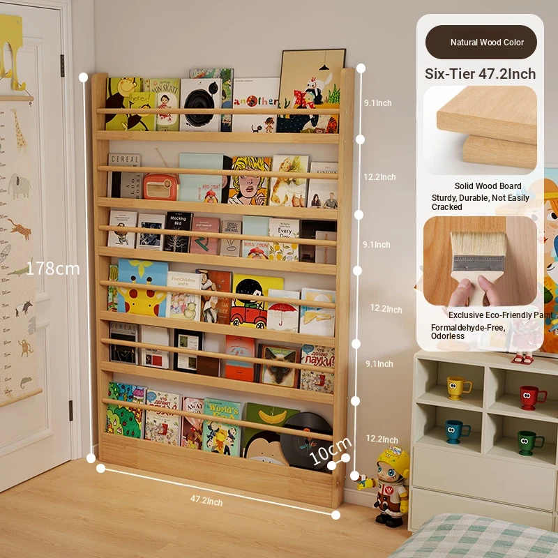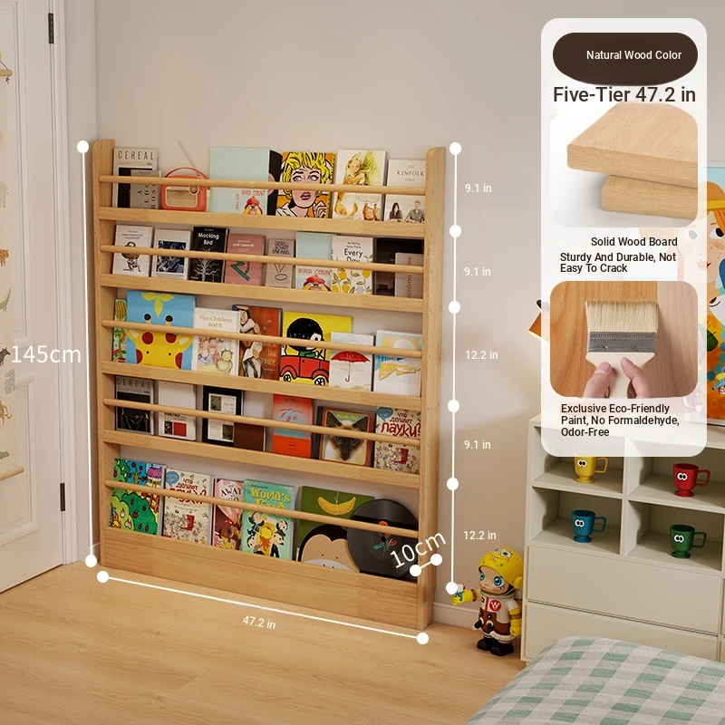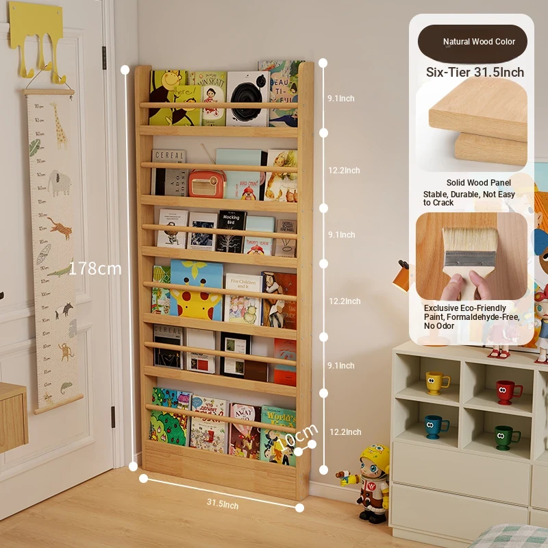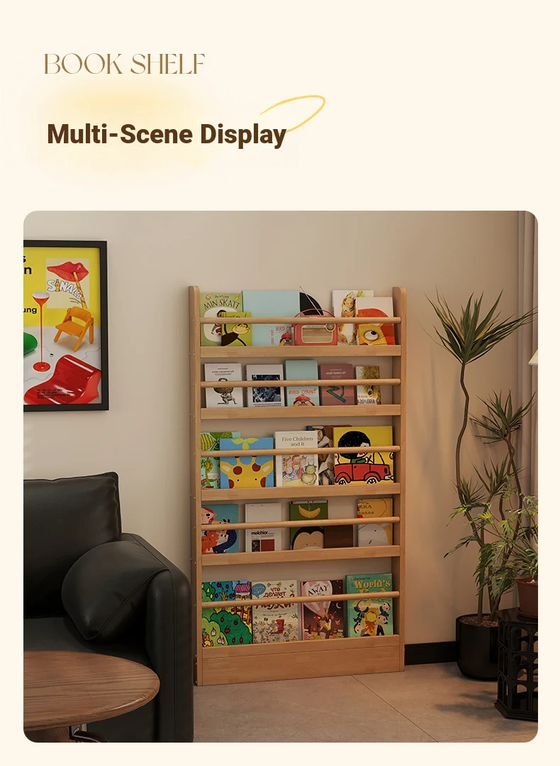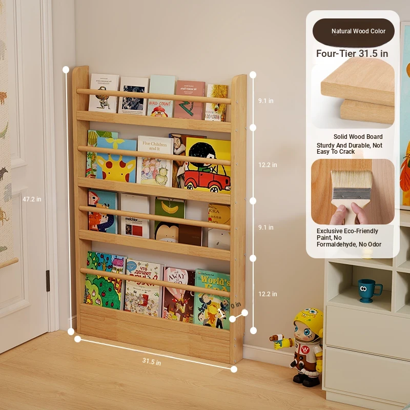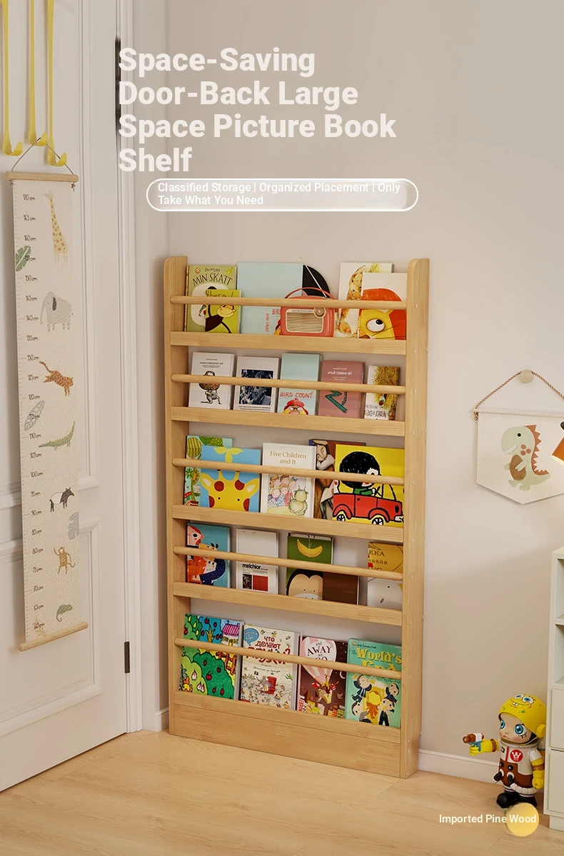 Stylish Wooden Bookshelf for Kids - Wall-Mounted or Floor-Standing, Space-Saving Multi-Layer Design for Picture Books and Storage Solutions. Perfect for Small Spaces!