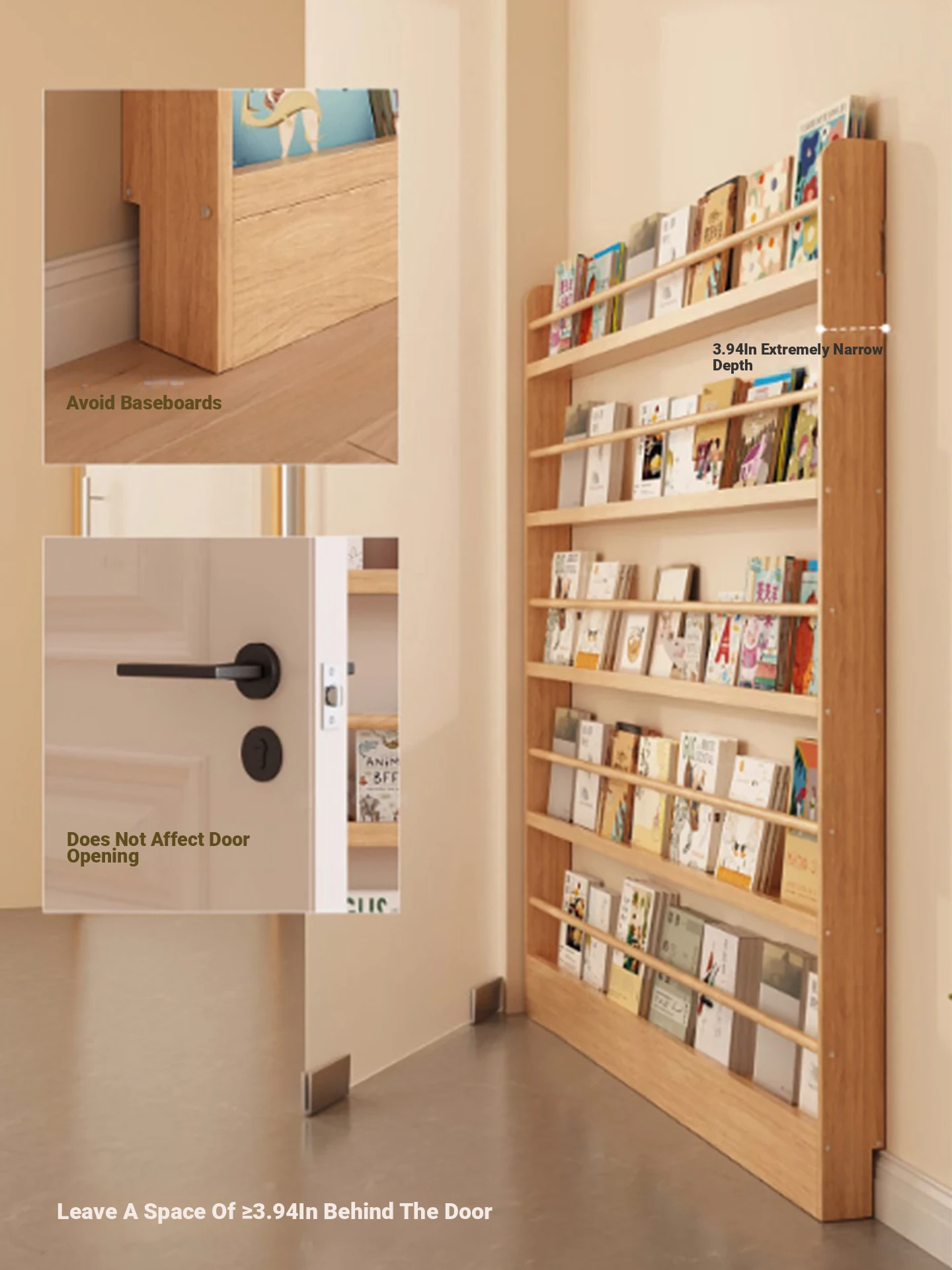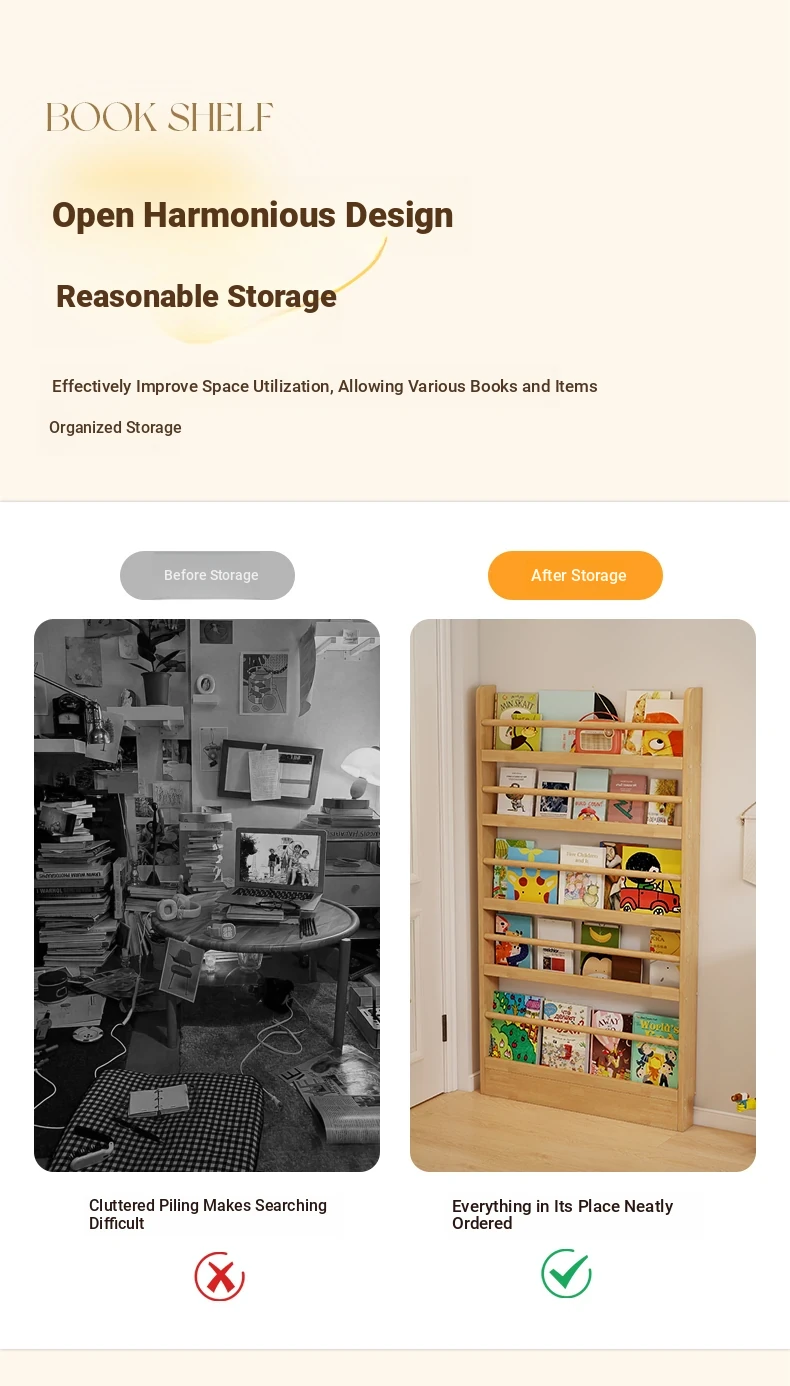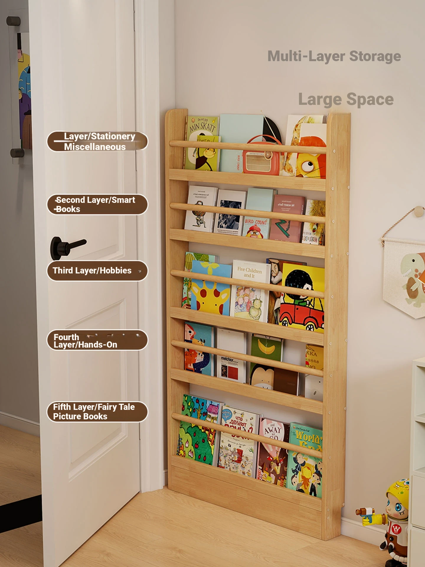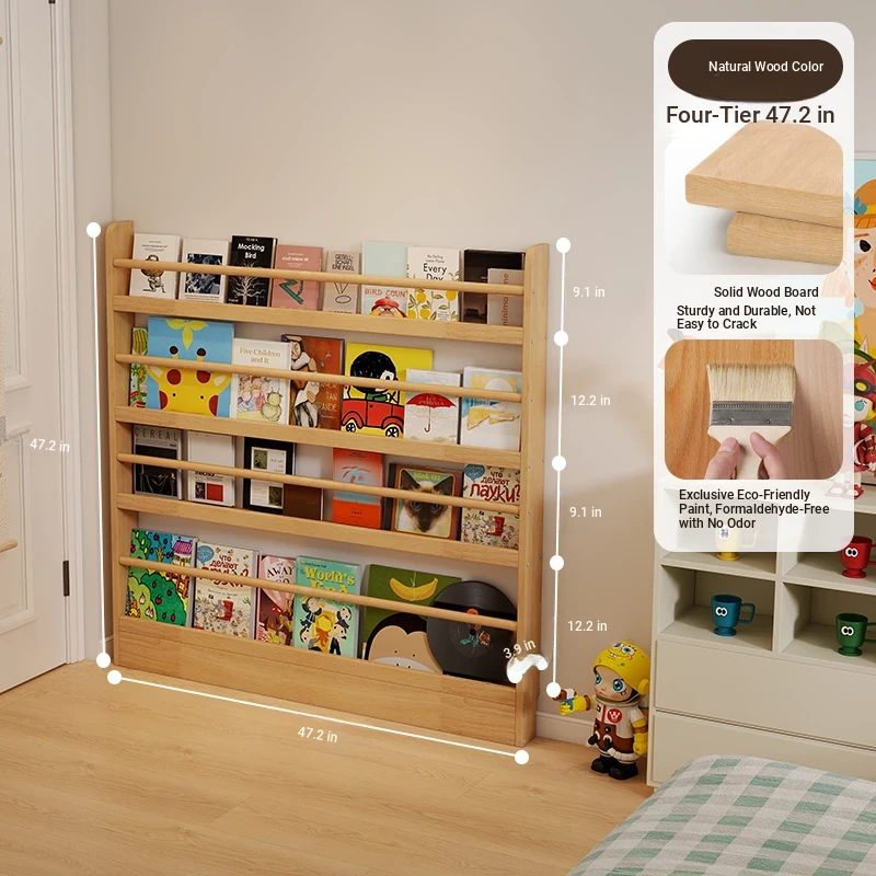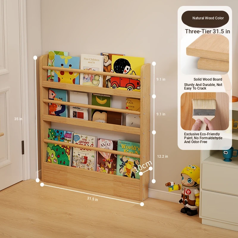 Stylish Wooden Bookshelf for Kids - Wall-Mounted or Floor-Standing, Space-Saving Multi-Layer Design for Picture Books and Storage Solutions. Perfect for Small Spaces!