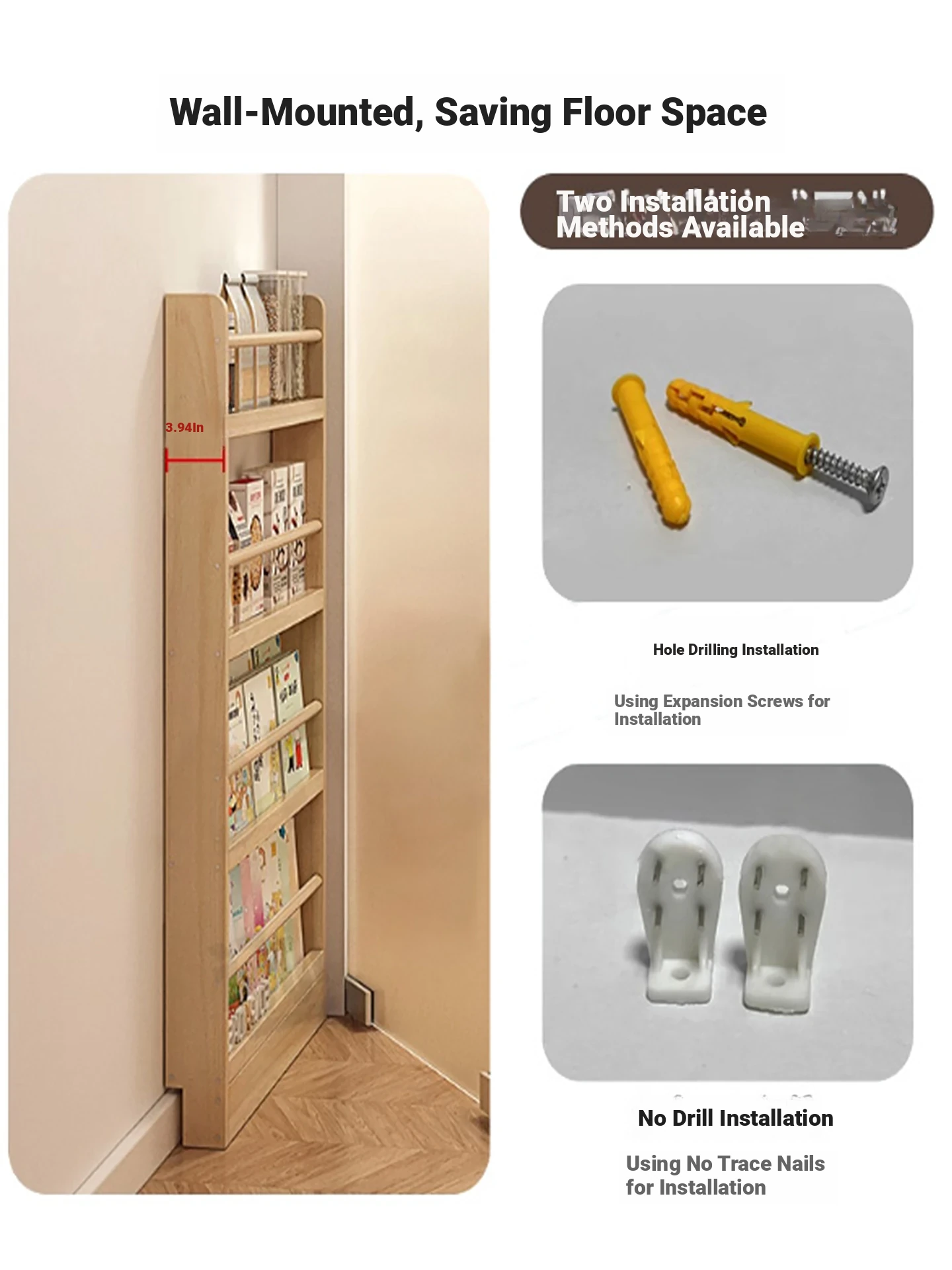 Two Layers [23.62in] Wood Color-Selected Pine Wood