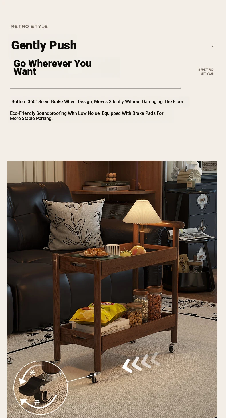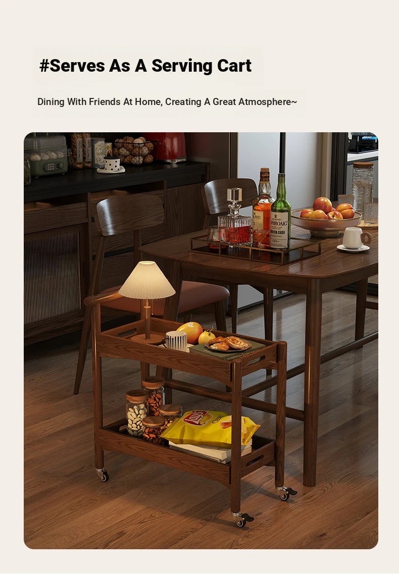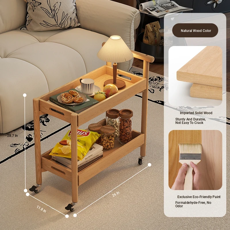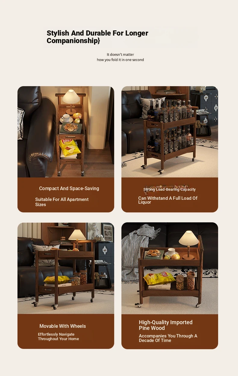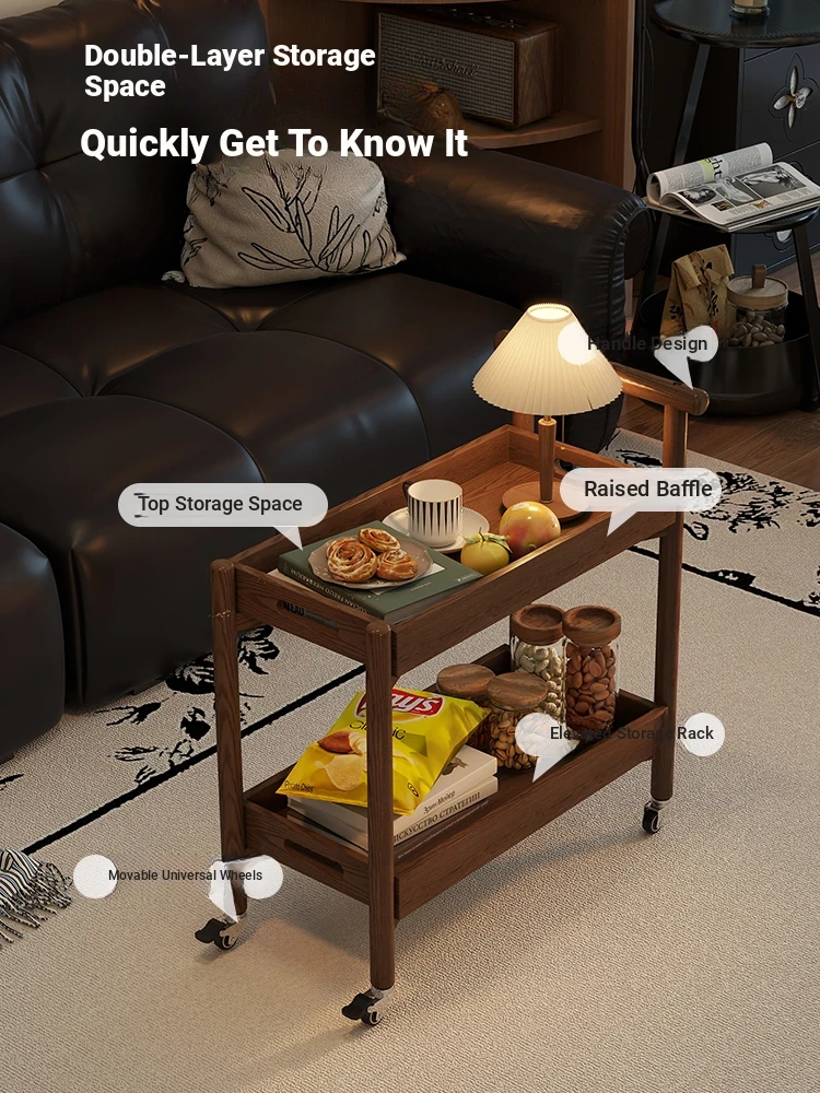 Stylish Wooden Rolling Snack Cart - Versatile Small Coffee Table & Sofa Side Table with Storage for Living Room, Perfect for Drinks and Treats on Wheels
