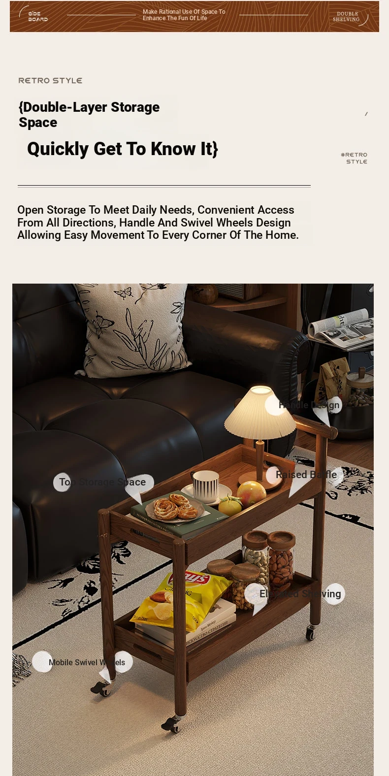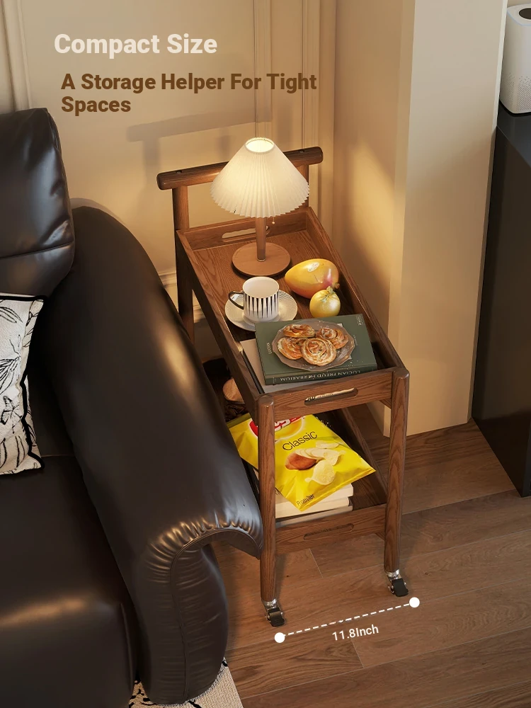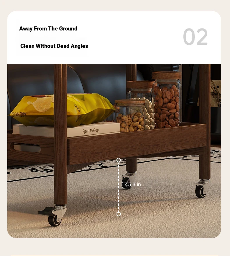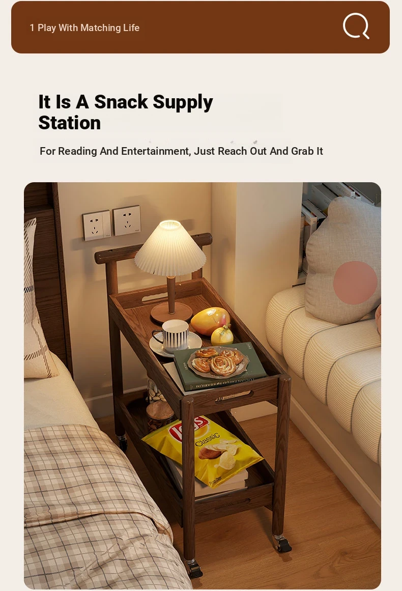Stylish Wooden Rolling Snack Cart - Versatile Small Coffee Table & Sofa Side Table with Storage for Living Room, Perfect for Drinks and Treats on Wheels